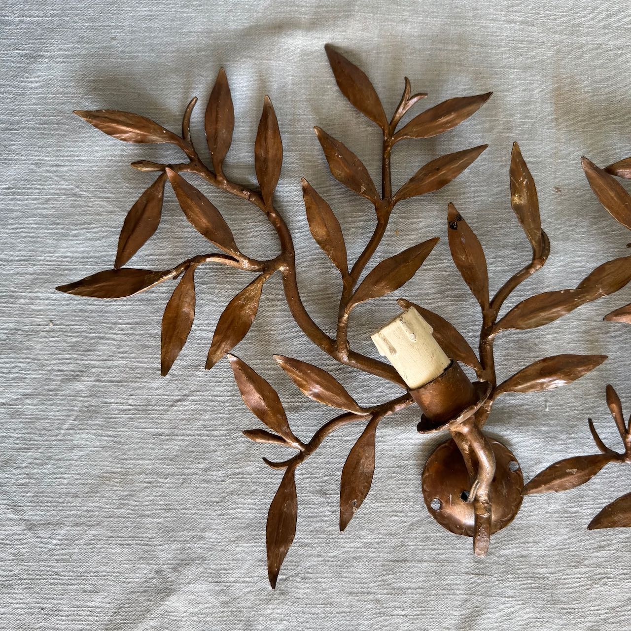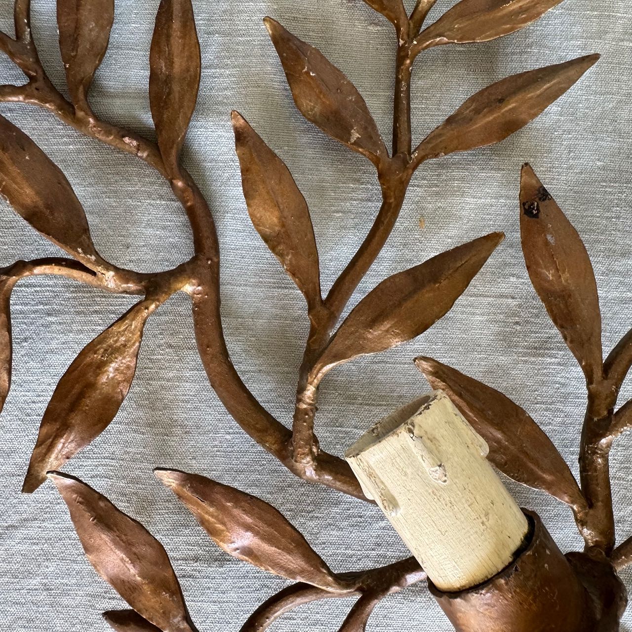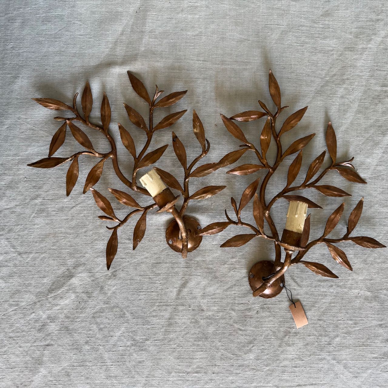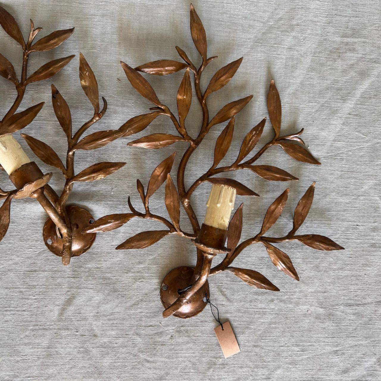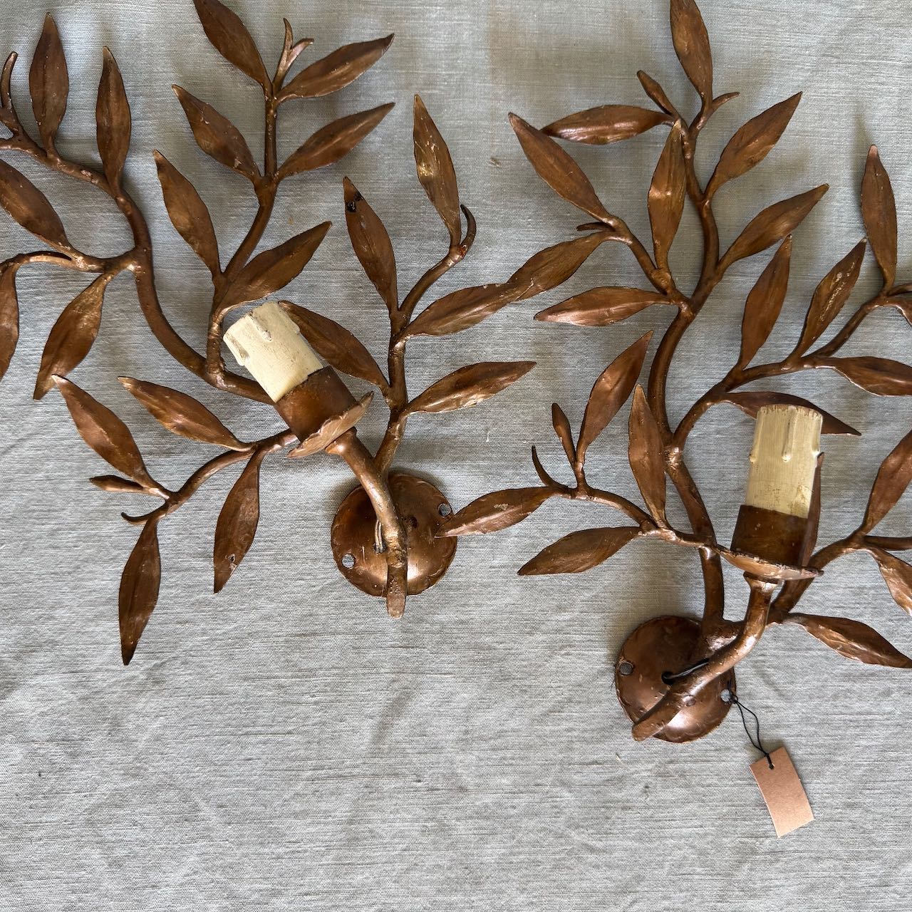 Coppia di applique ferro laccato rame a foglie di ulivo. Italia, sec. XX