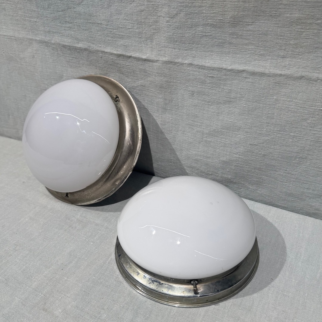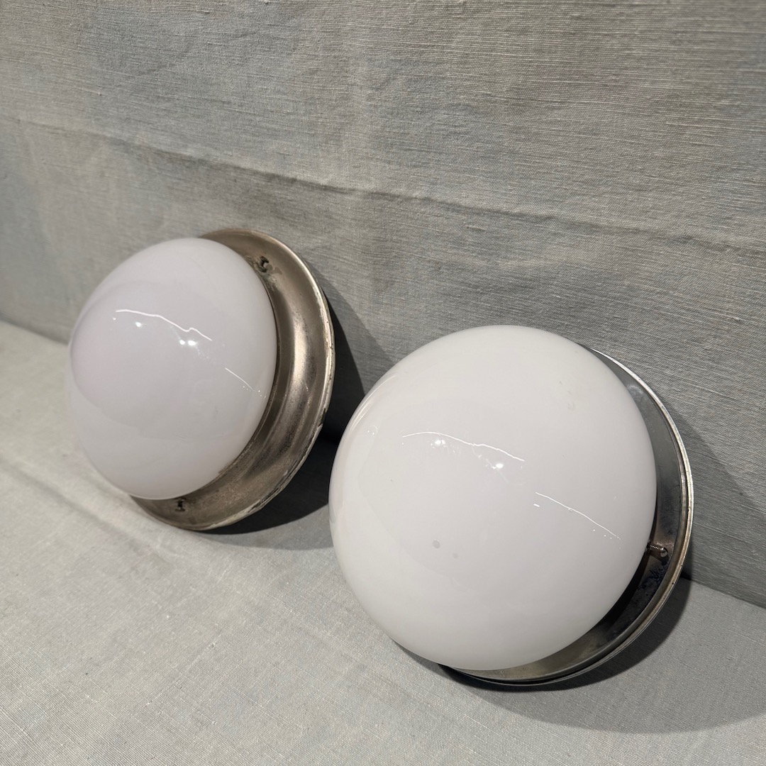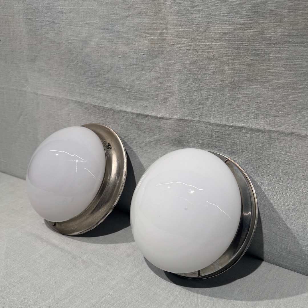 Coppia di appliques mid-century in vetro lattimo opalino. Italia 1960 circa