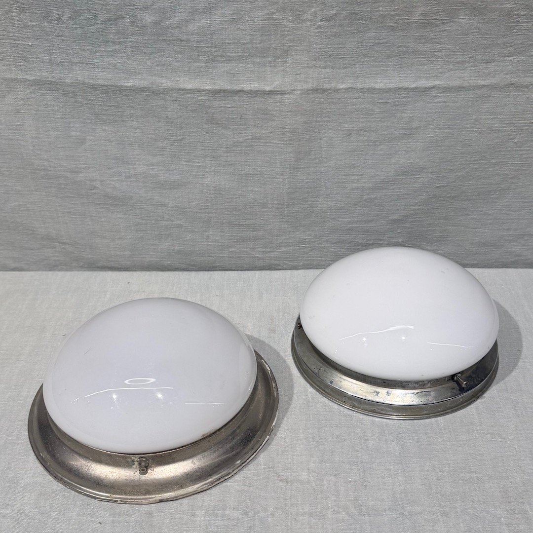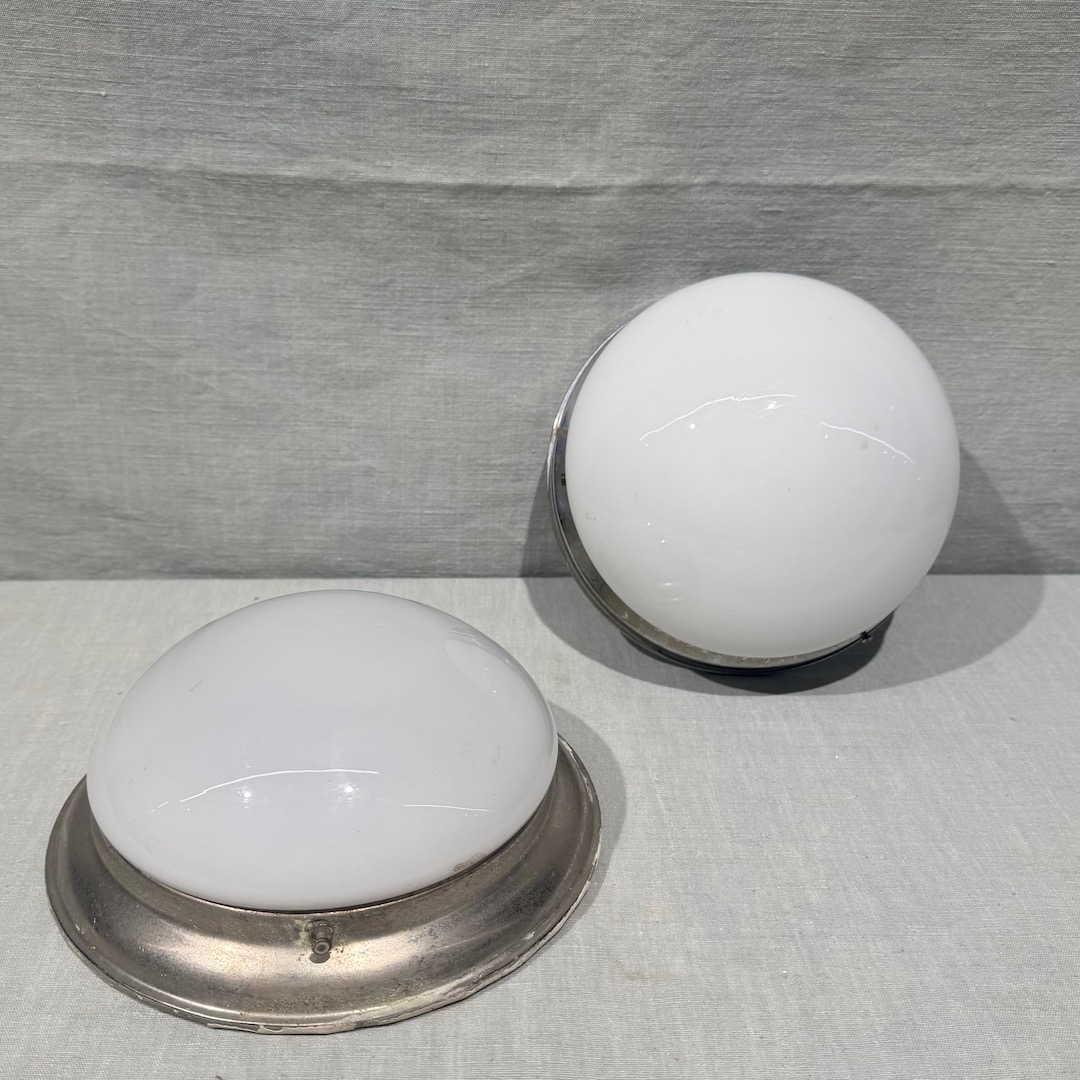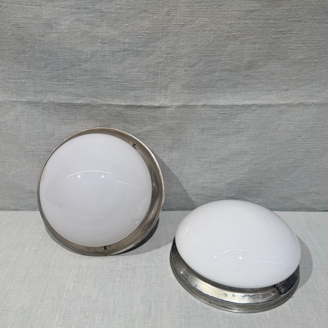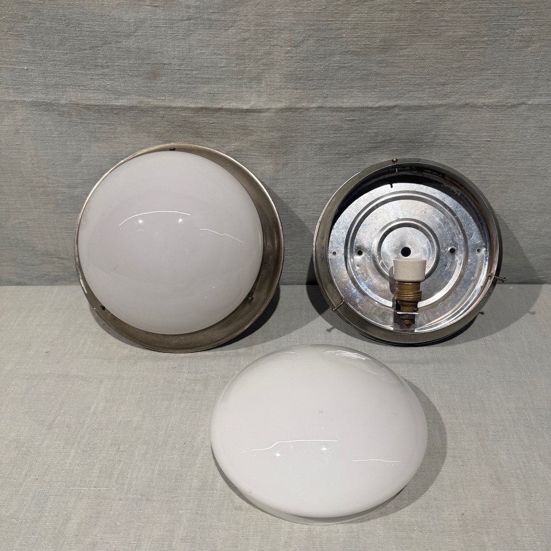 Coppia di appliques mid-century in vetro lattimo opalino. Italia 1960 circa