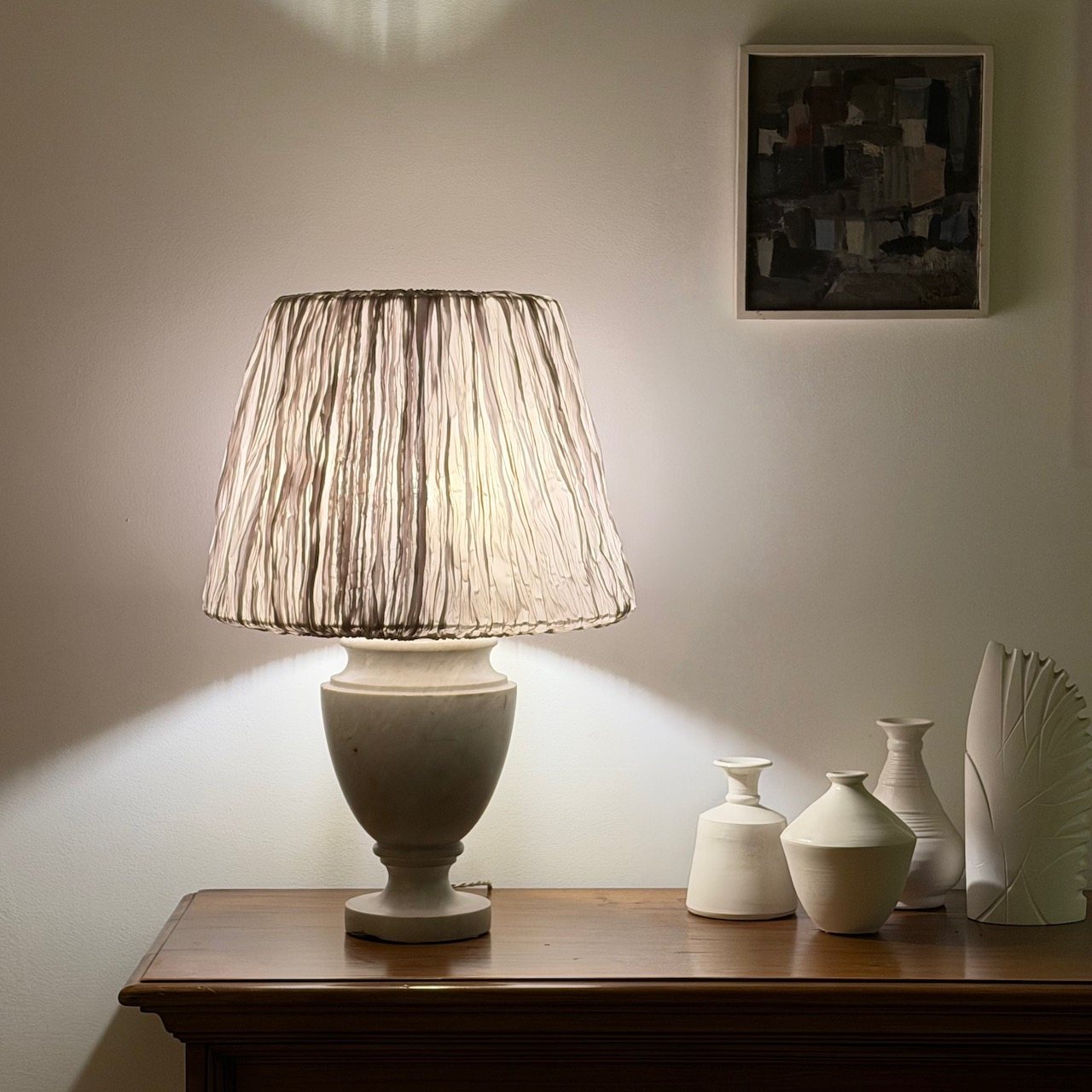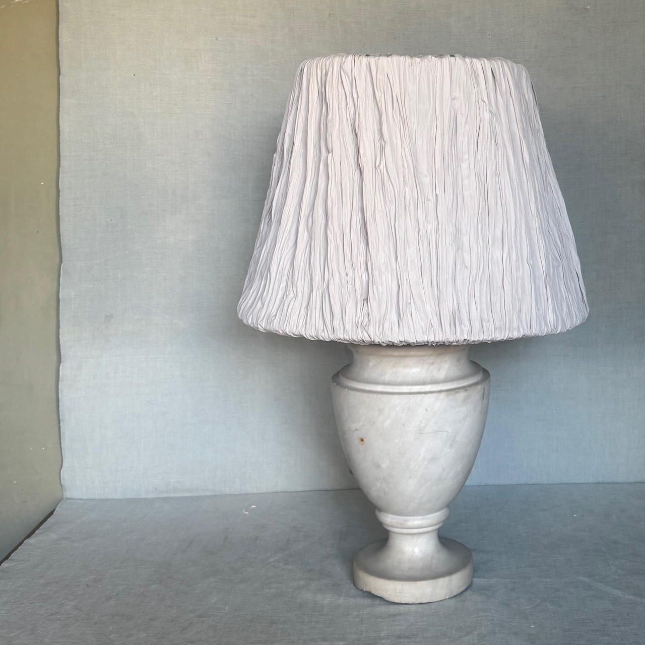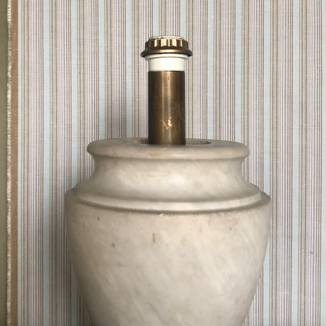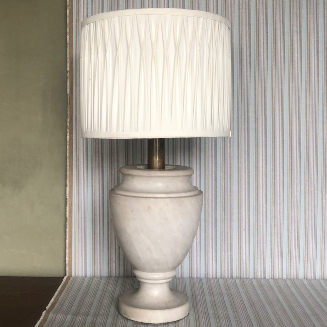 Lampada a balaustro in marmo bianco di Carrara. Toscana, inizio sec. XX