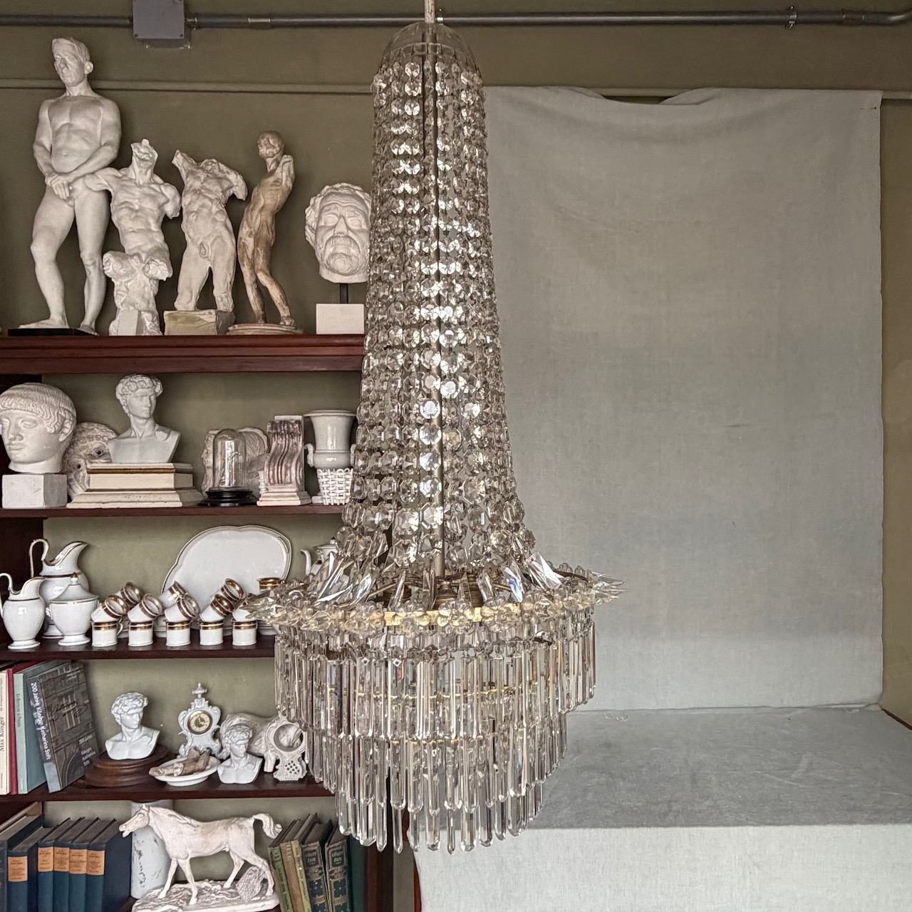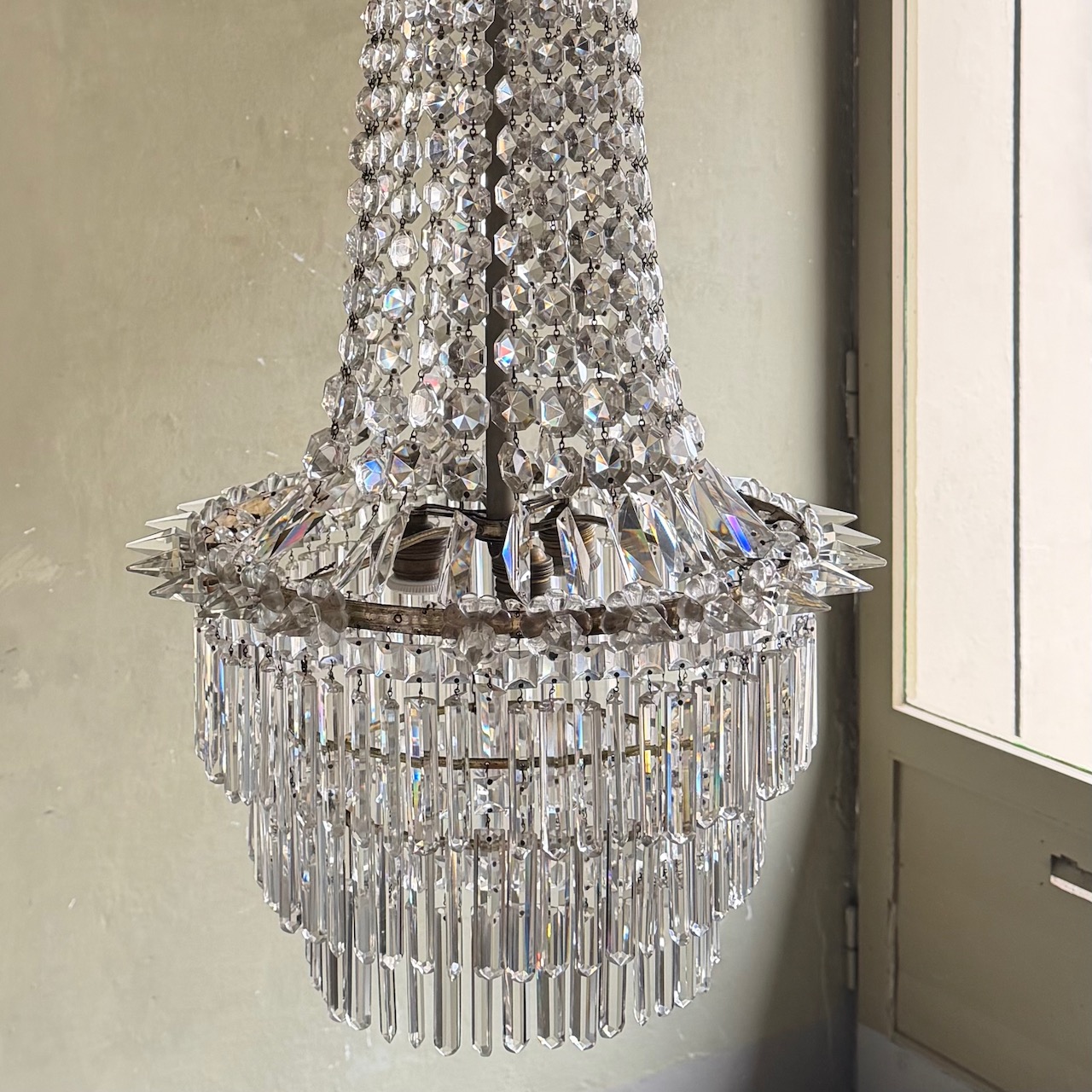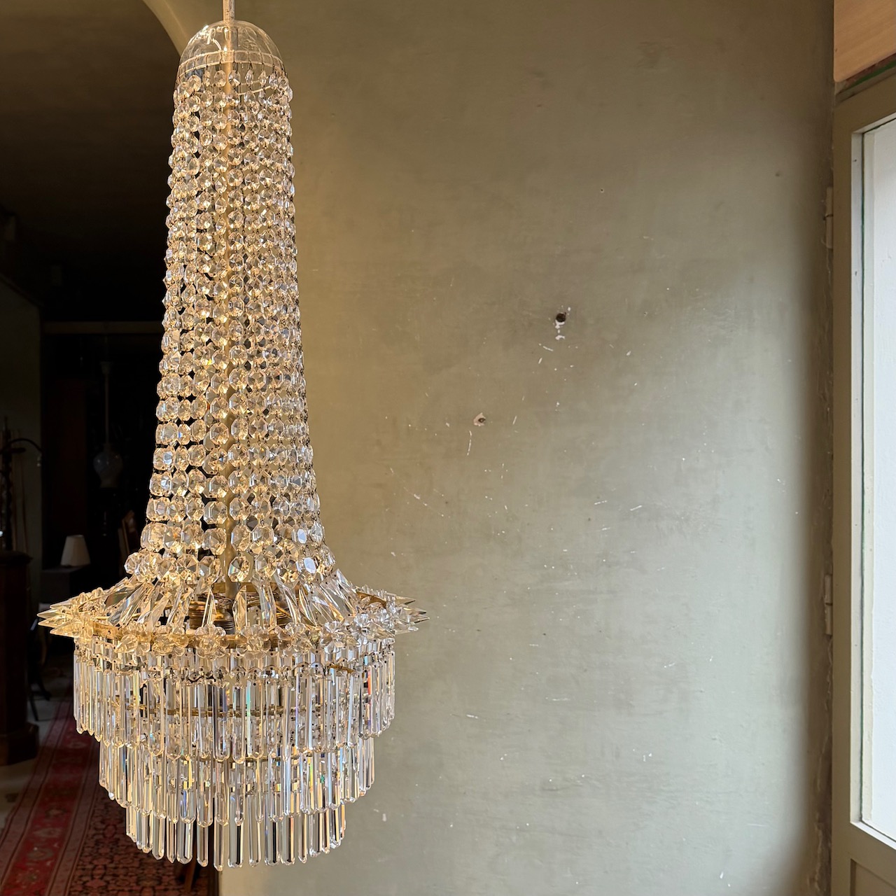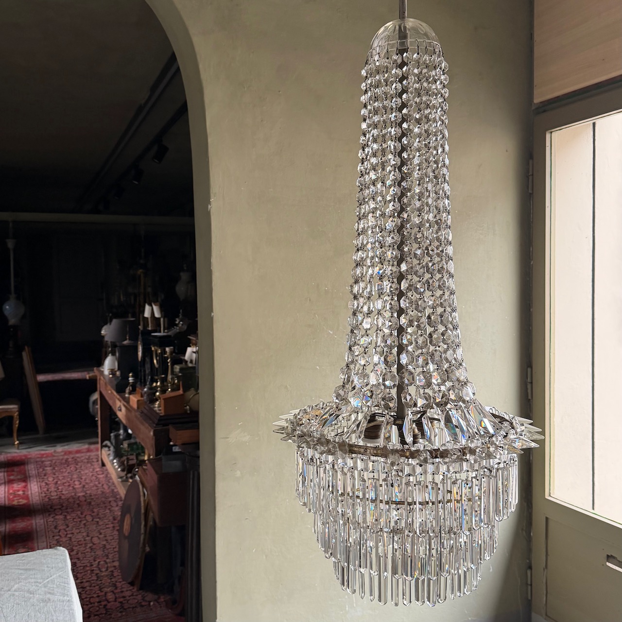 Lampadario a cascata in cristallo. Italia, fine sec. XIX