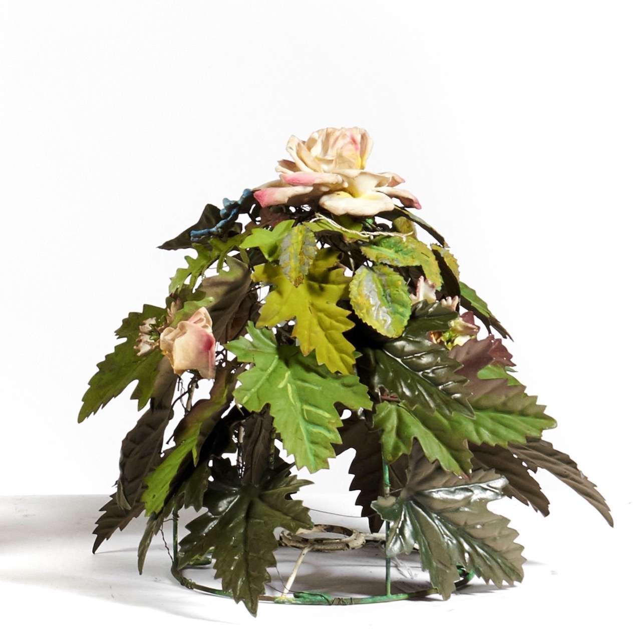 Lumiera a foglie e fiori in ferro battuto laccato, a una luce. Italia, sec. XX