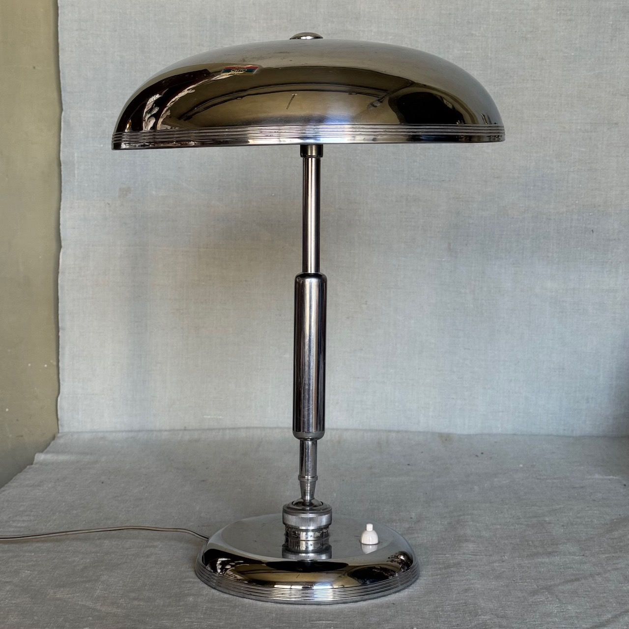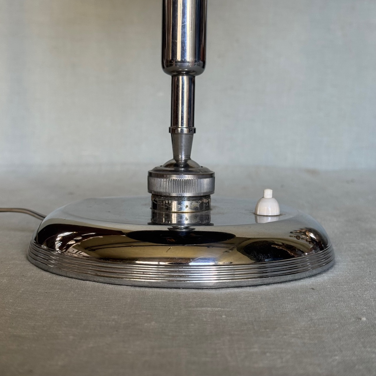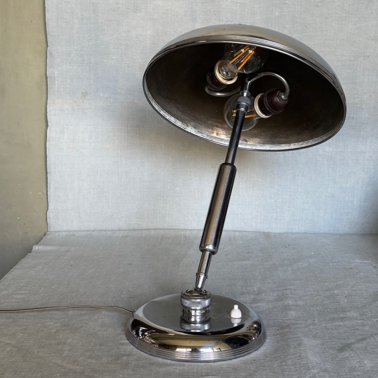 Lampada da tavolo in nickel, braccio regolabile con raccordo a sfera, G. Michelucci. Italia, 1950 ca