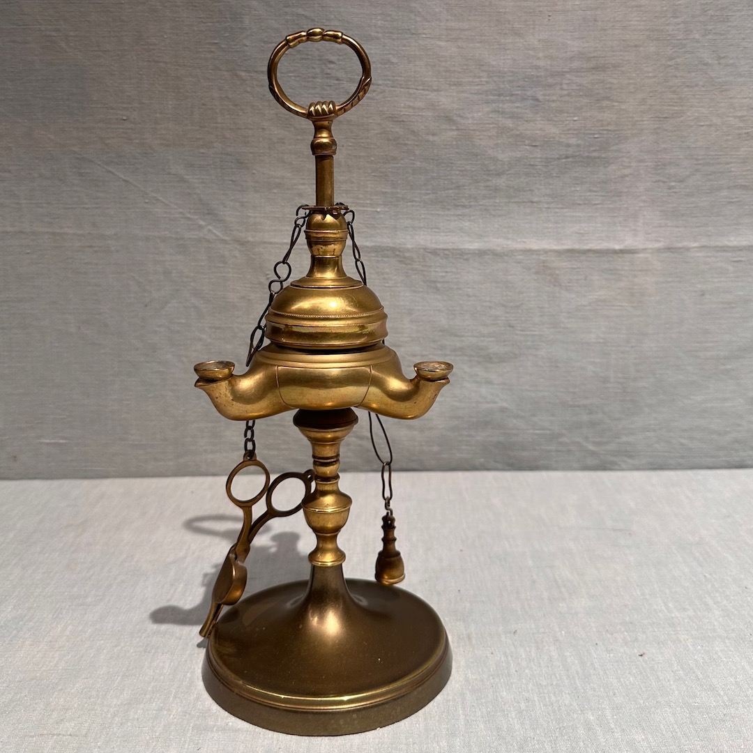 Grande Lume da Tavolo a Olio in Tôle Peinte e Bronzo su Rame