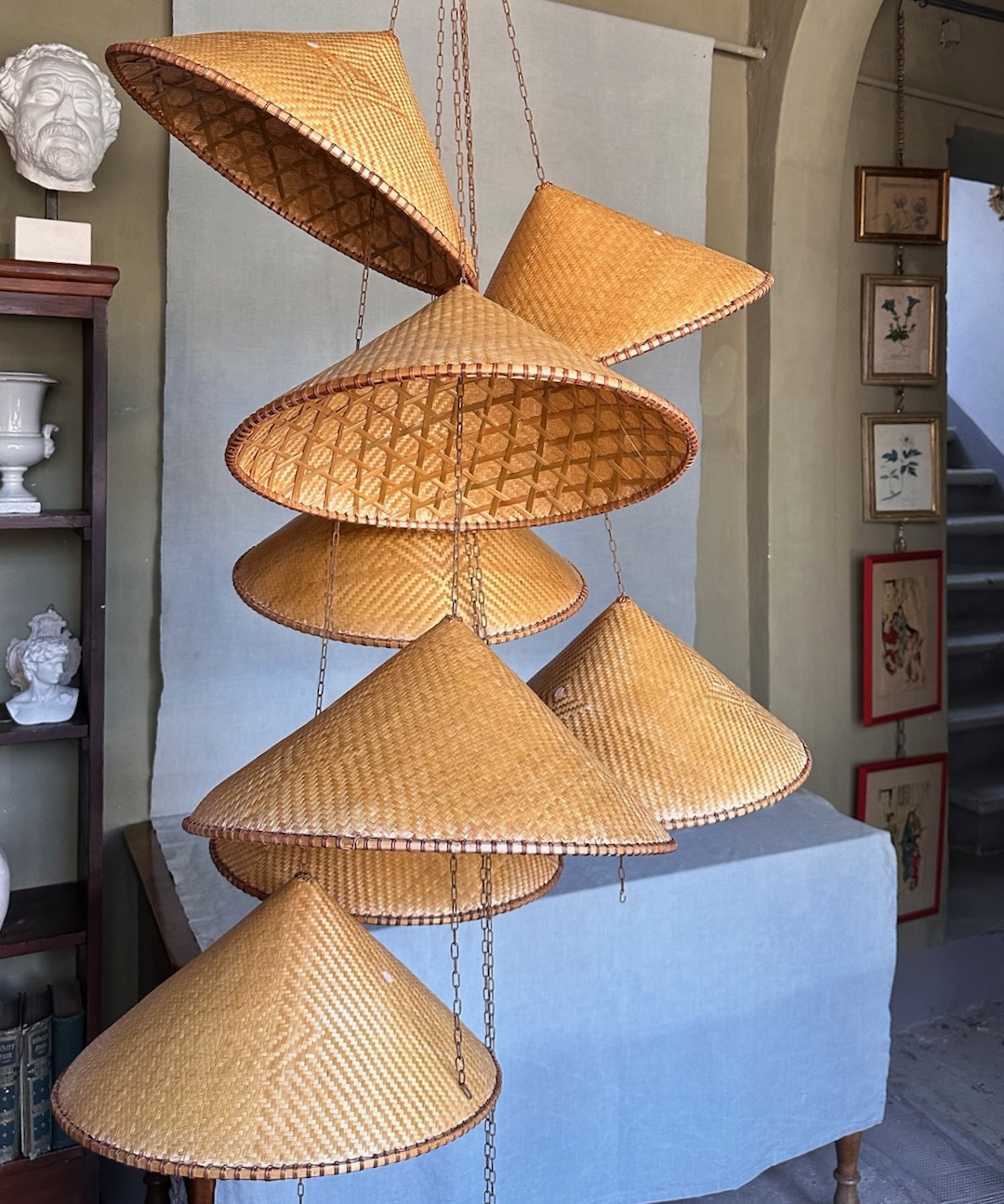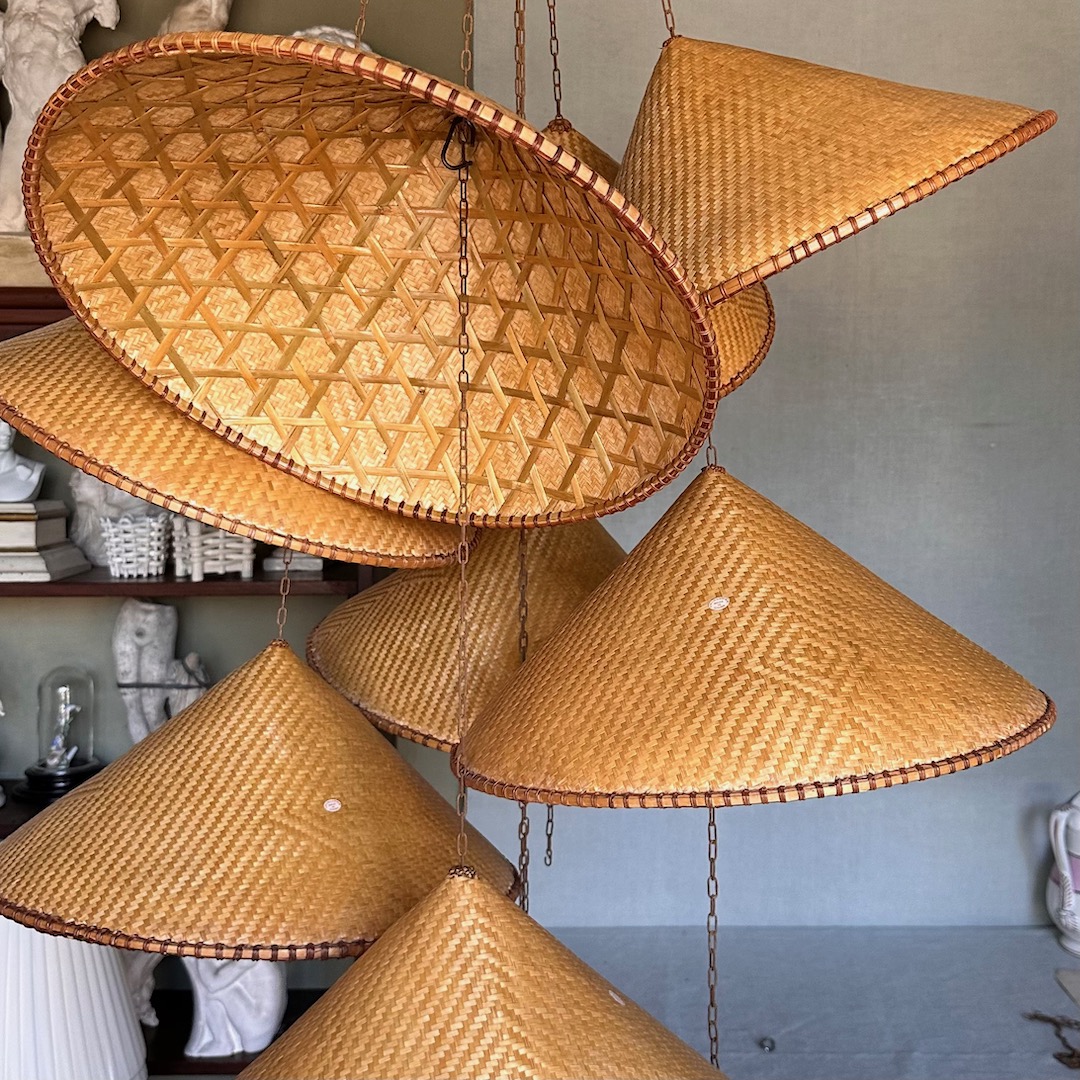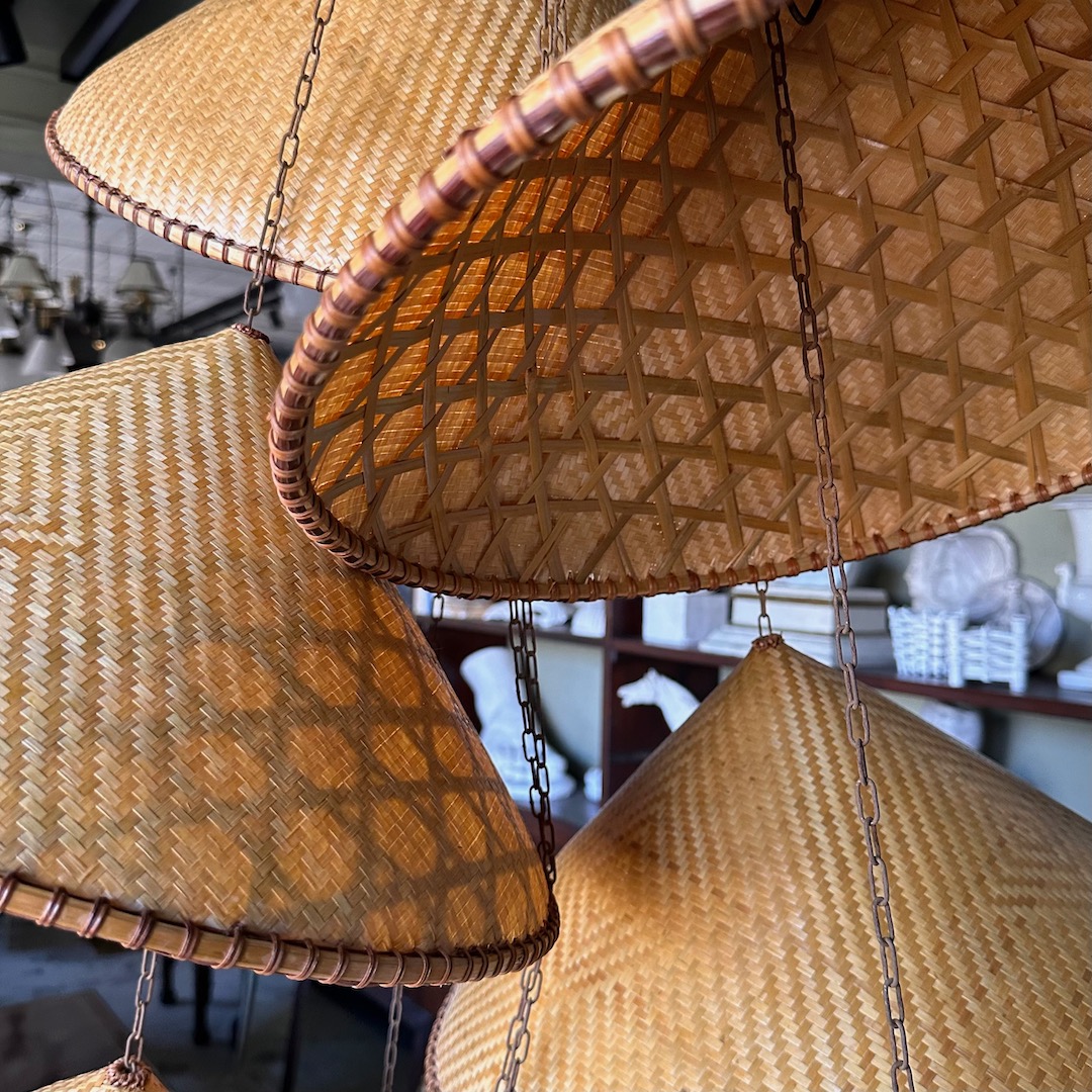 Otto paralumi in bambù intrecciato a mano. Cina sec. XX