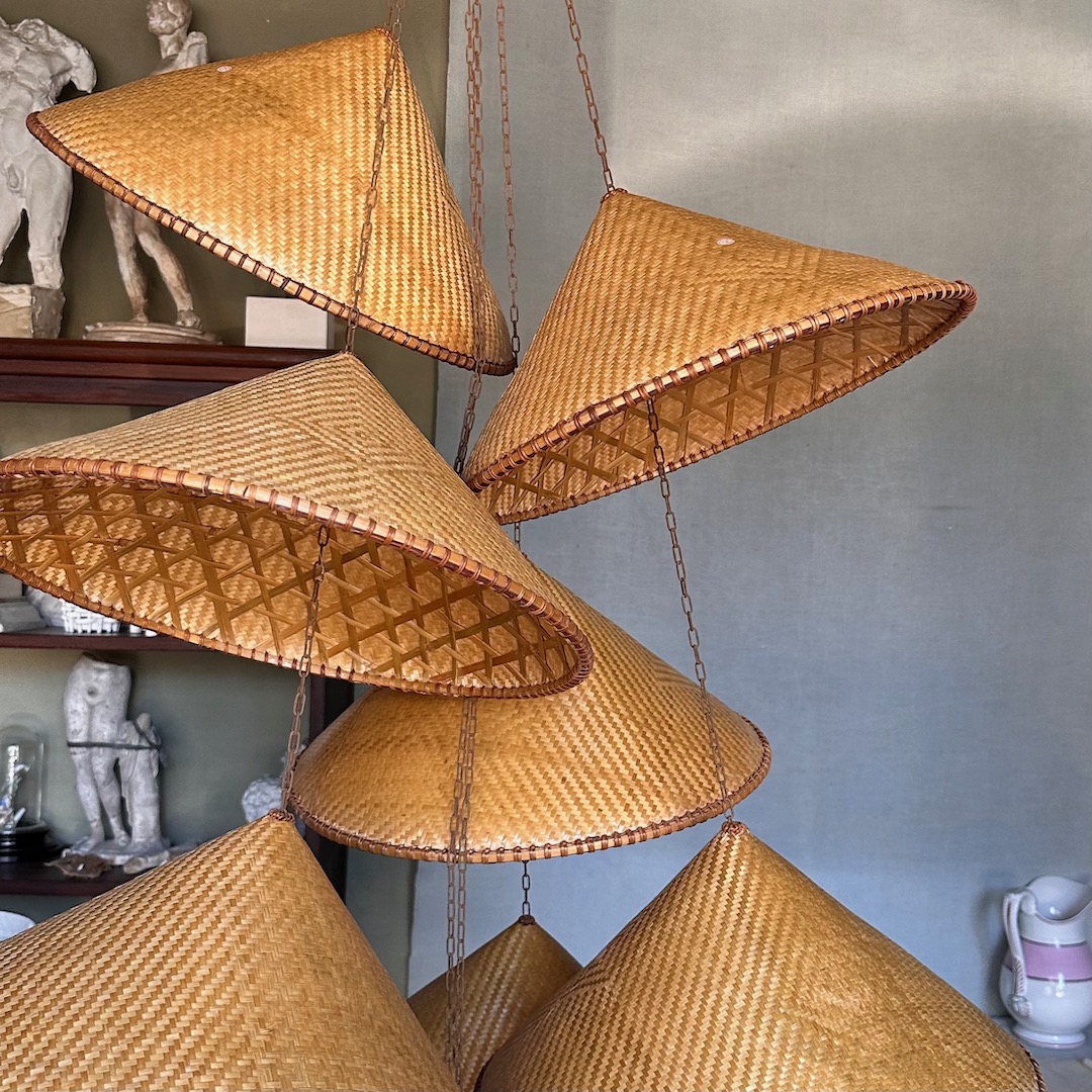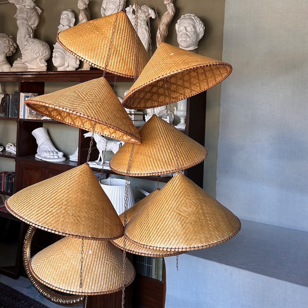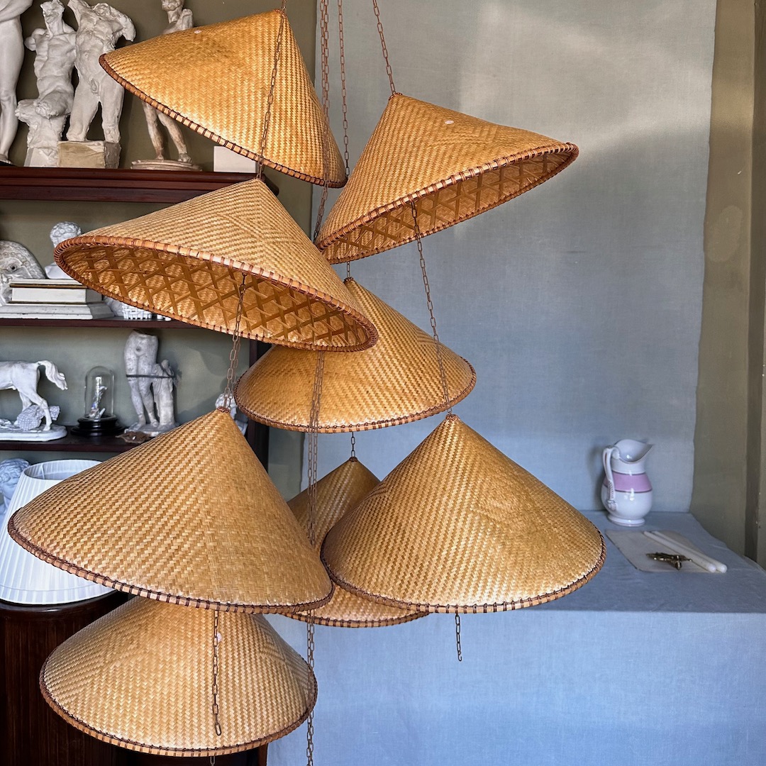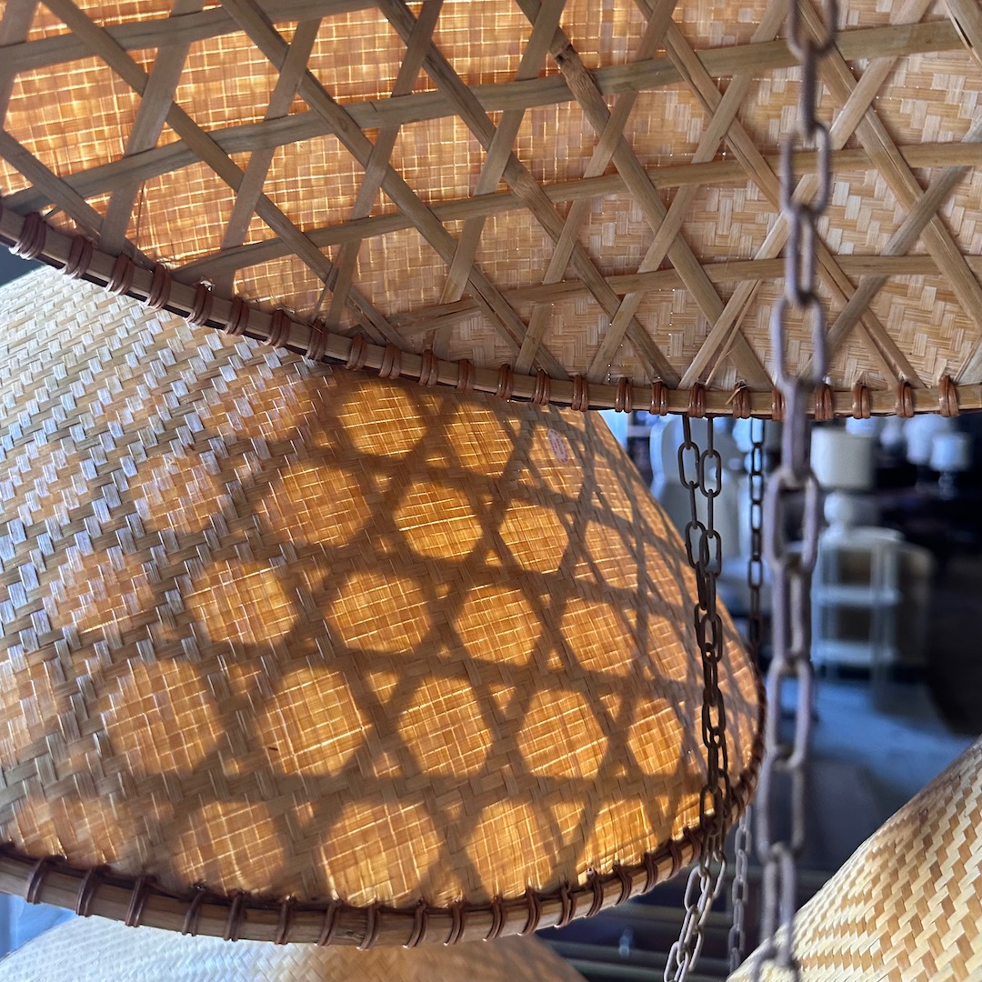 Otto paralumi in bambù intrecciato a mano. Cina sec. XX