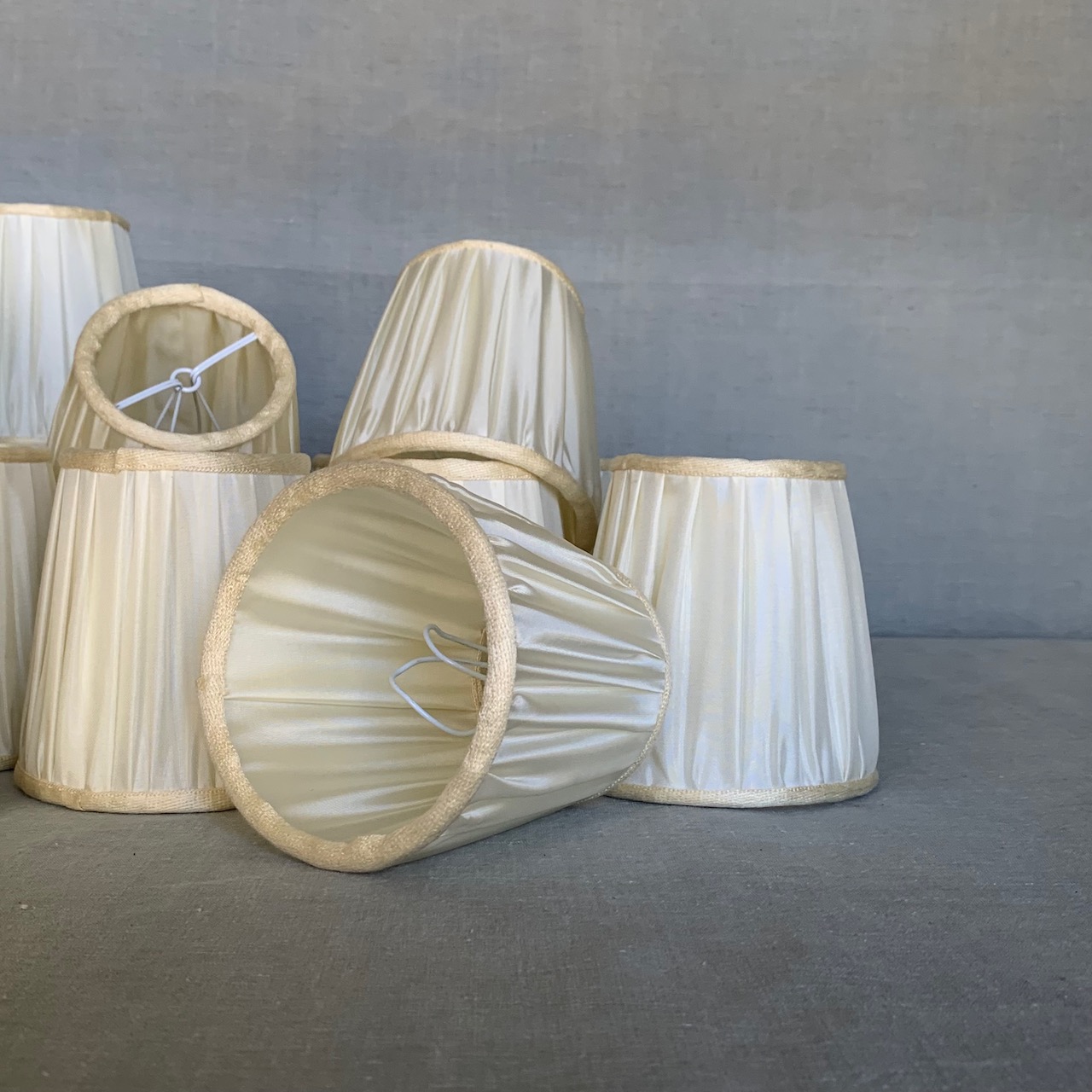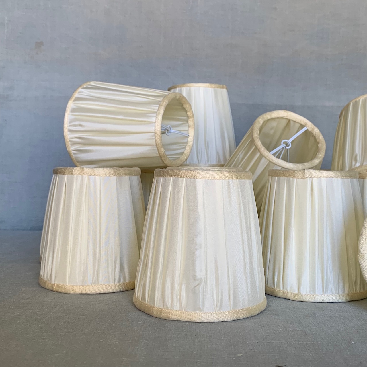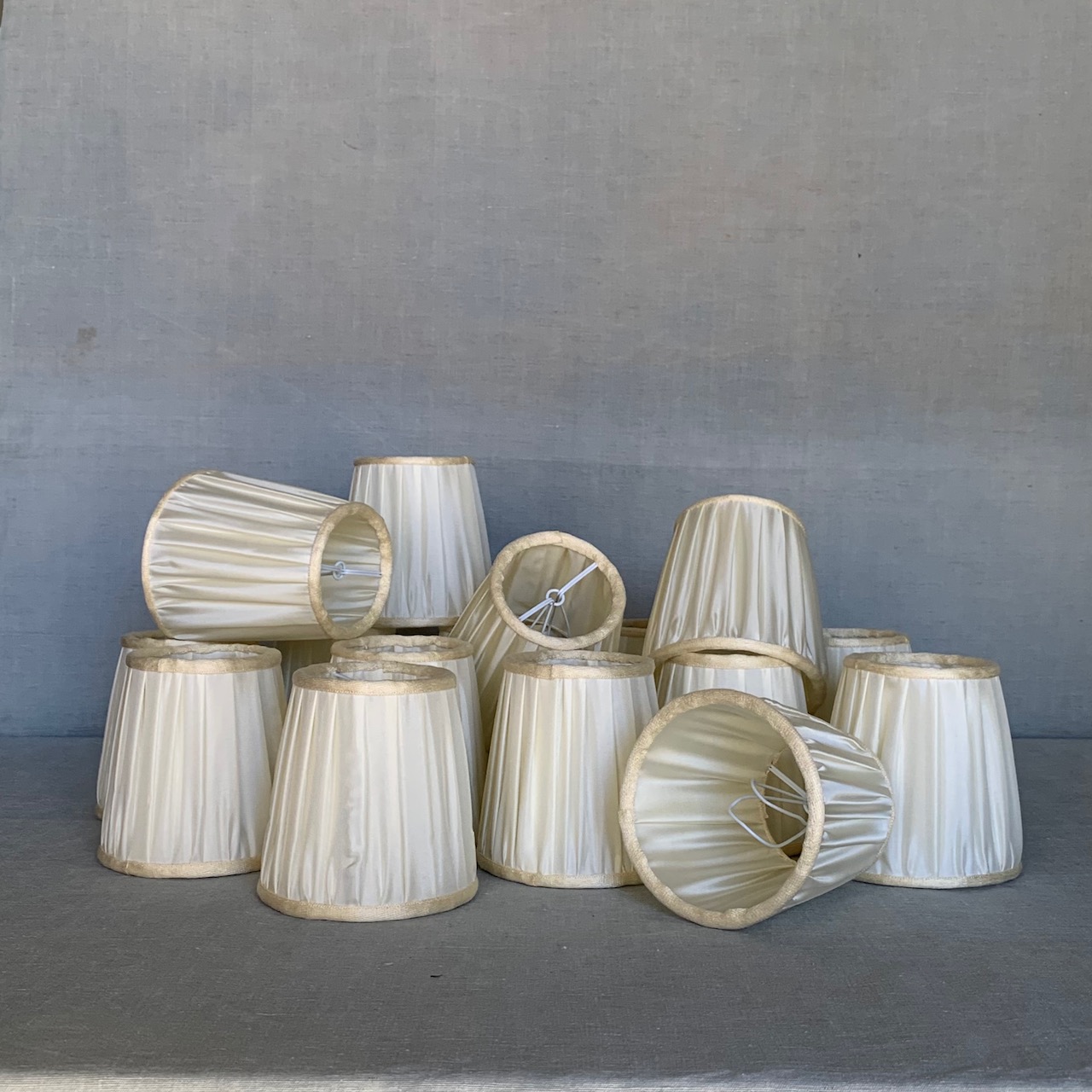 Piccoli paralumi in seta plissé burro, bordino champagne. Italia, sec. XX