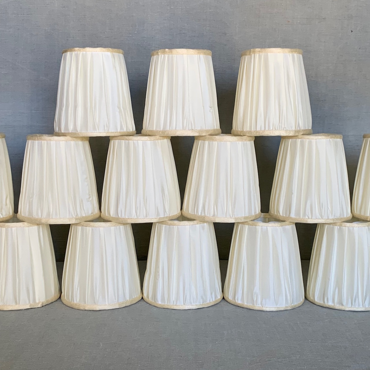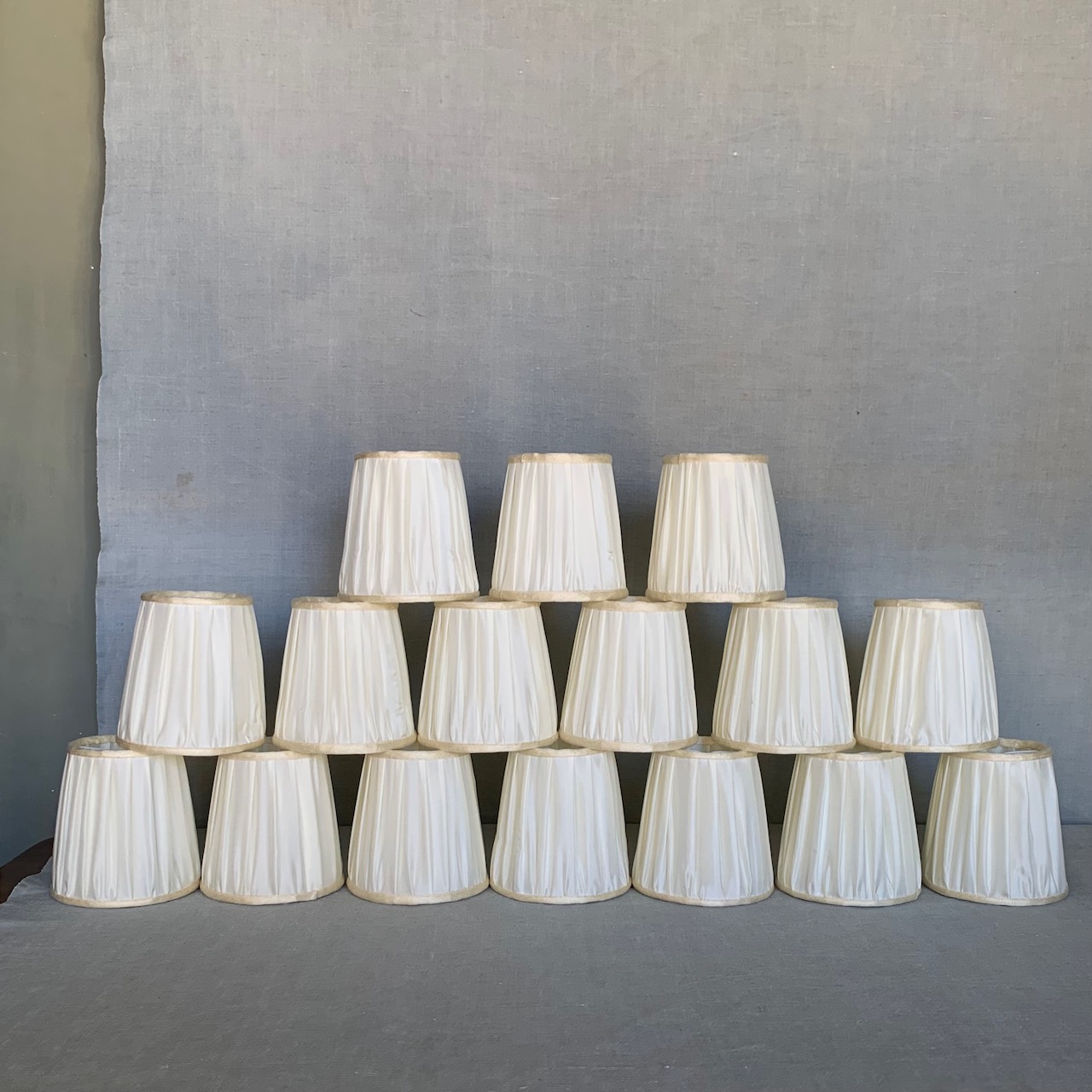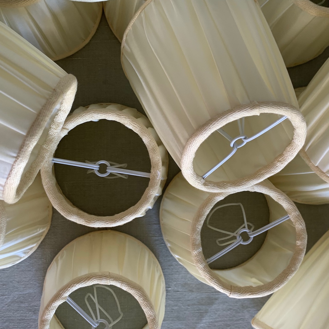Piccoli paralumi in seta plissé burro, bordino champagne. Italia, sec. XX