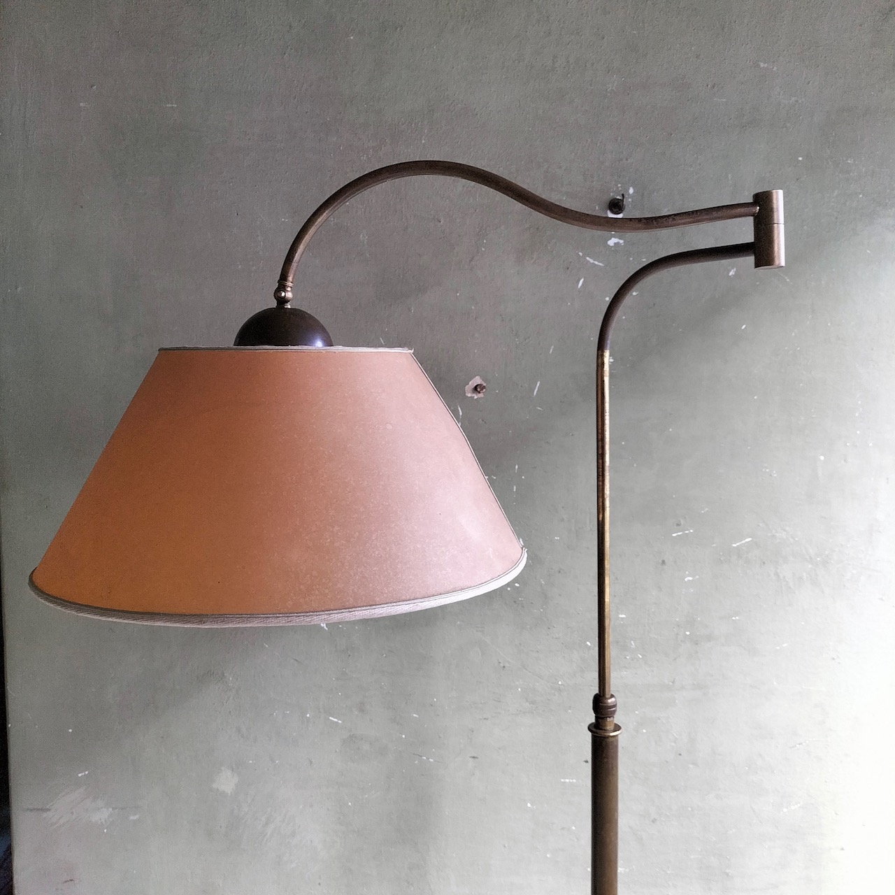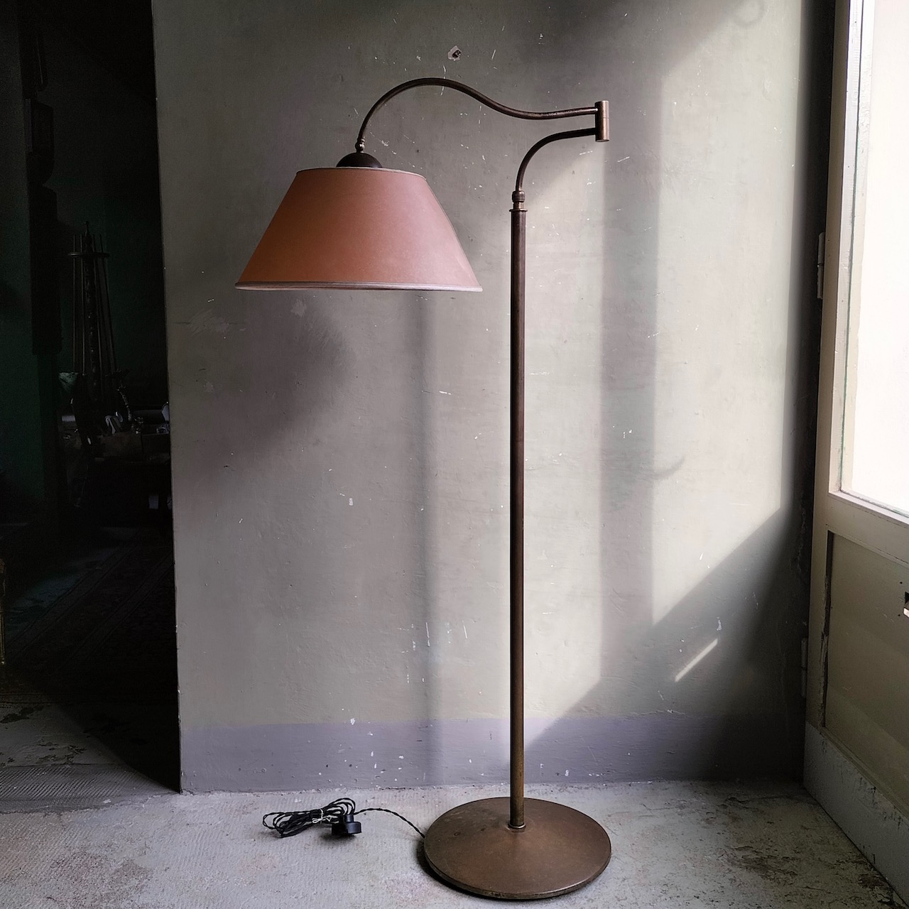 Piantana in bronzo, braccio e altezza regolabili, paralume pergamena. Italia, sec. XIX