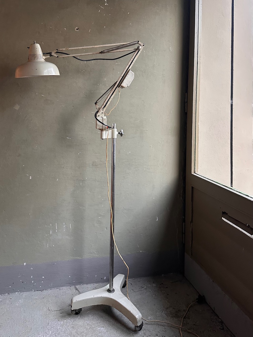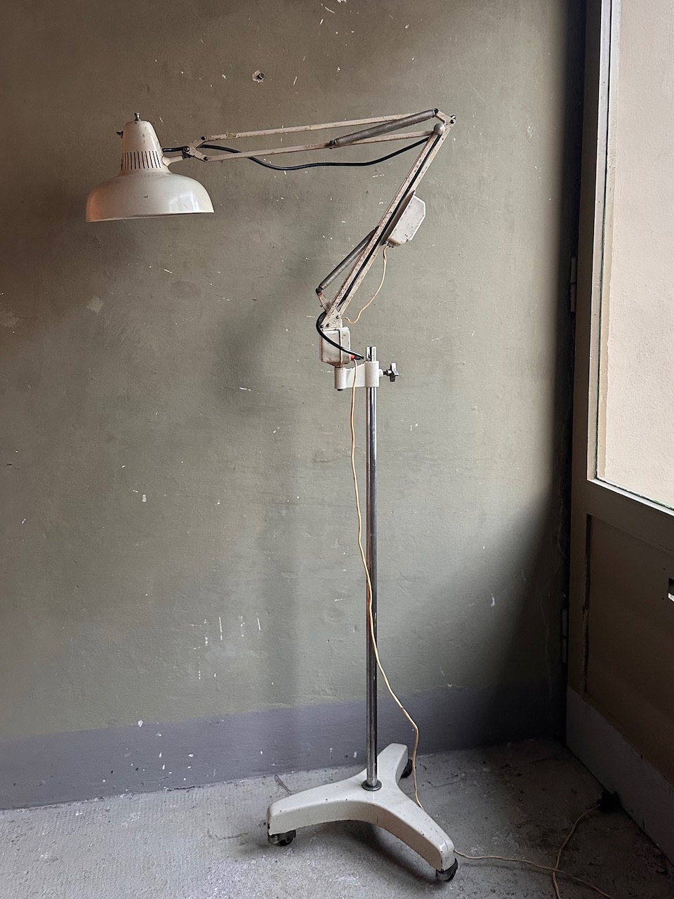 Piantana Naska Loris, estensibile e orientabile, metallo cromato e smaltato, prodotta per Luxo Lamp, Jacob Jacobsen. Norvegia, 1960-69