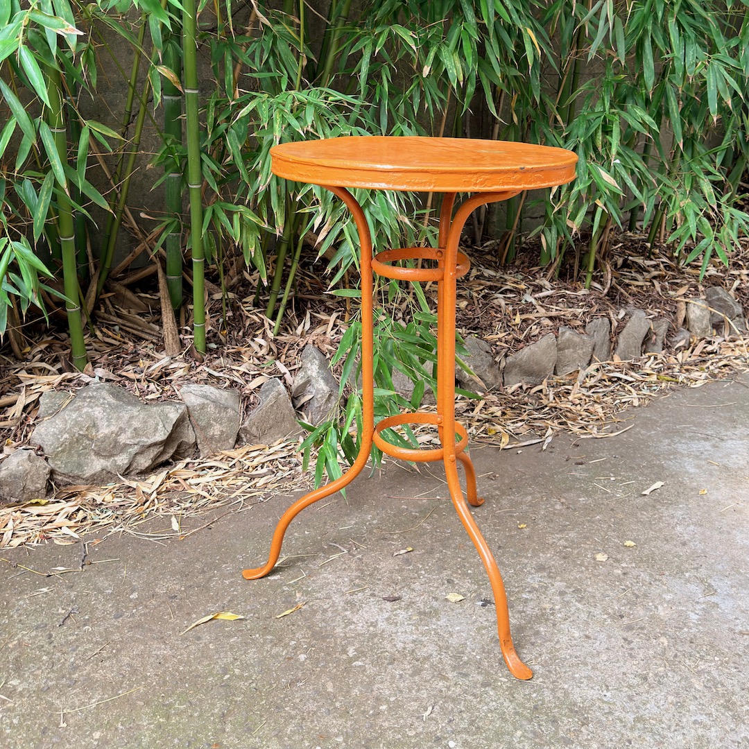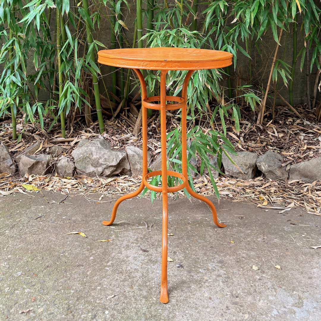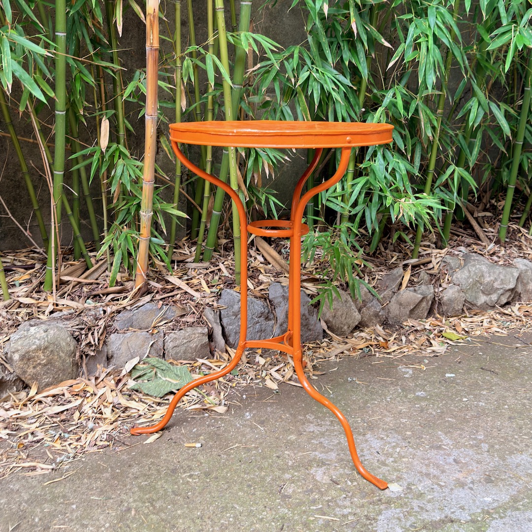 Coppia di Tavoli bistrot da giardino in ferro laccato arancio. Italia, sec. XX