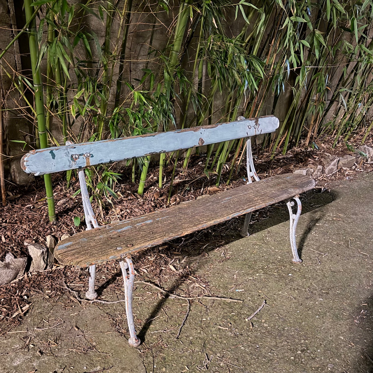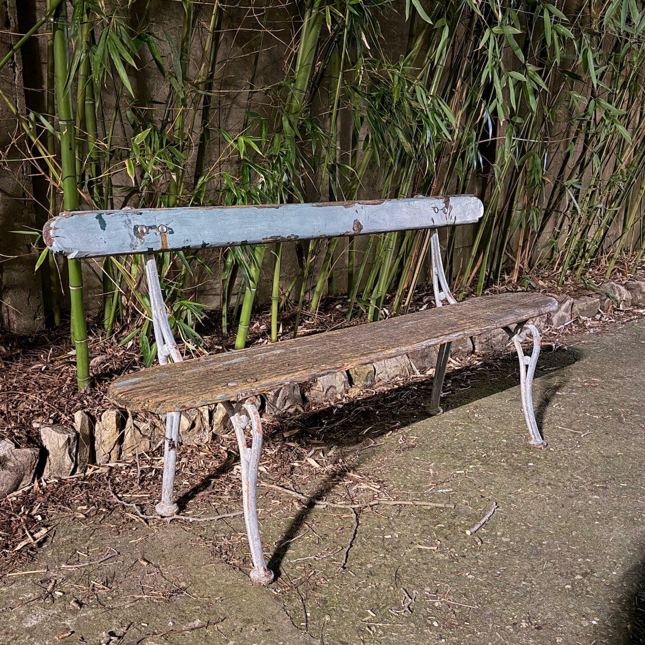 Panchina a stecche in ghisa e legno laccato grigio. Italia, fine sec. XIX