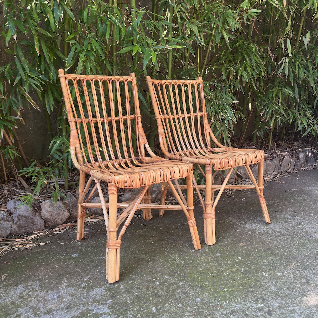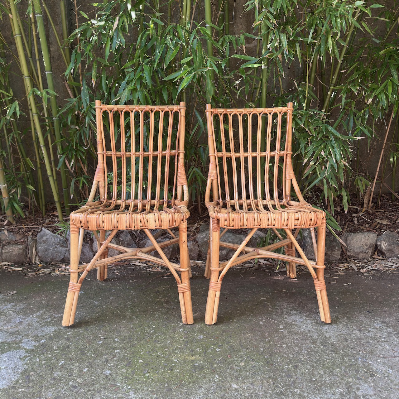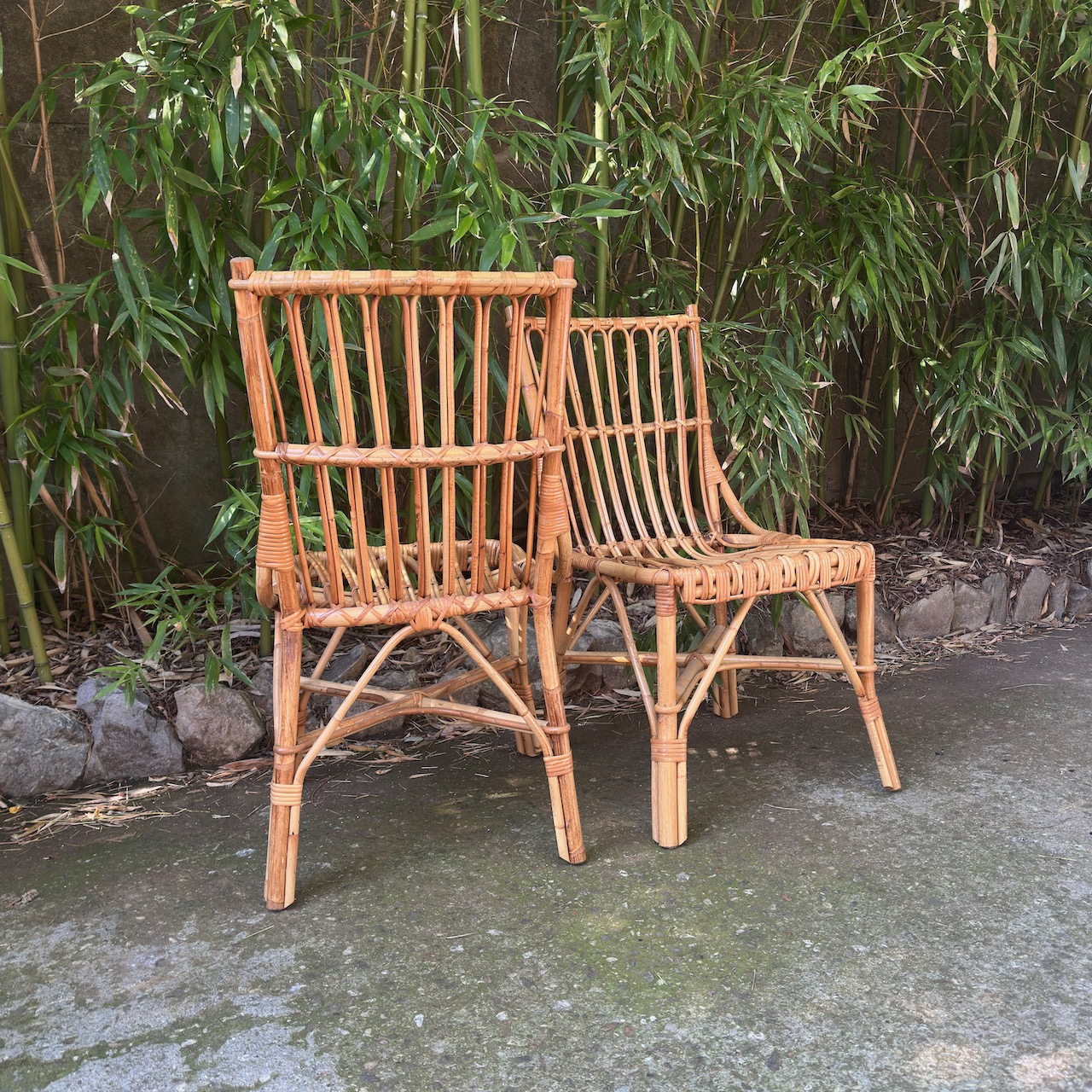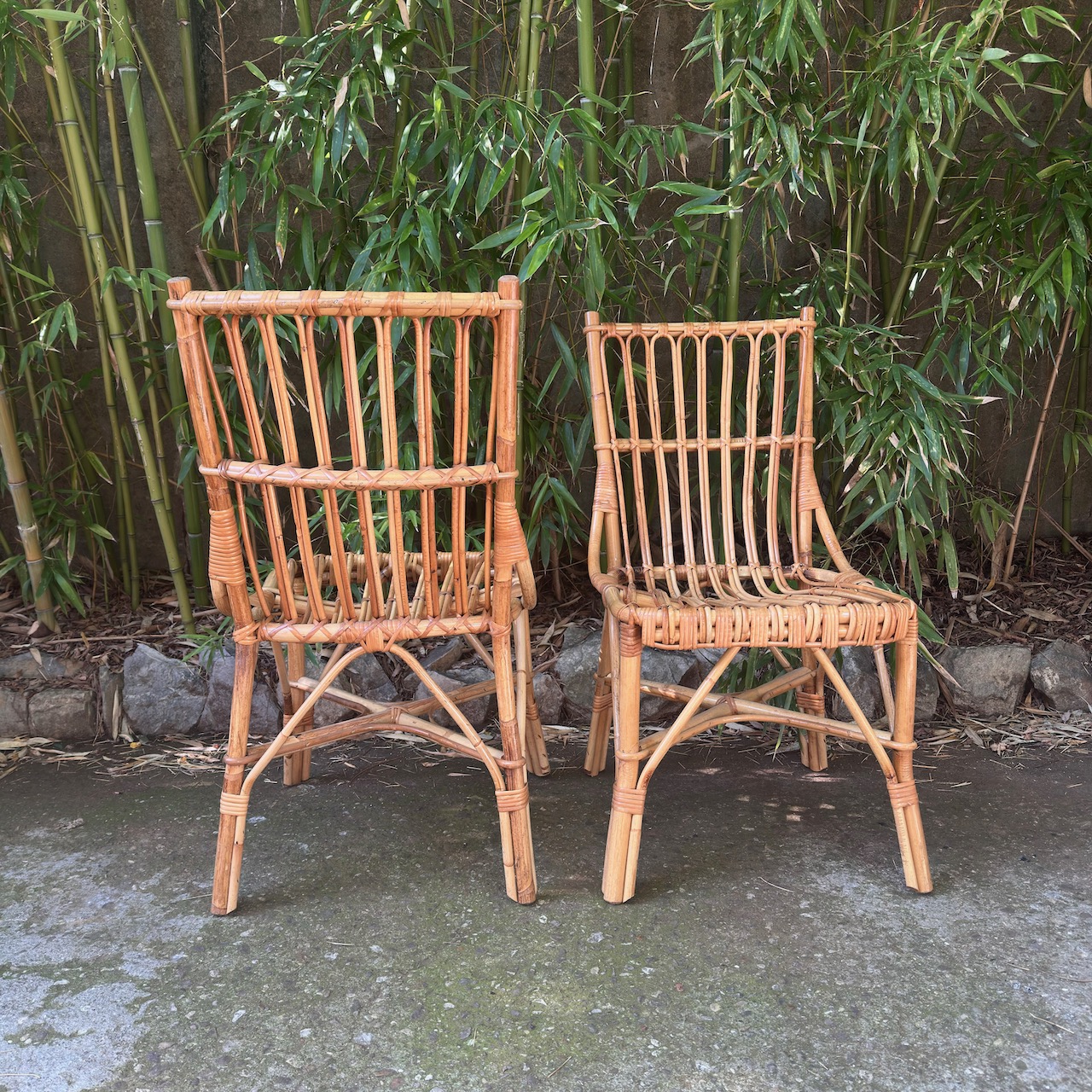 Sedie Gino e Giada, in bambù piegato a caldo e vimini intrecciato. Italia, 1960