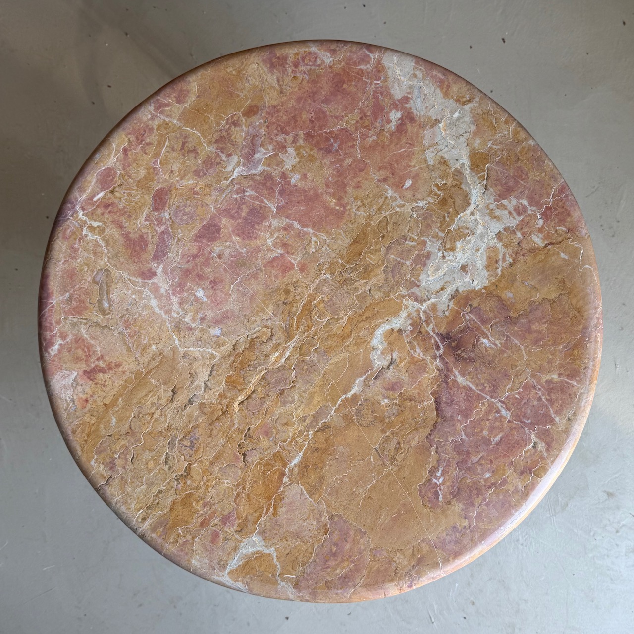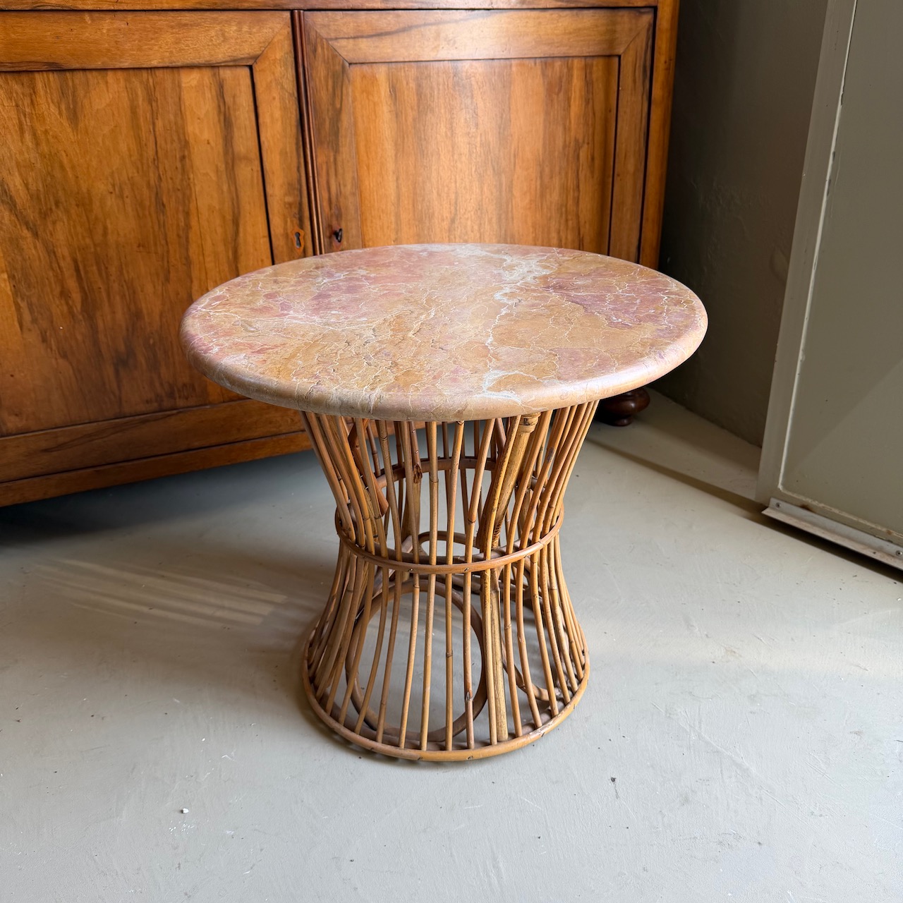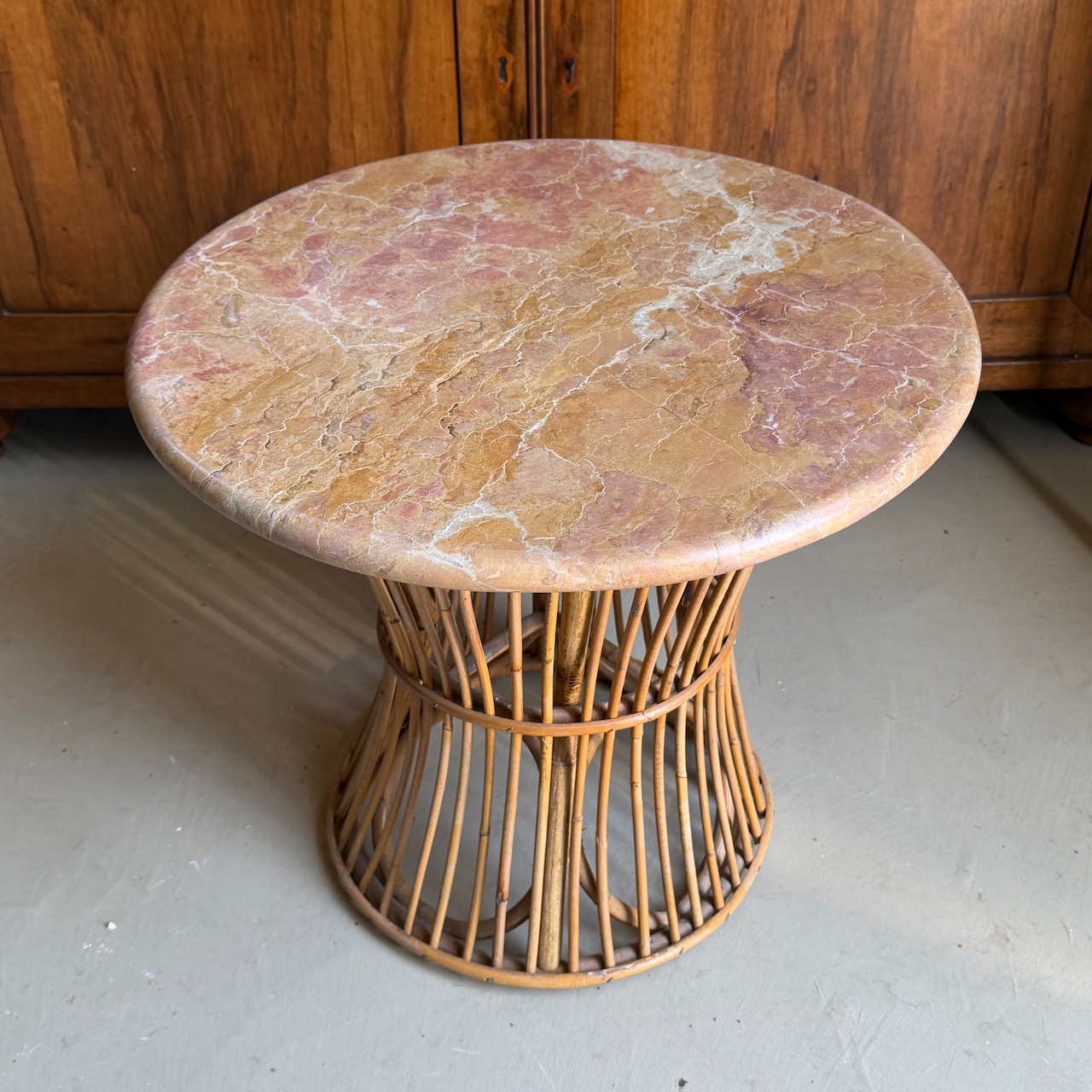 Tavolo da fumo in bambù a spirale, Bonacina, e piano circolare in marmo rosa o nero. Italia, sec. XX