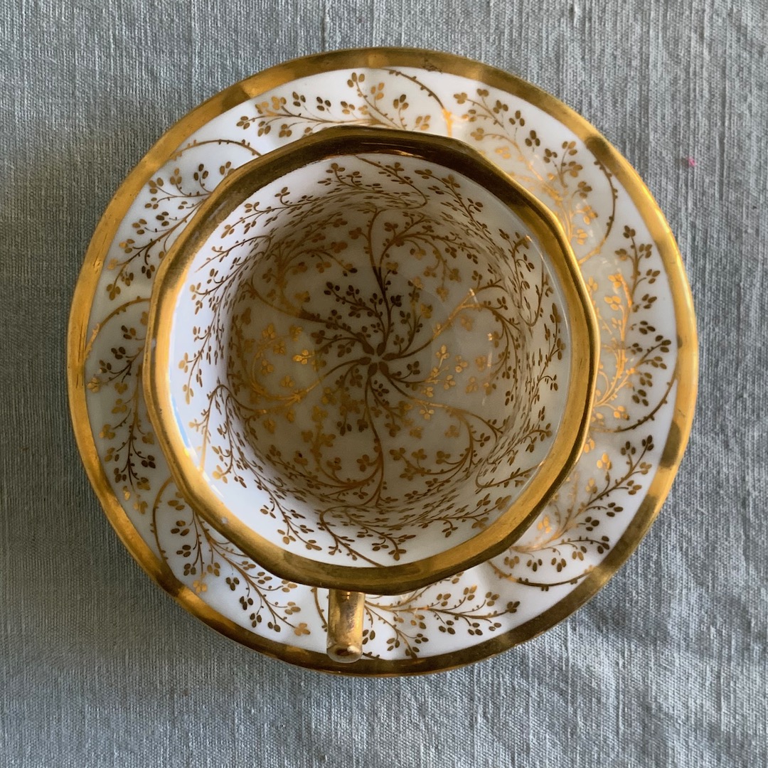 Set da te in porcellana bianca e oro. Italia sec. XIX