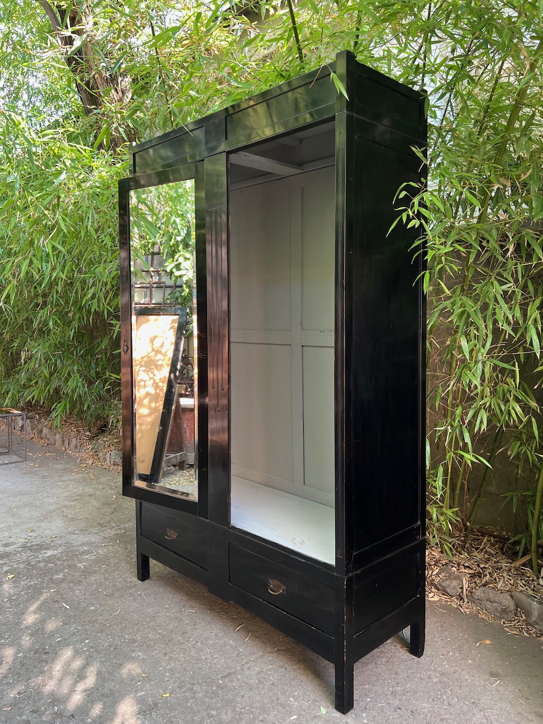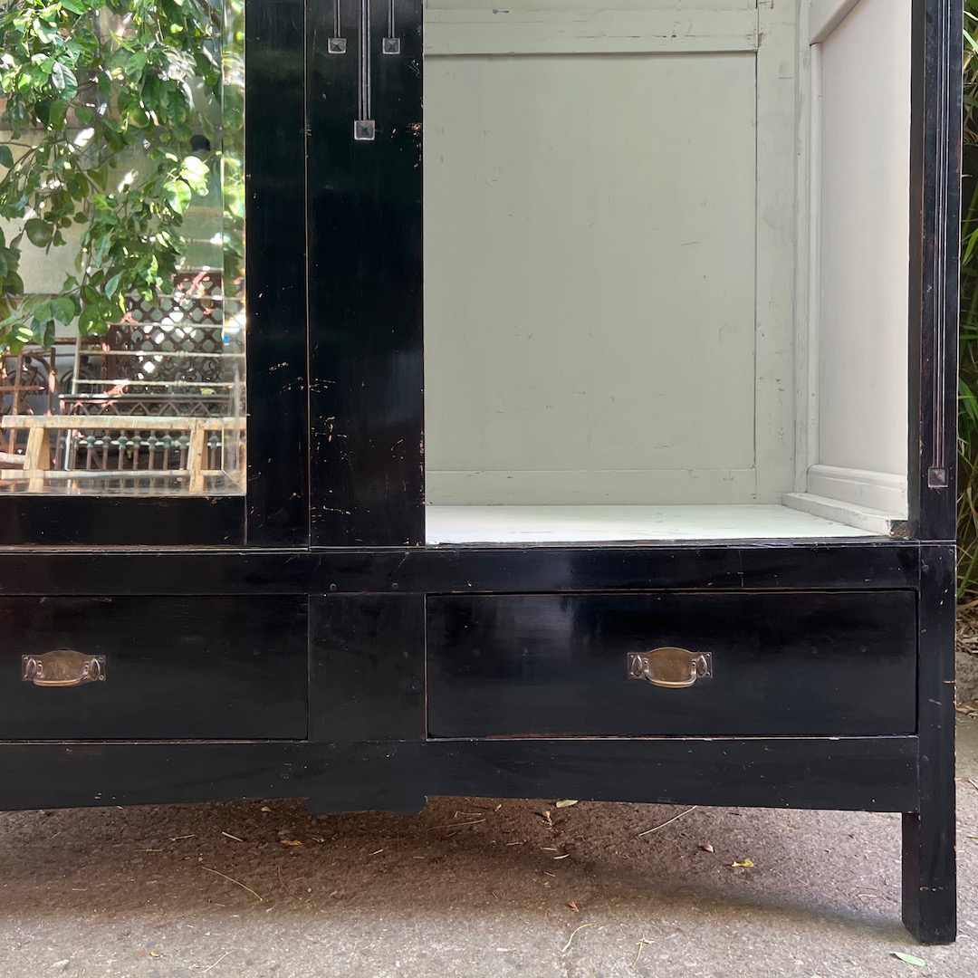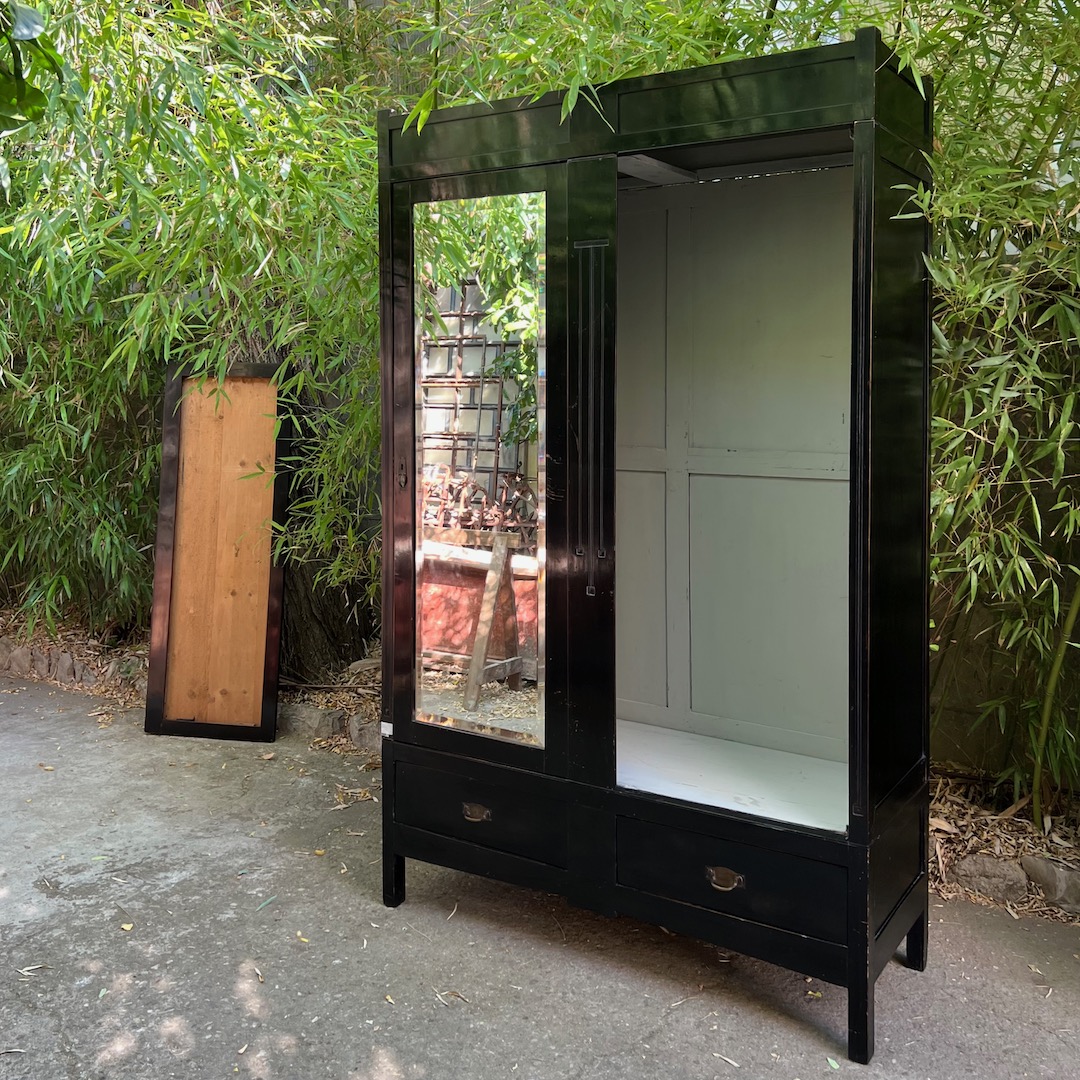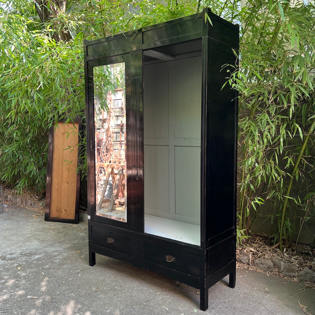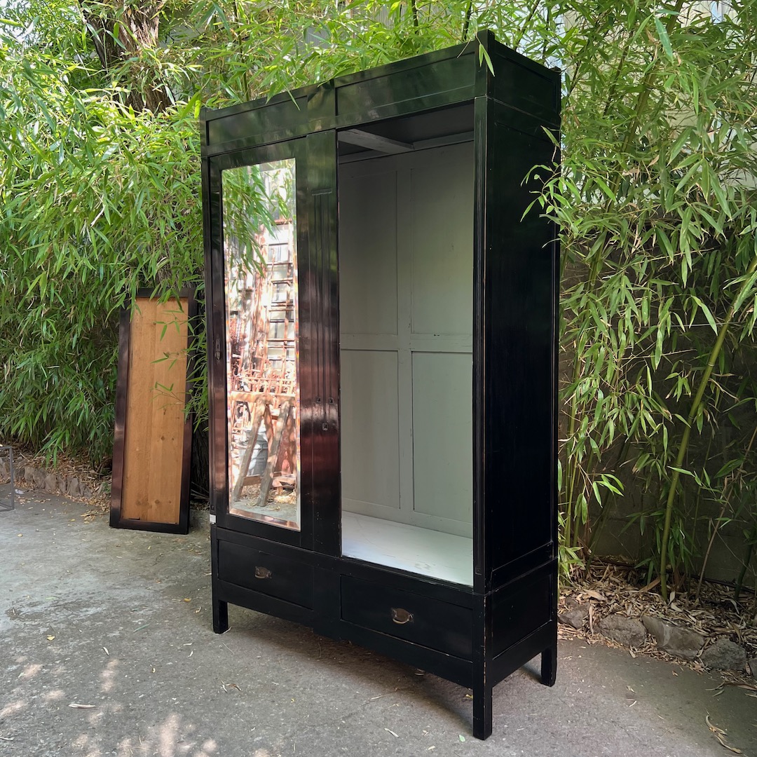 Armadio razionalista ebanizato, ante a specchio molato. Italia 1960 circa