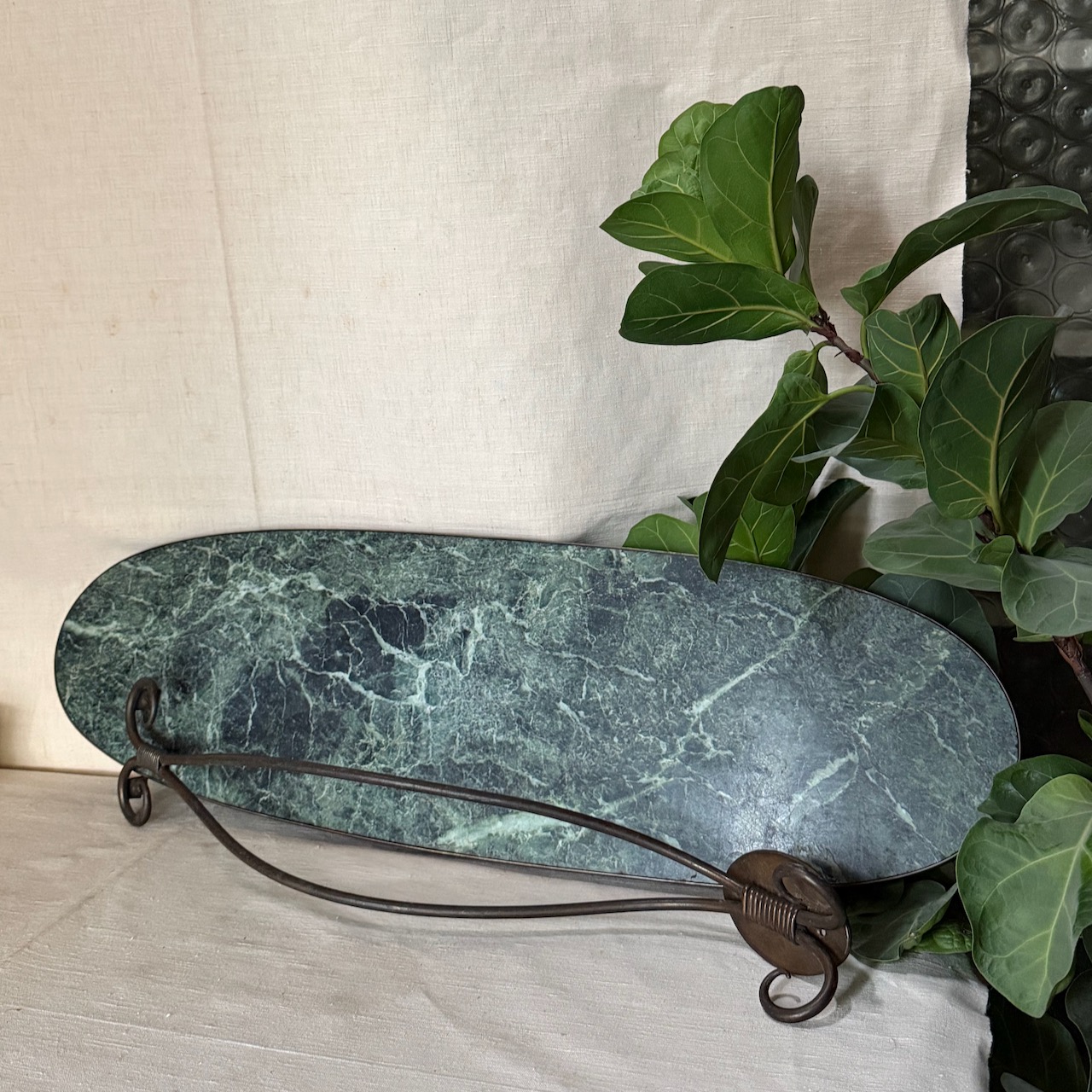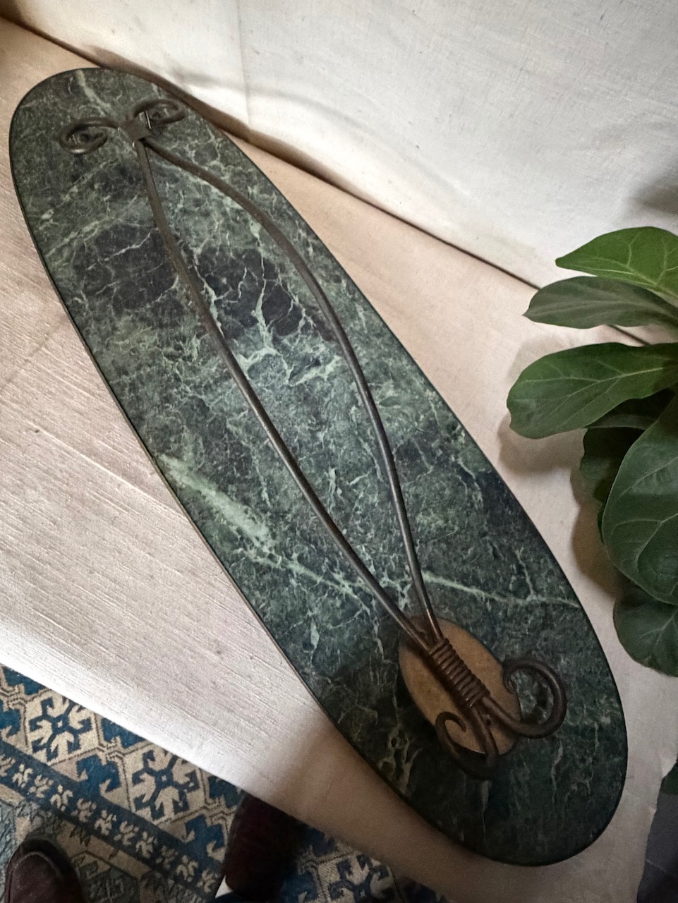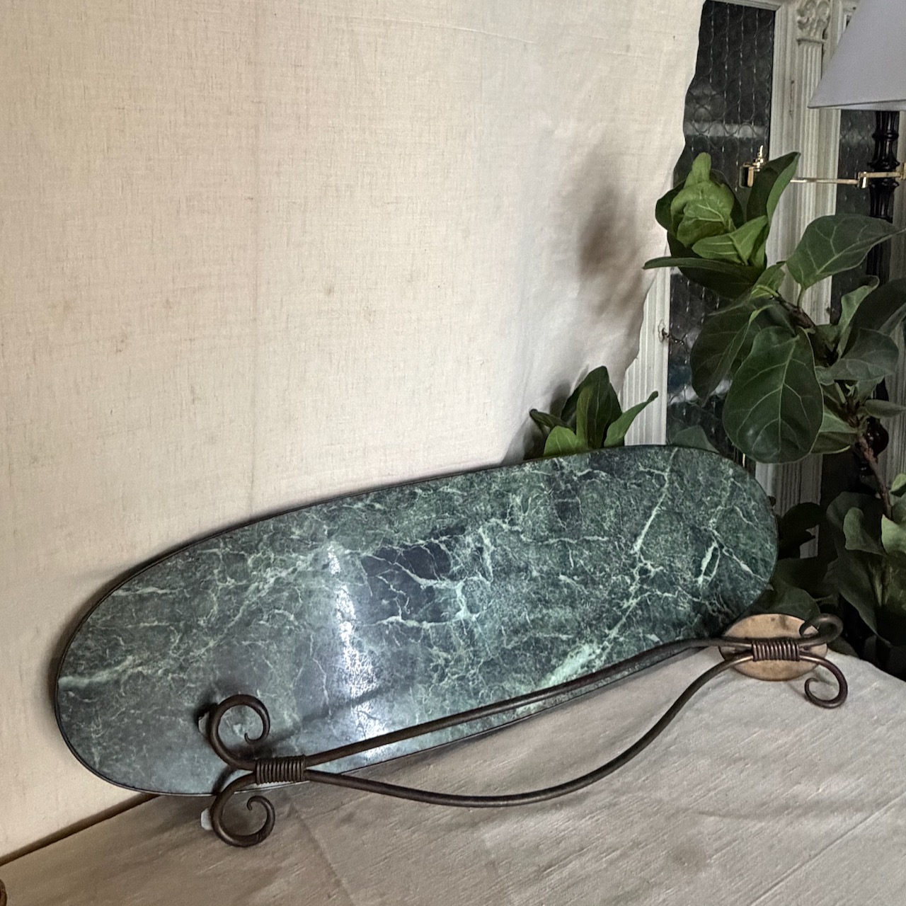 Consolle a mensola, in marmo verde di Prato e sostegno in ferro battuto. Italia, sec. XX