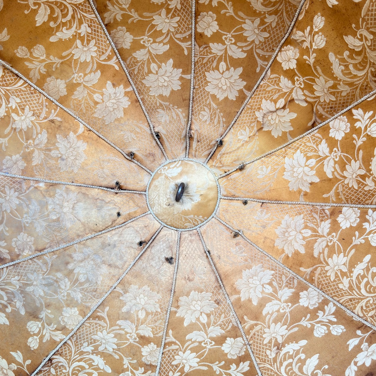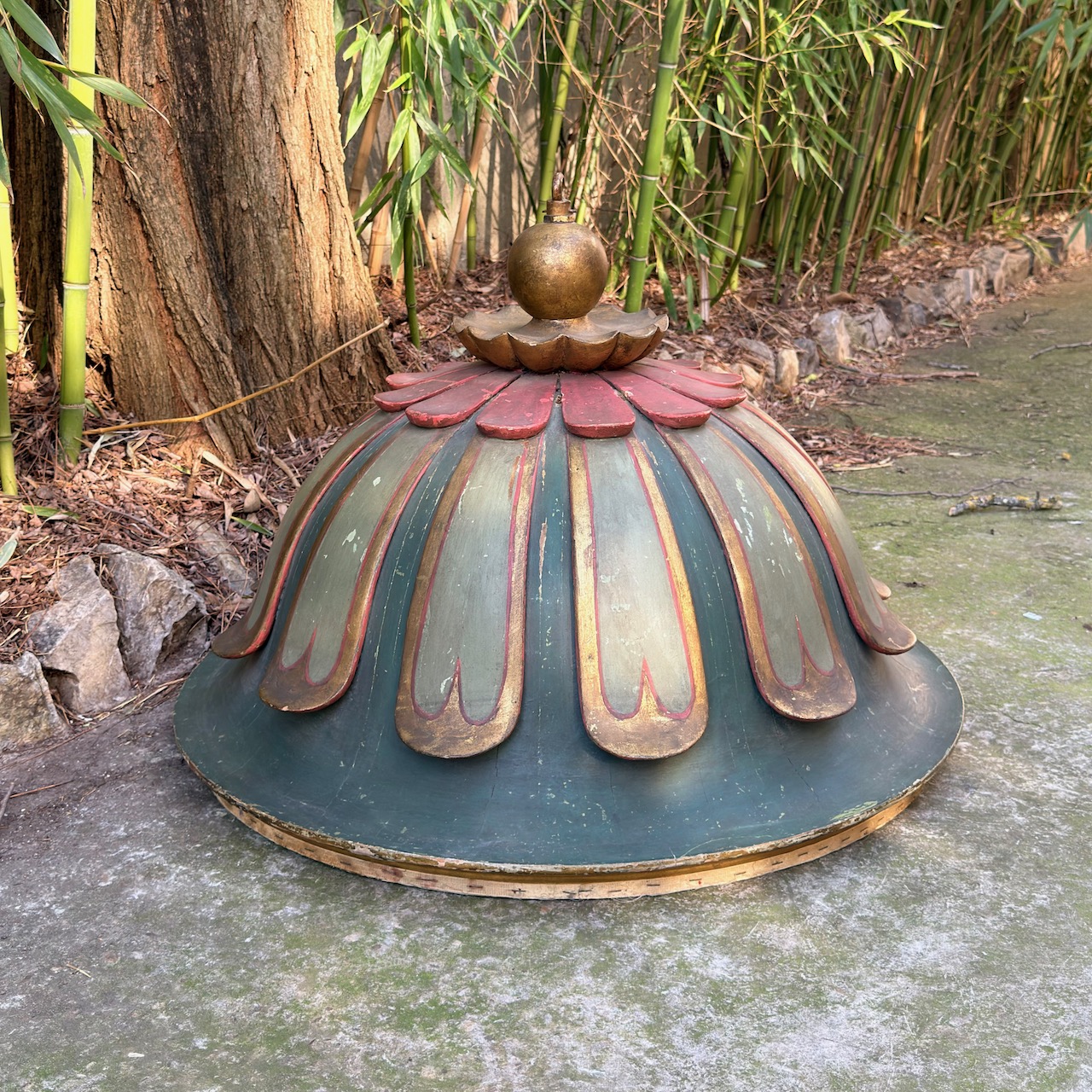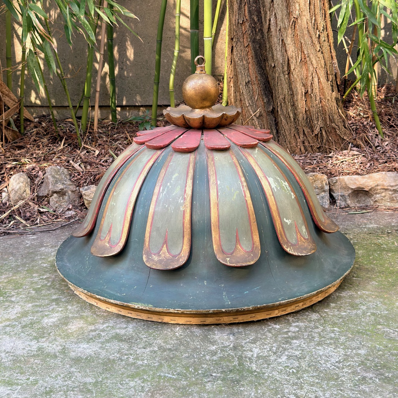 Cappello di baldacchino in legno scolpito, interno seta damasco oro. Italia, sec. XIX