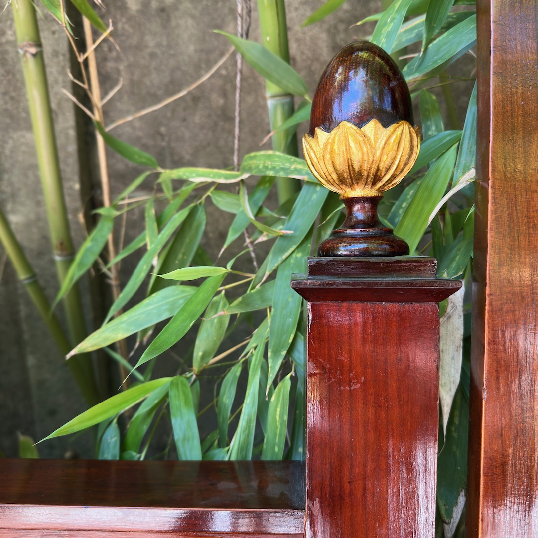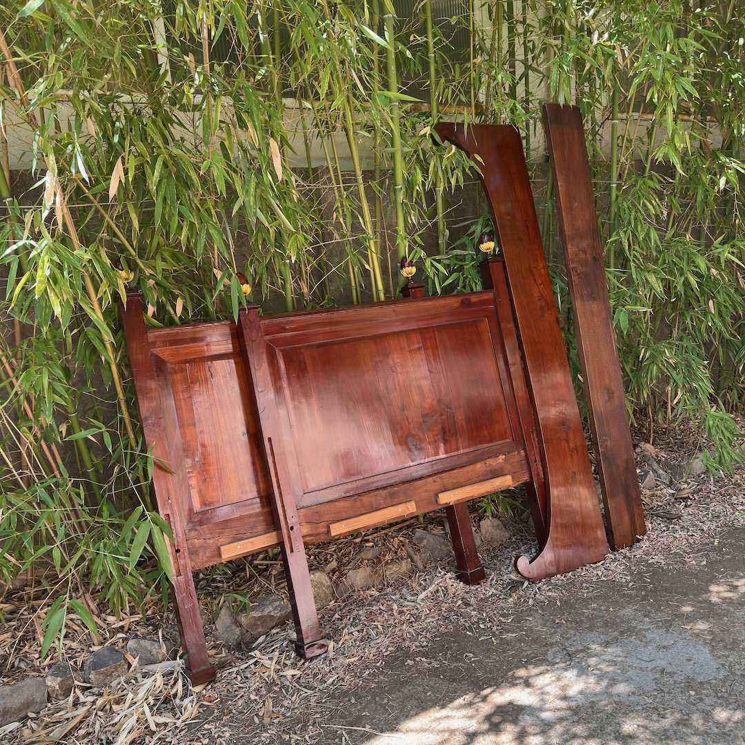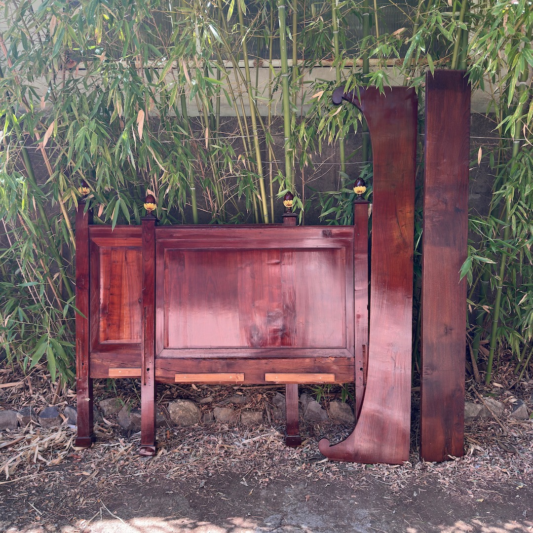 Testiera per letto in legno di noce con pigne decorative. Italia, sec. XX