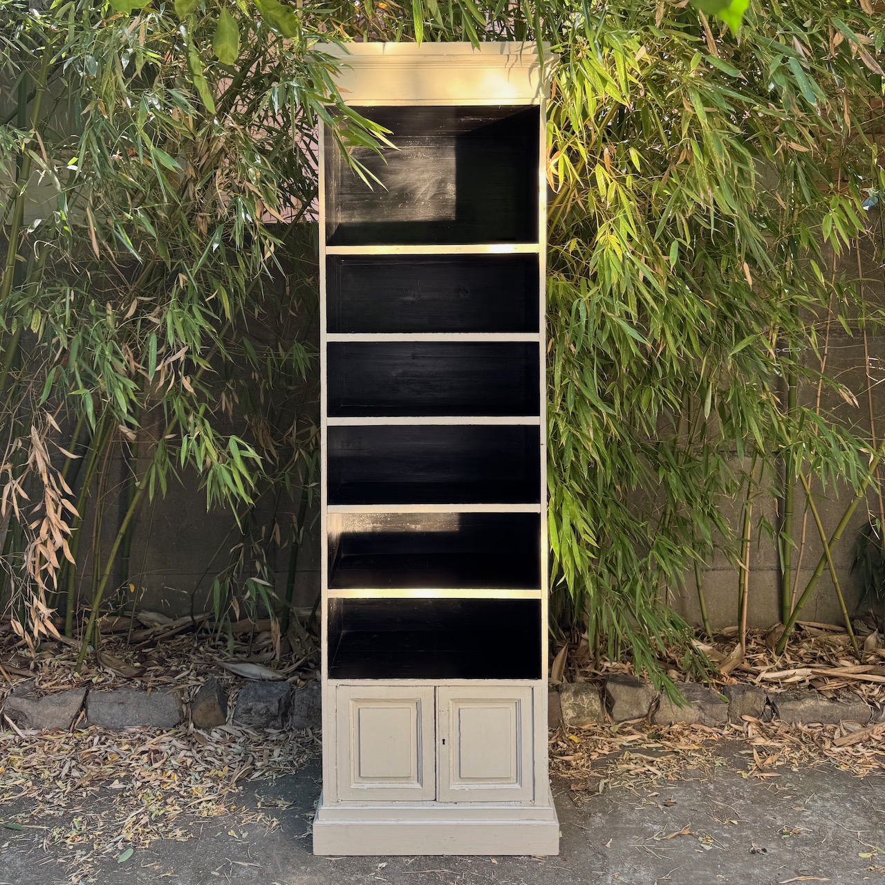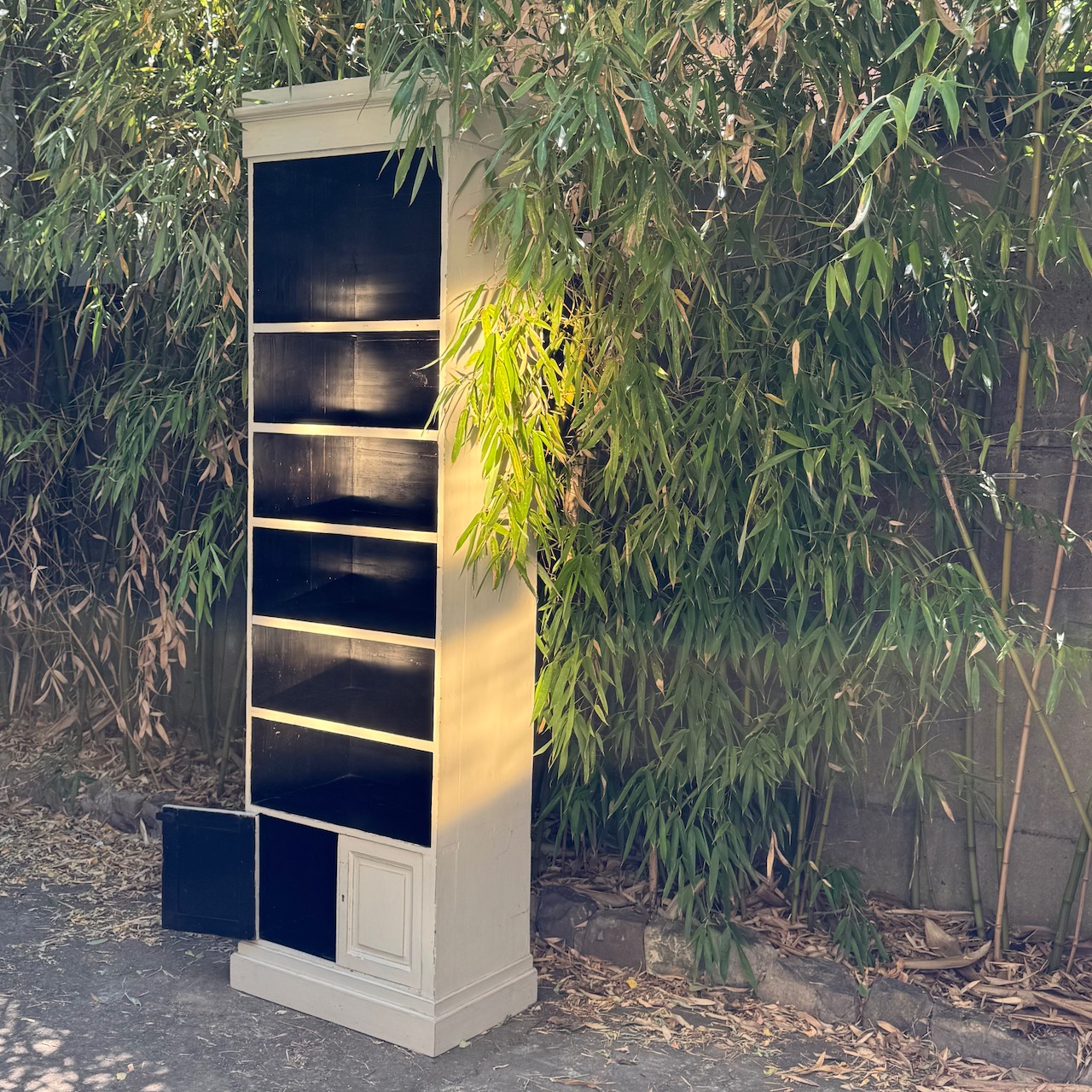 Libreria a colonna in legno di noce avorio in parte ebanizzato