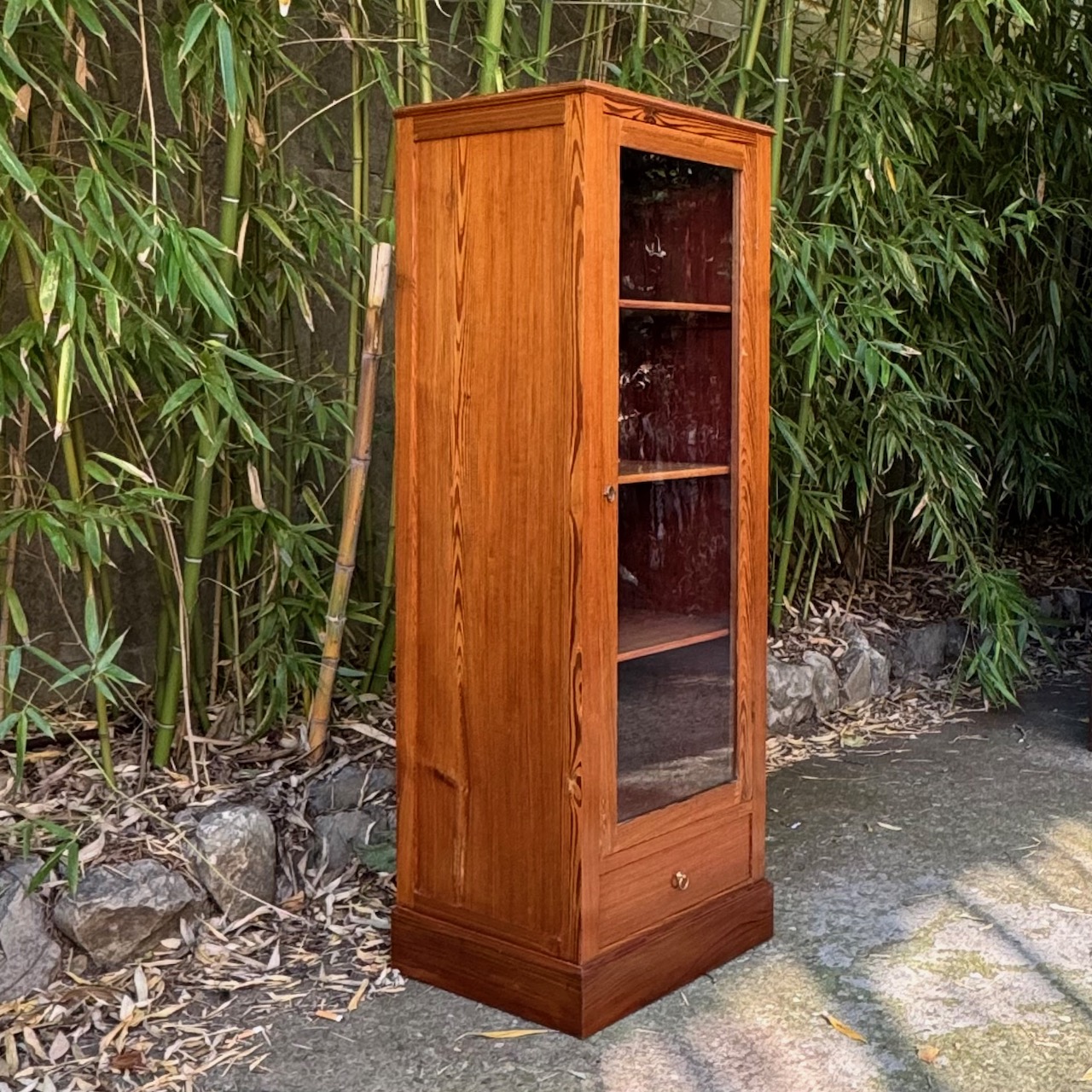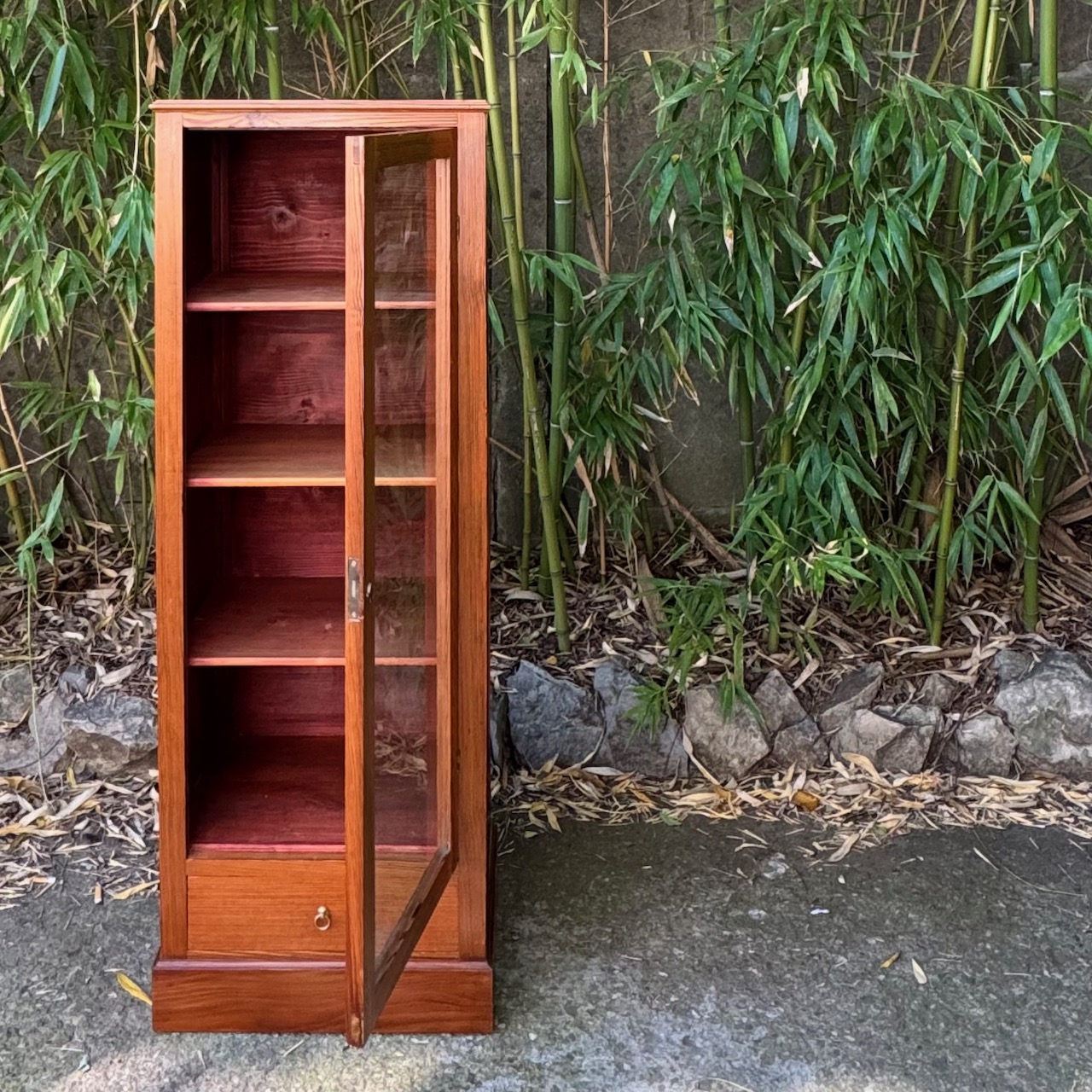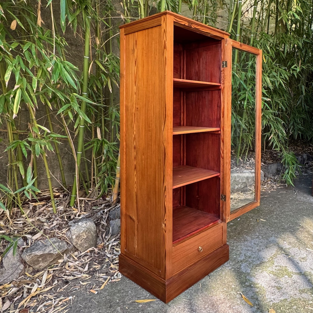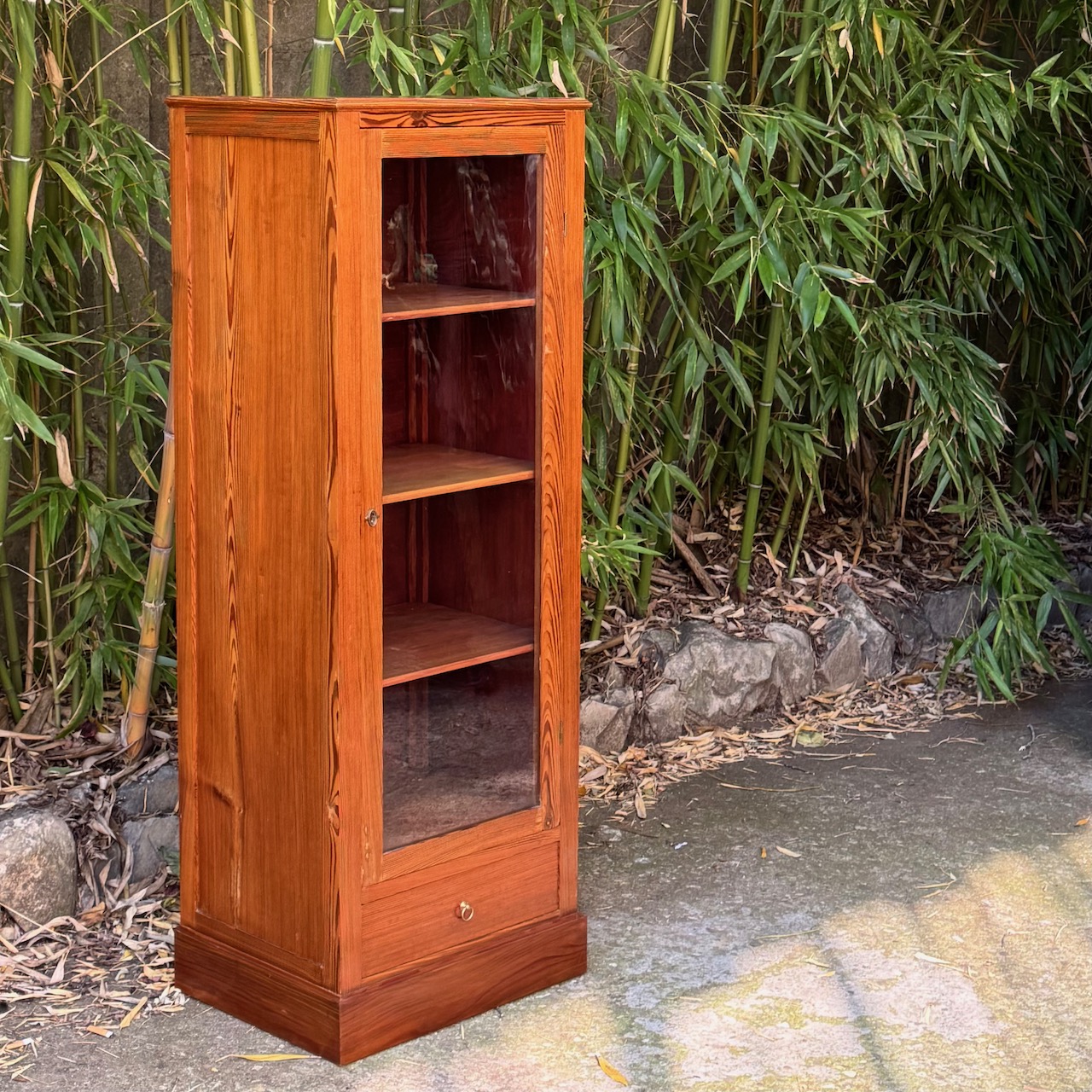Piccola Libreria a colonna in larice, uno sportello a vetro soffiato di epoca, un cassetto su la fascia bassa, allestita all'interno con quattro palchi fissi. Toscana, fine sec. XIX