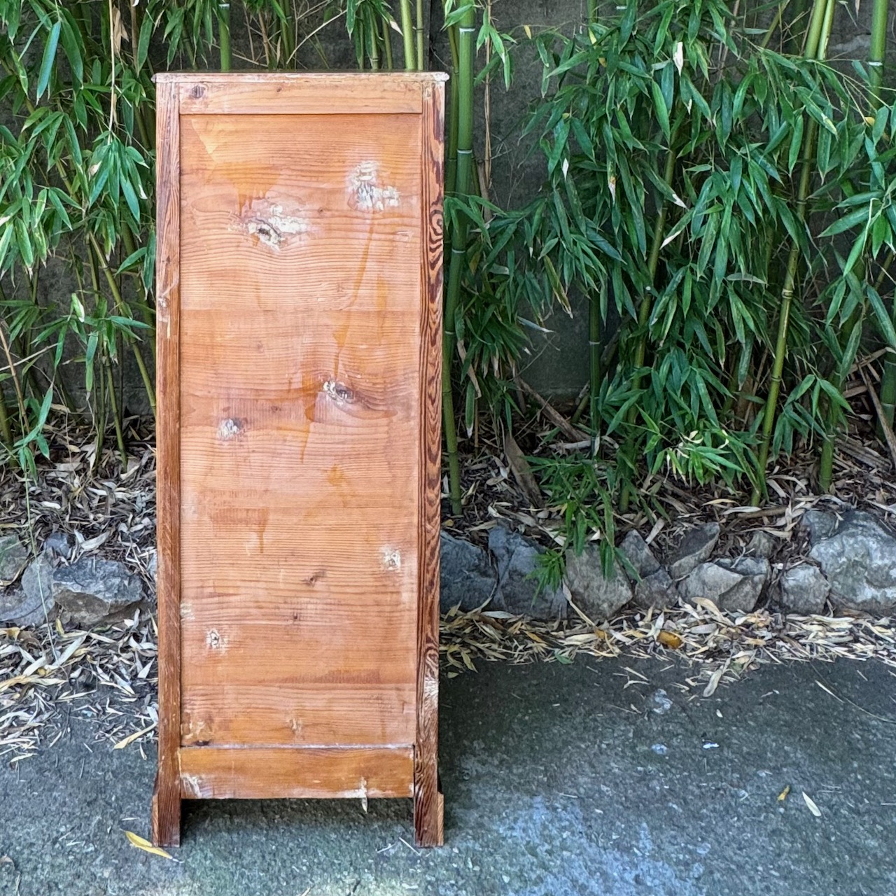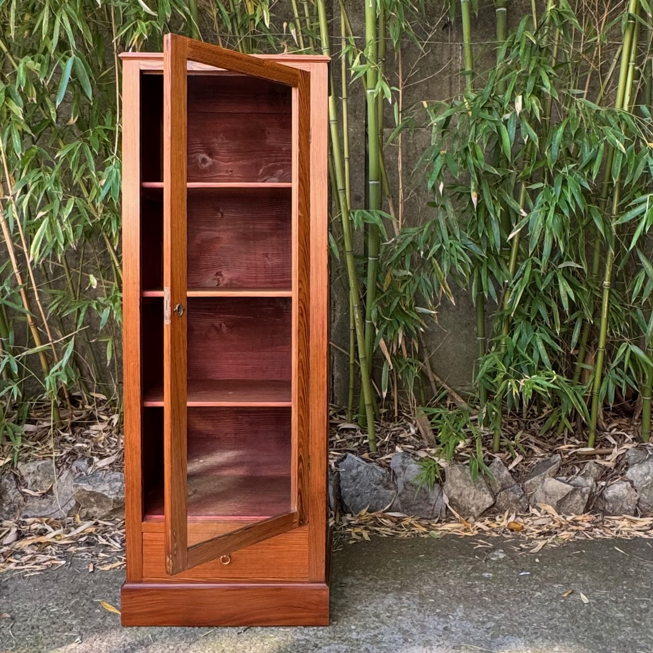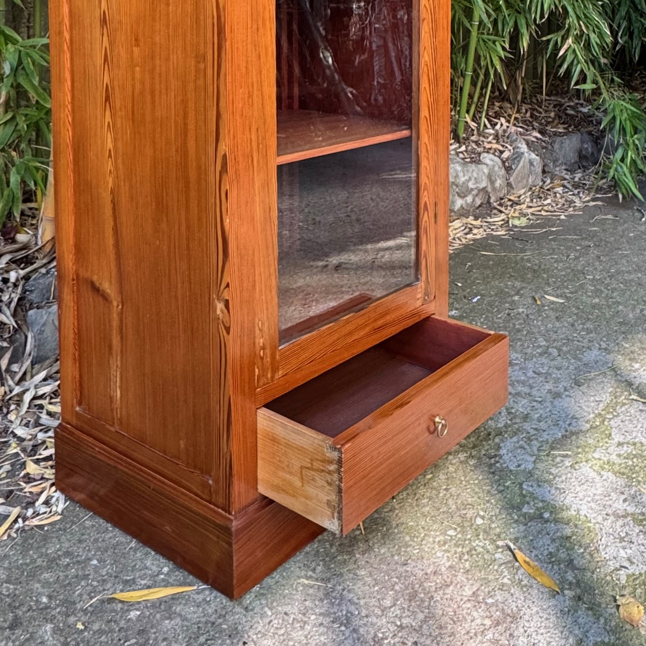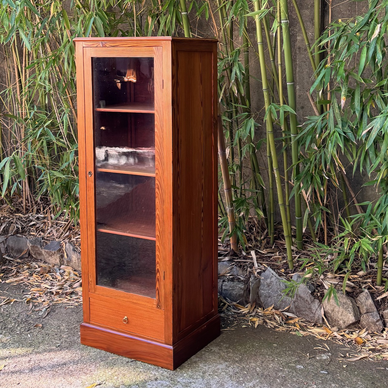 Piccola Libreria a colonna in larice, uno sportello a vetro soffiato di epoca, un cassetto su la fascia bassa, allestita all'interno con quattro palchi fissi. Toscana, fine sec. XIX