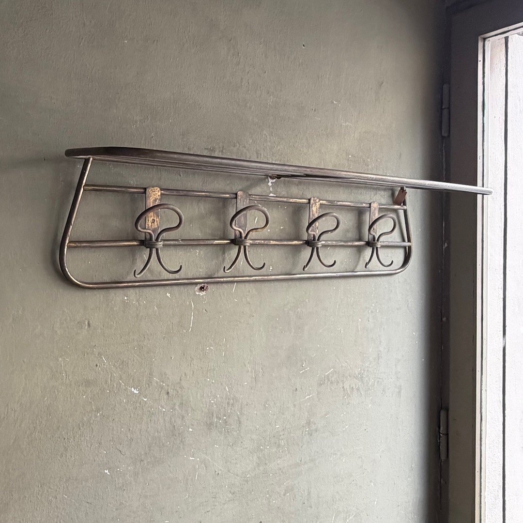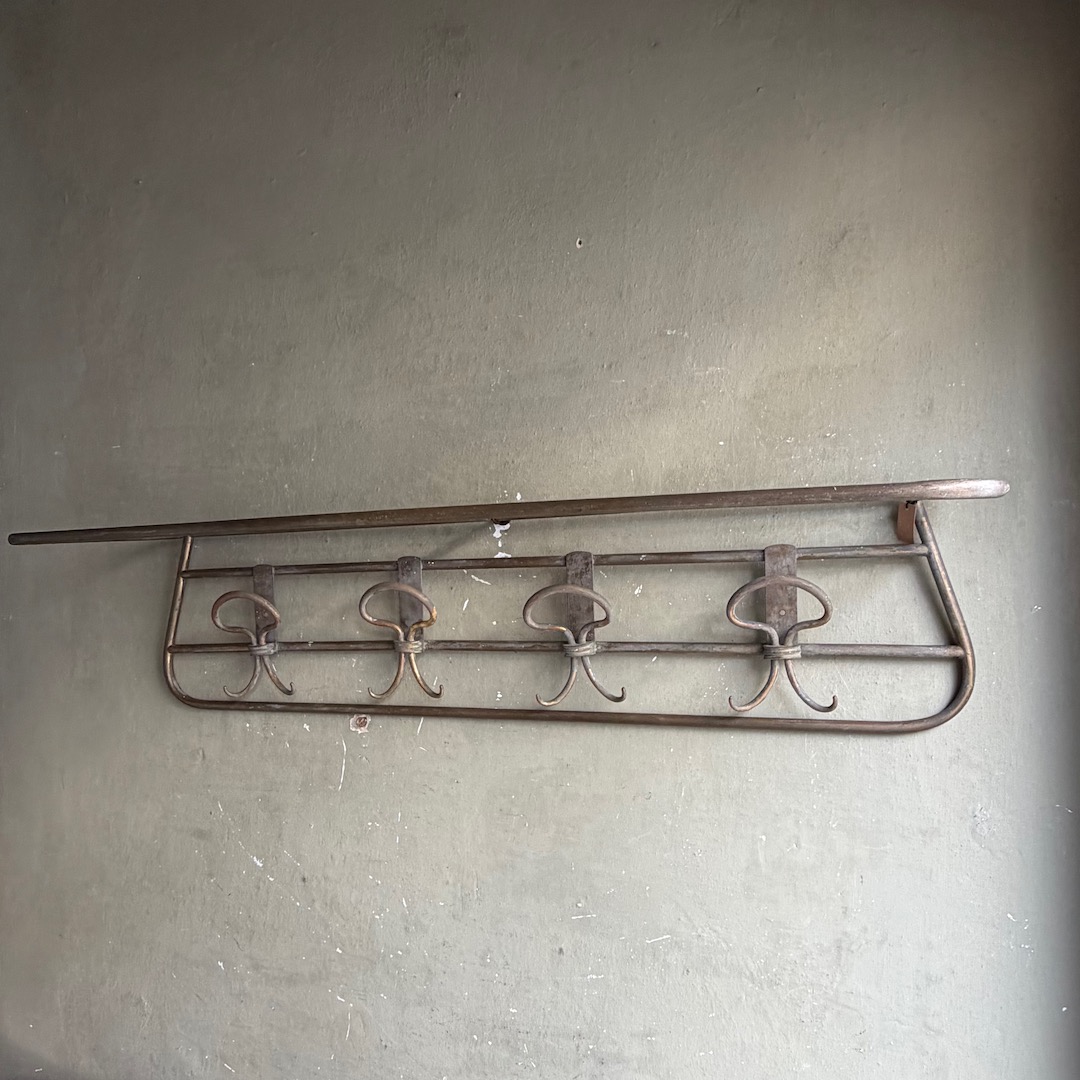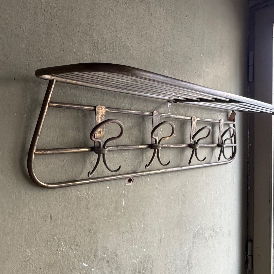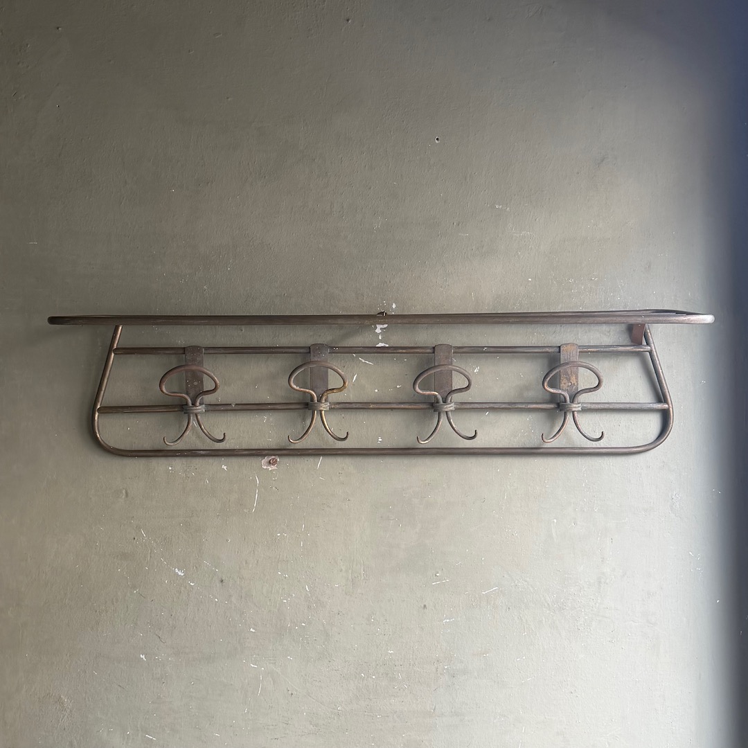 Attaccapanni Mid-Century in bronzo dorato, quattro ganci portabiti a fiocco. Italia, 1950 ca