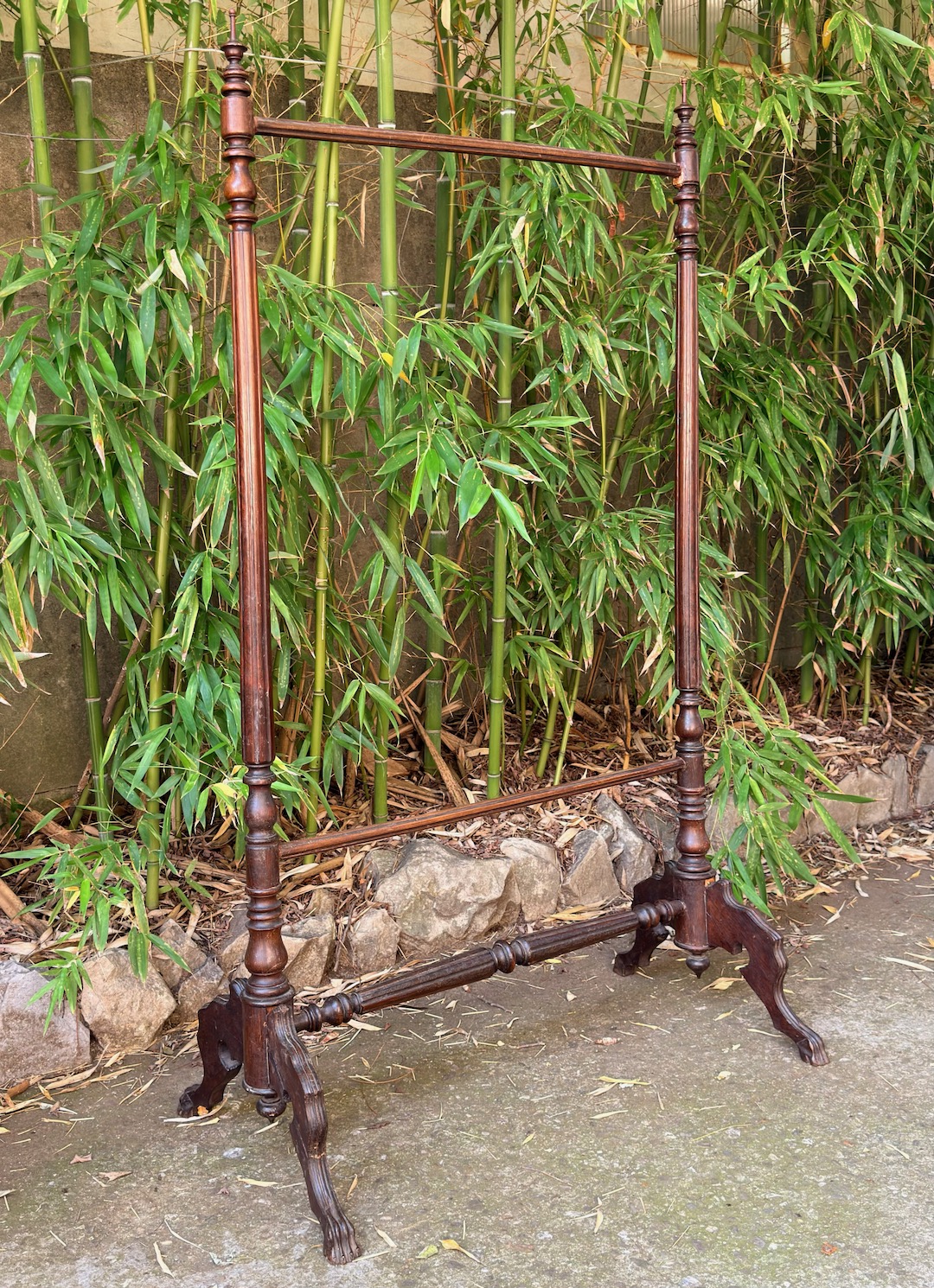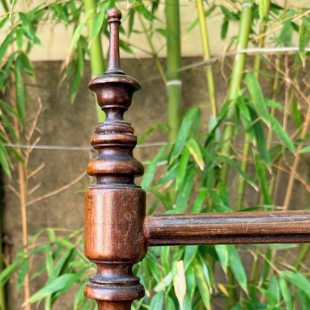 Grande attaccapanni Napoleone III in noce tornito e patinato, finali a trottola. Italia, inizio sec. XIX