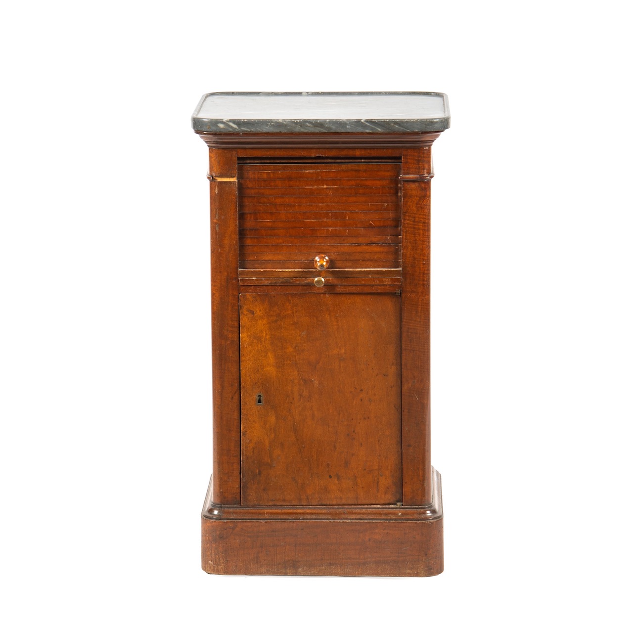 Comodino Inglese, in mogano, a due sportelli, uno a saracinesca. Inghilterra sec. XIX