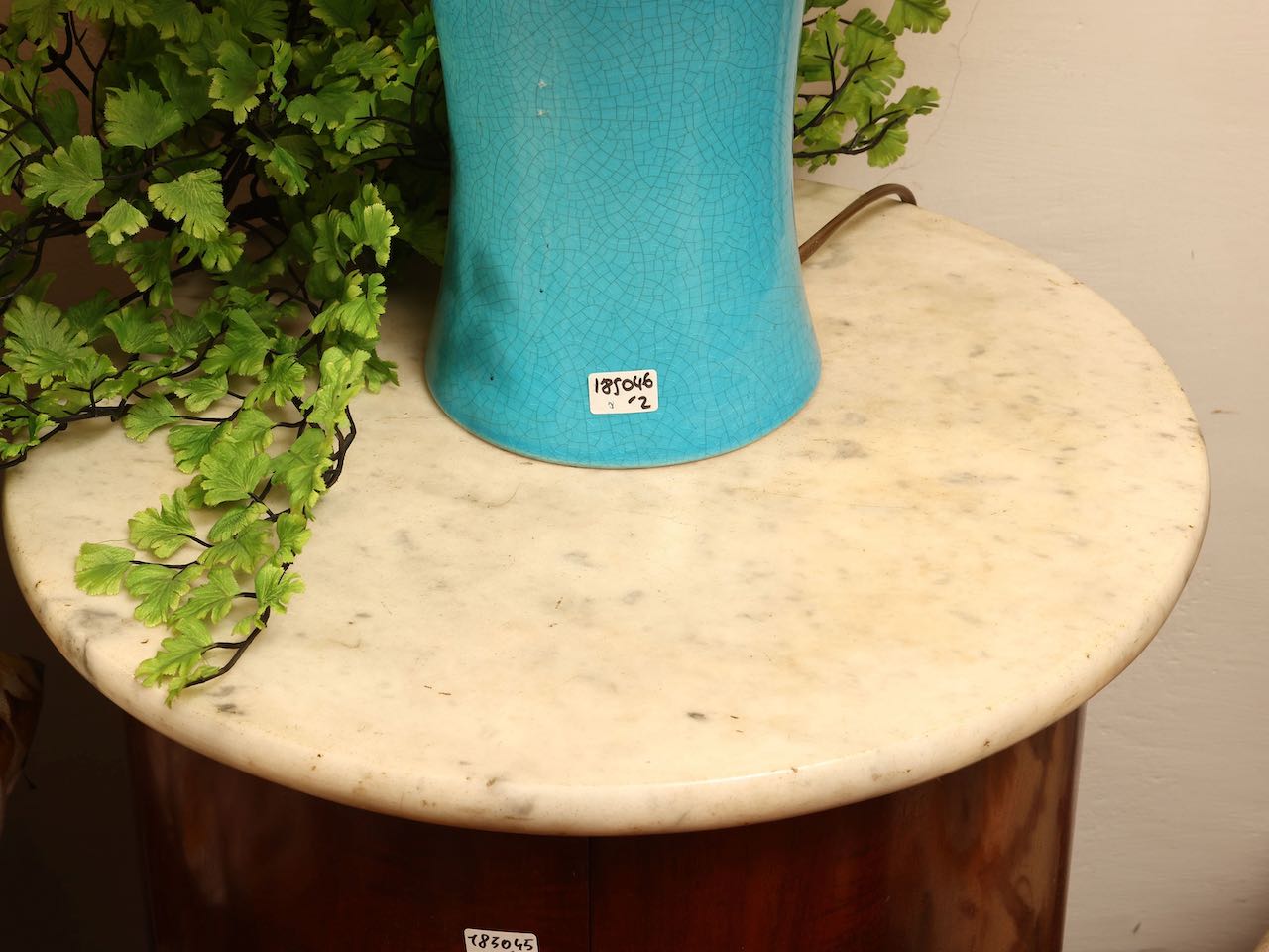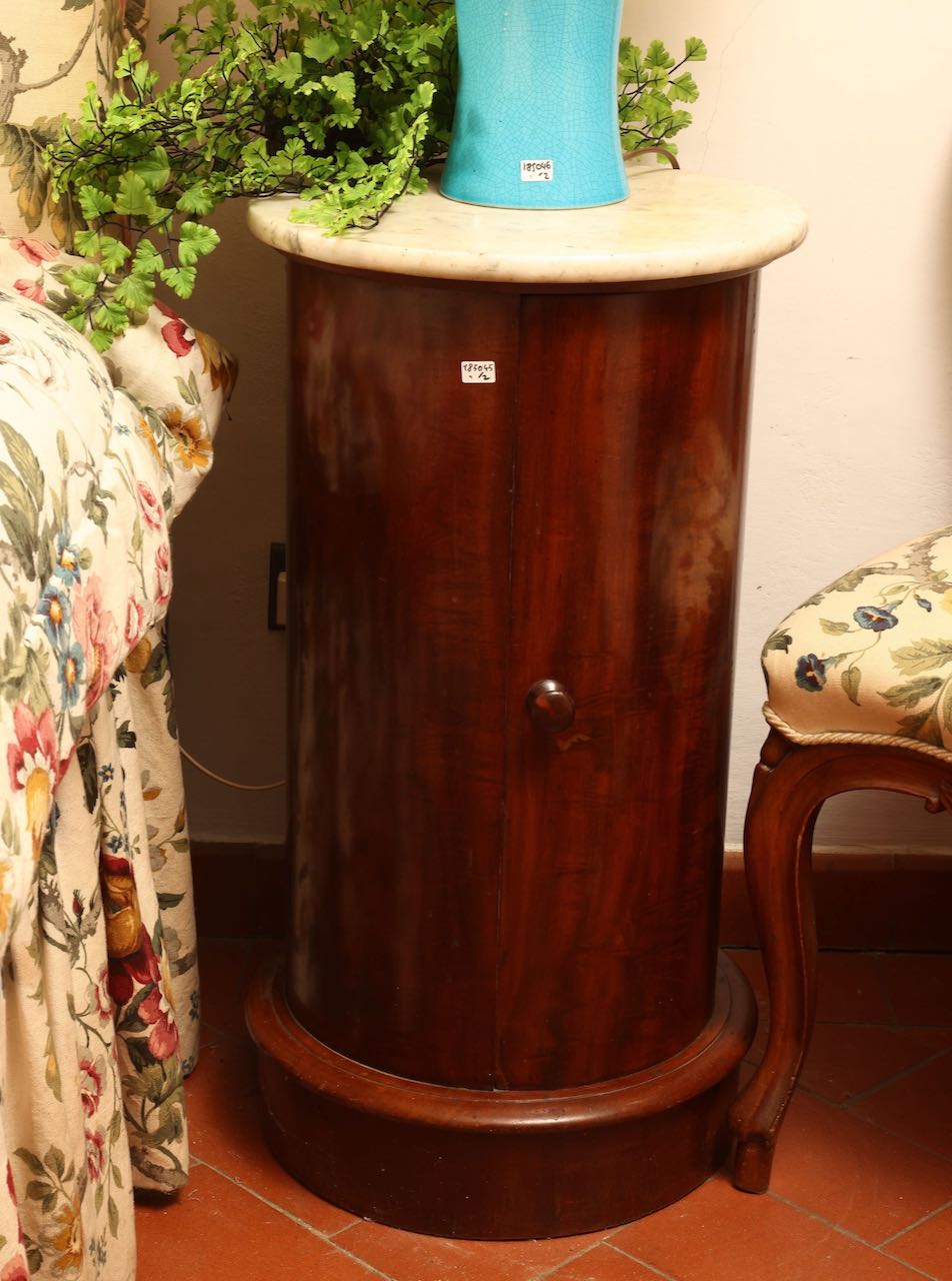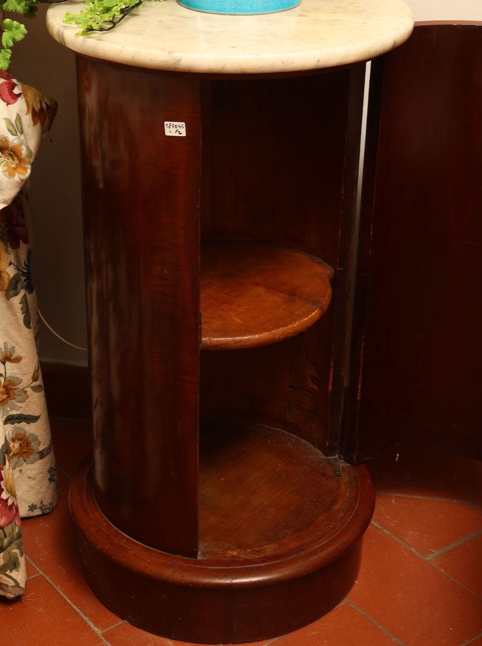 Coppia comodini a colonna in ciliegio, uno sportello, piano in marmo. Italia, sec. XIX