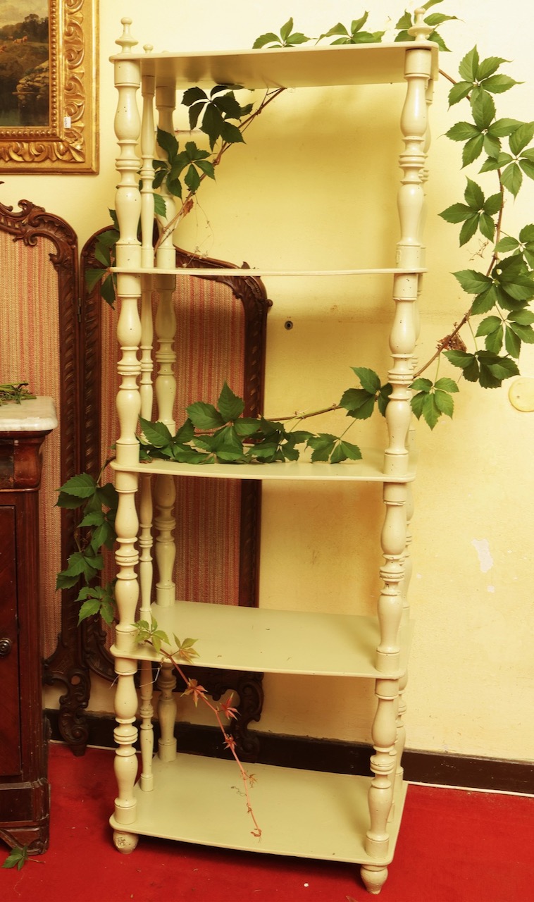 Etagère in legno crema, supporti torniti. Italia, sec. XIX