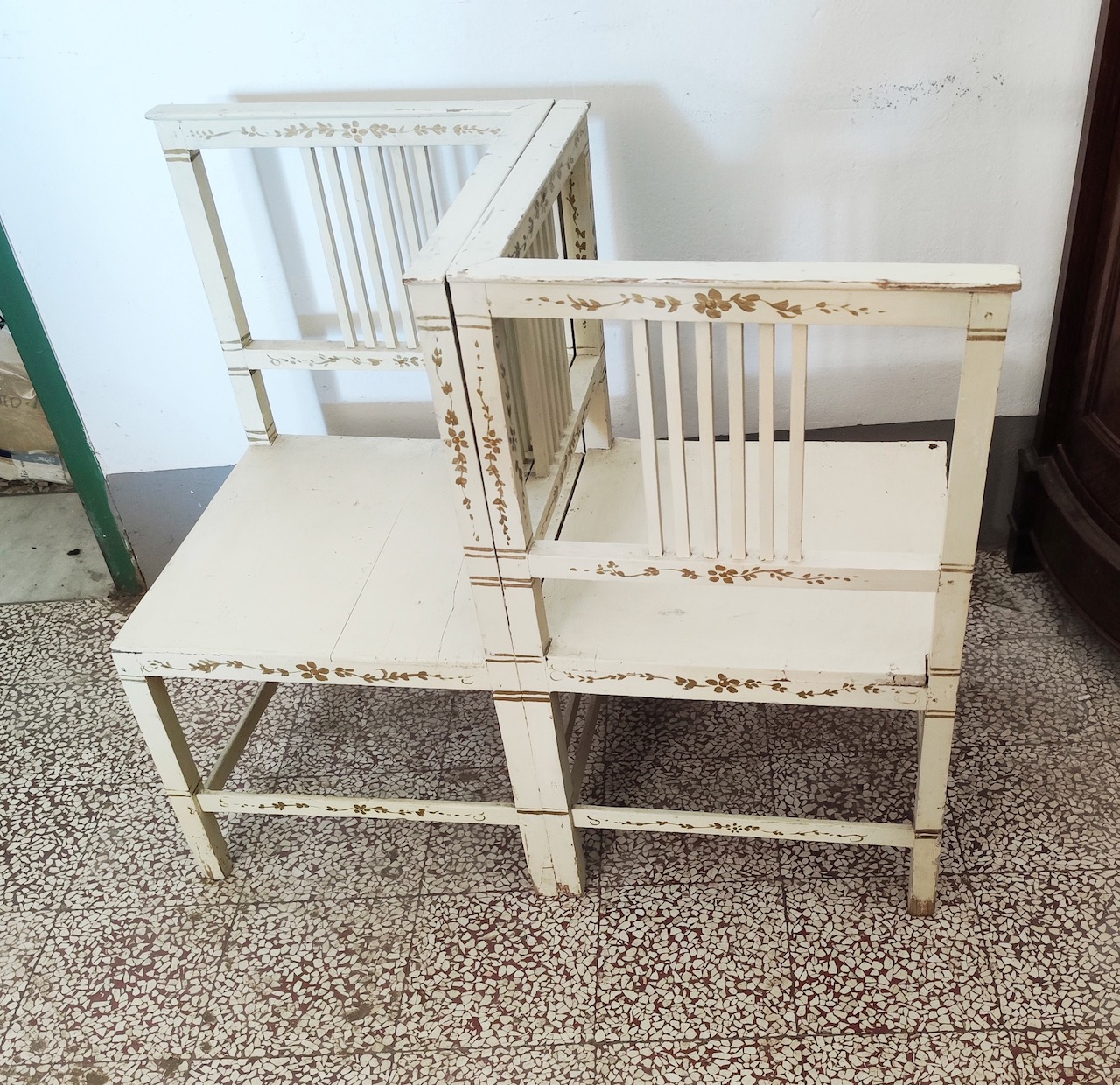 Divanetto vis à vis in legno laccato bianco. Italia, sec. XX