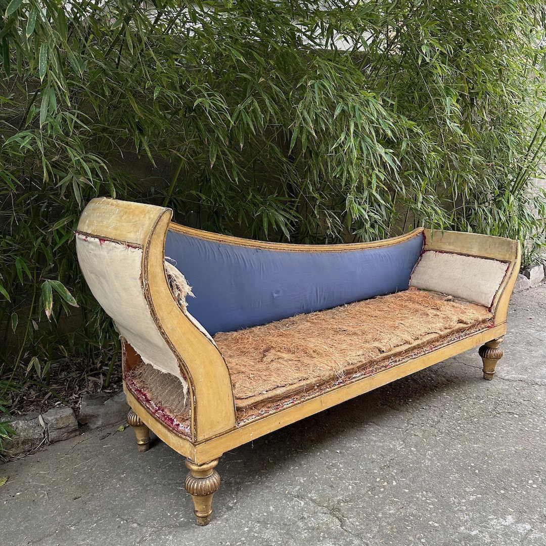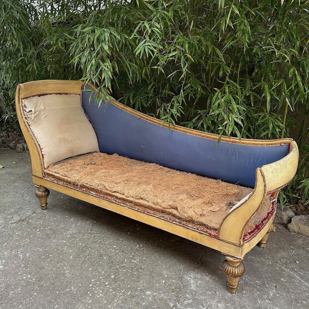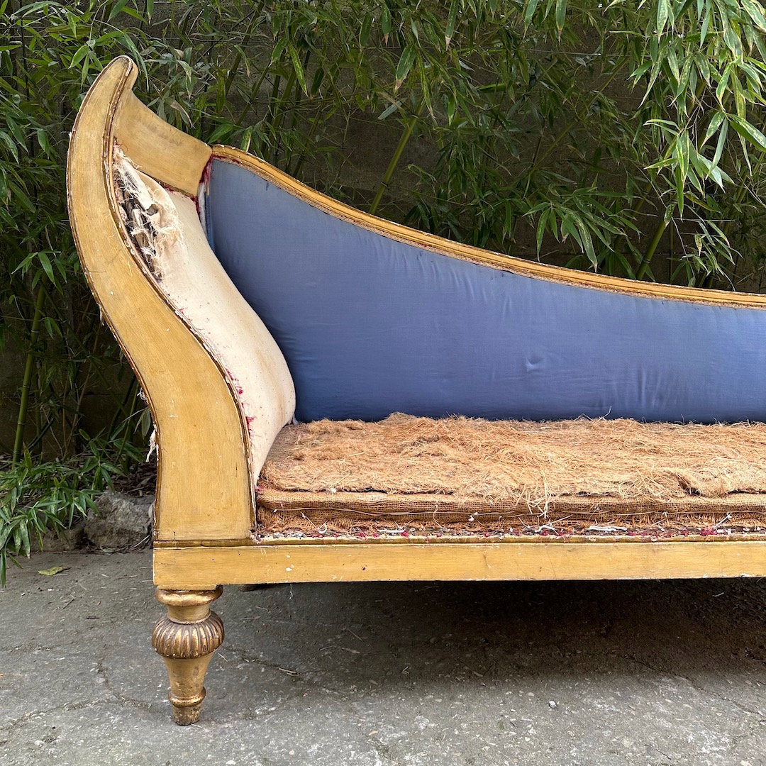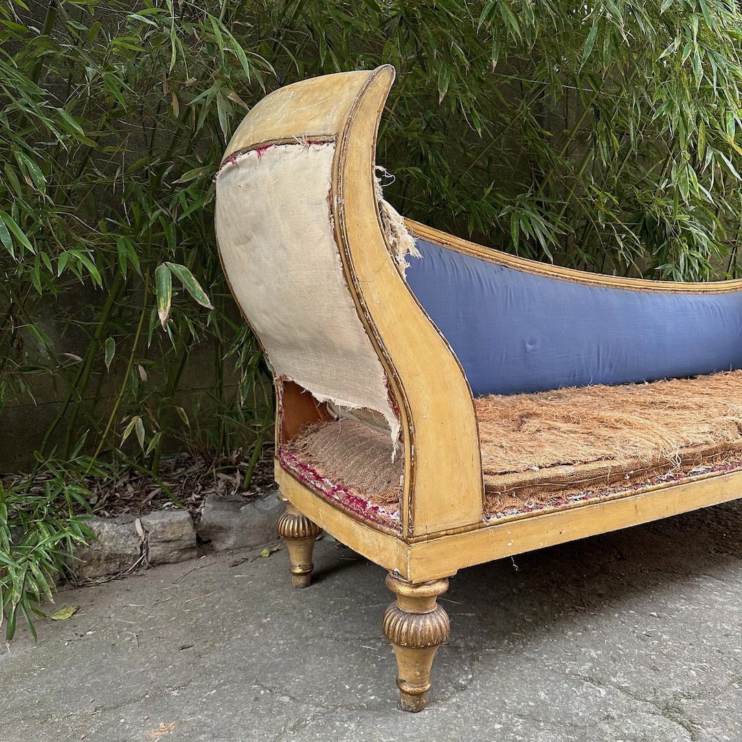 Dormeuse impero in legno laccato avorio ed in parte dorato. Toscana inizio sec. XIX