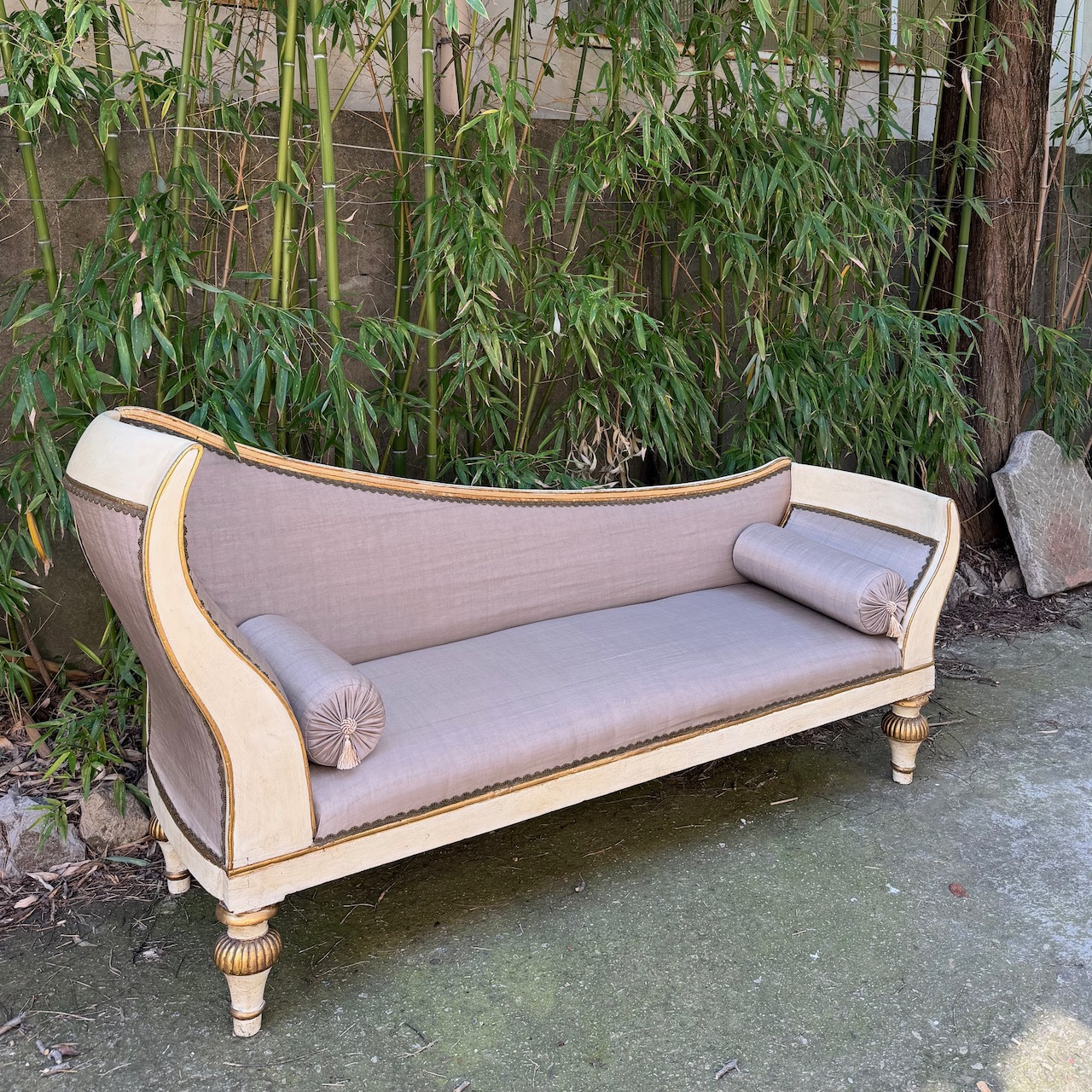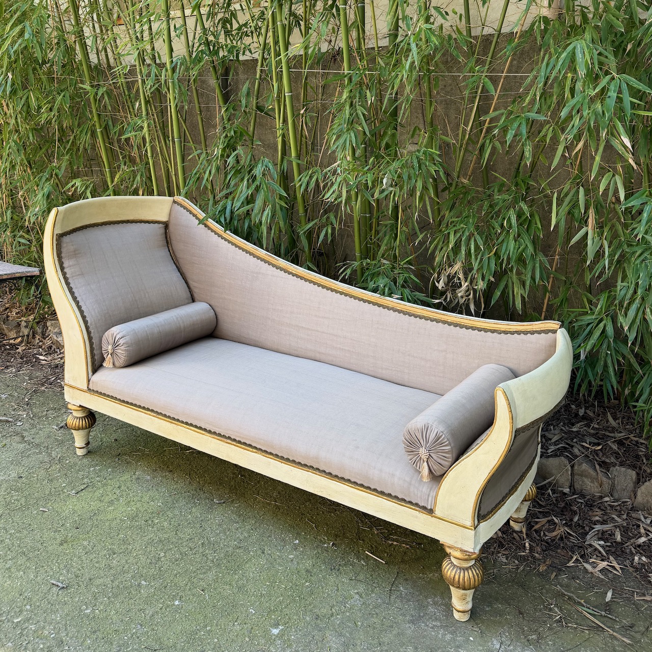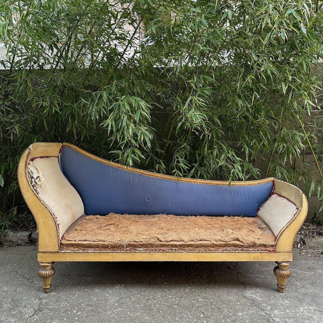 Dormeuse impero in legno laccato avorio ed in parte dorato. Toscana inizio sec. XIX