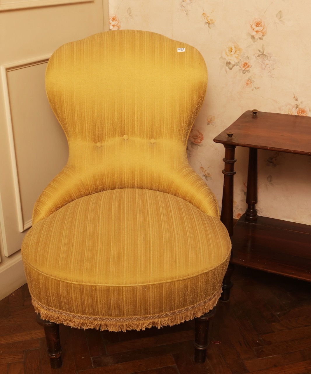 Poltroncina da palco, rivestita in seta rigata tono su tono giallo oro. Italia, sec. XIX