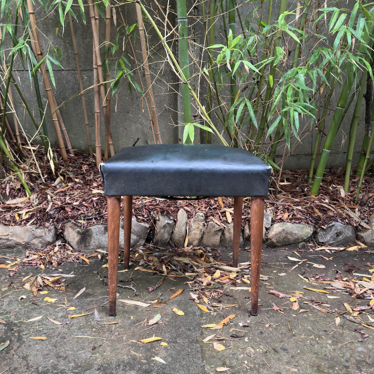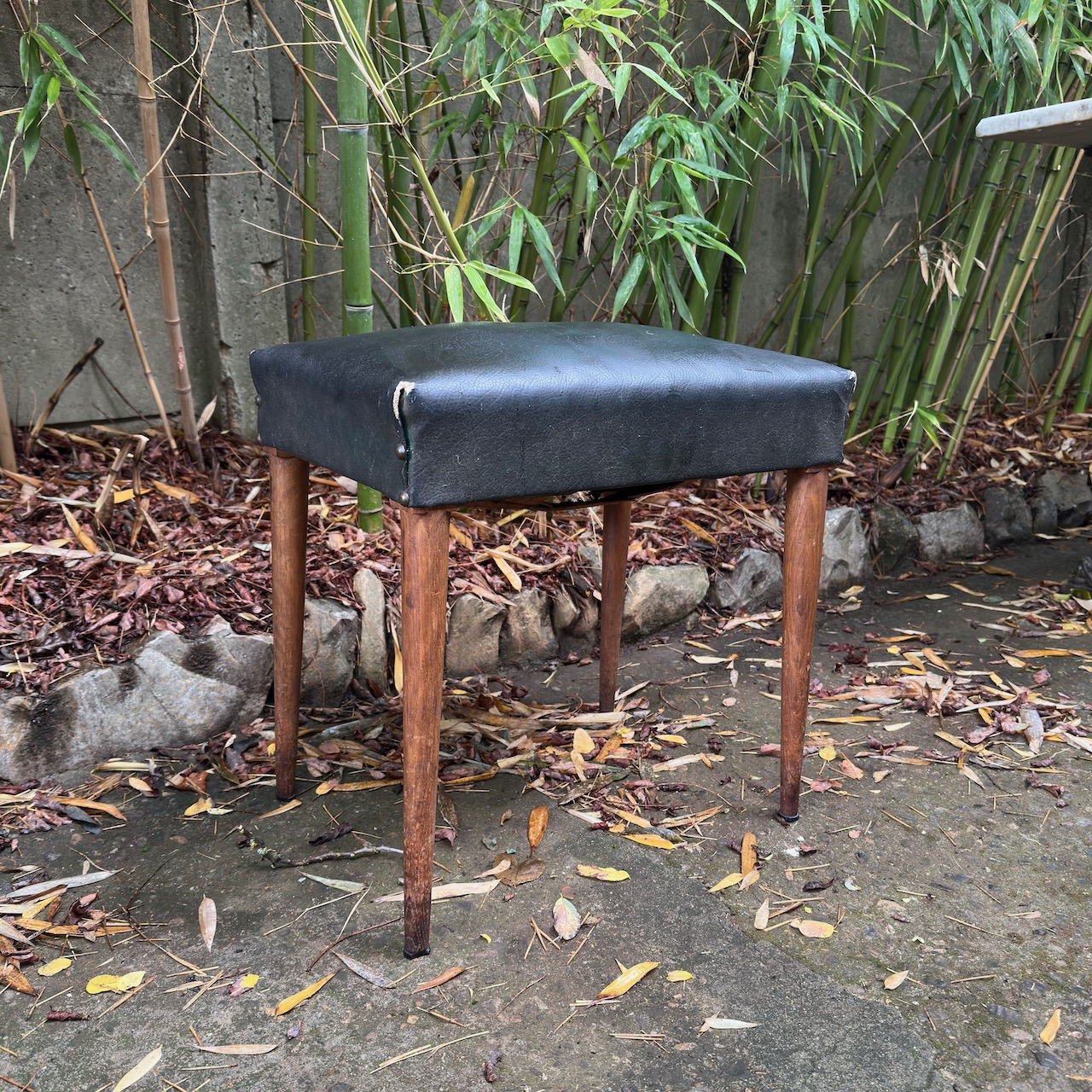Sgabello razionalista gambe dritte e seduta in pelle nera. Italia, sec. XX