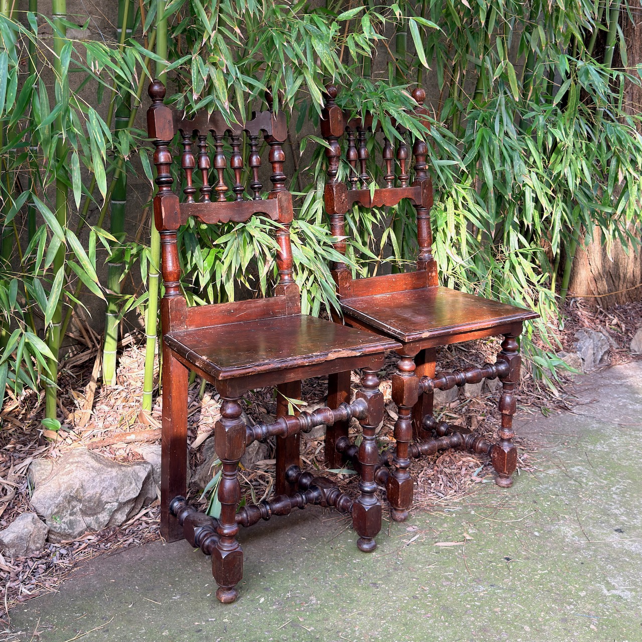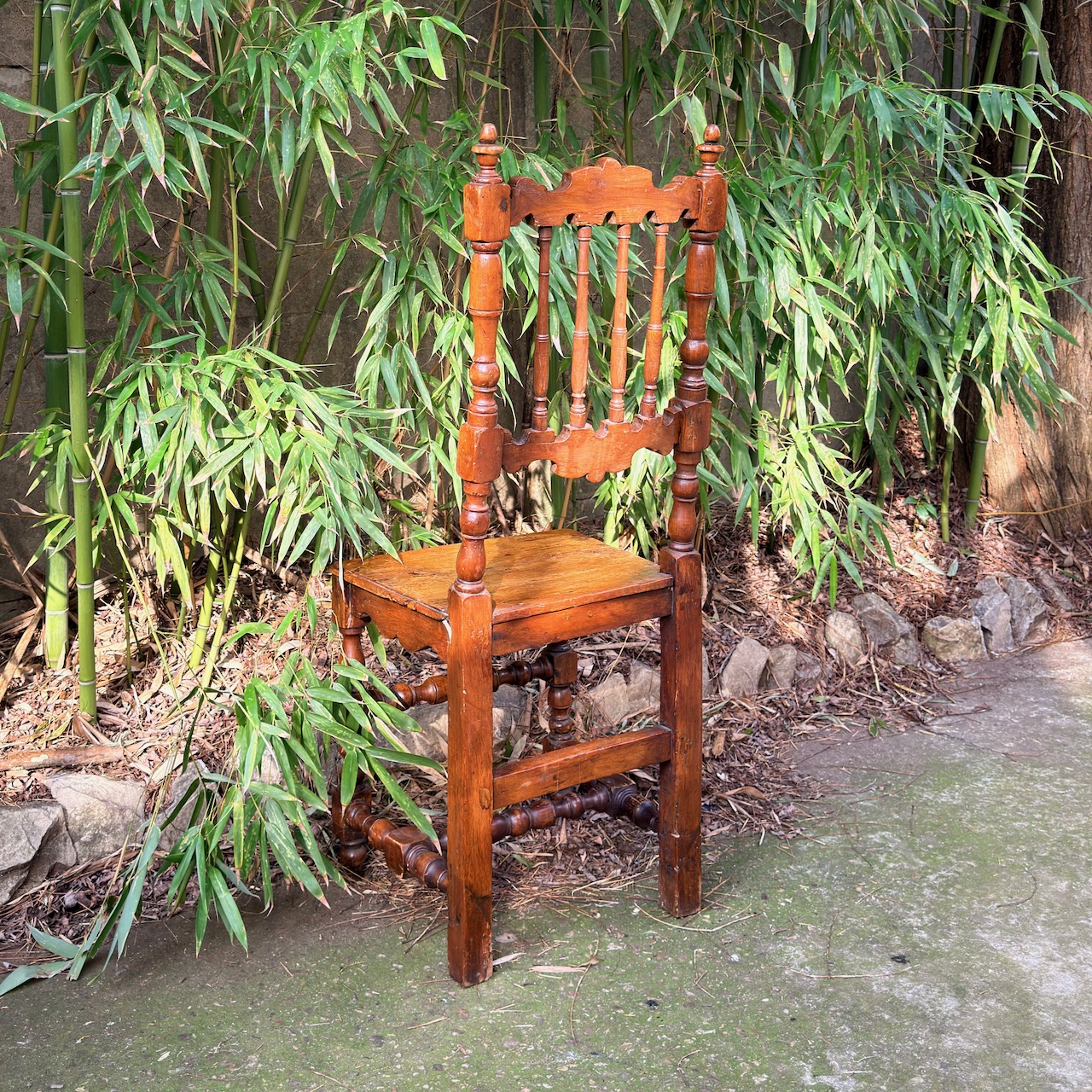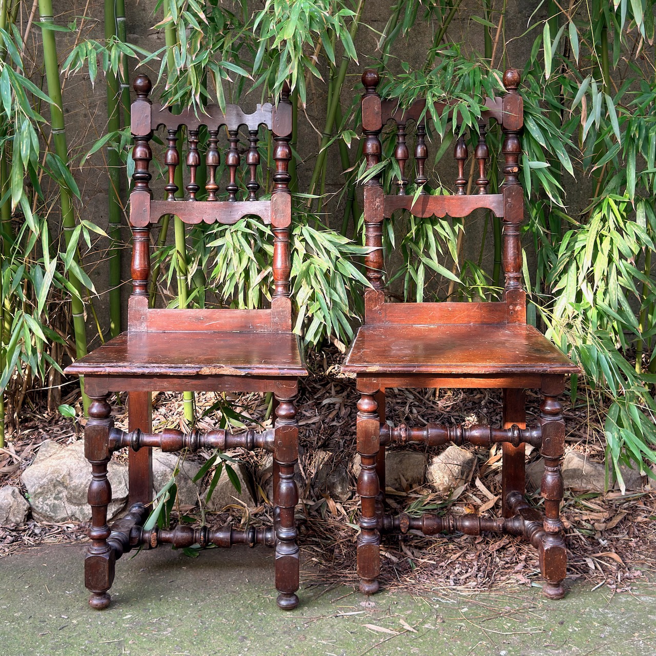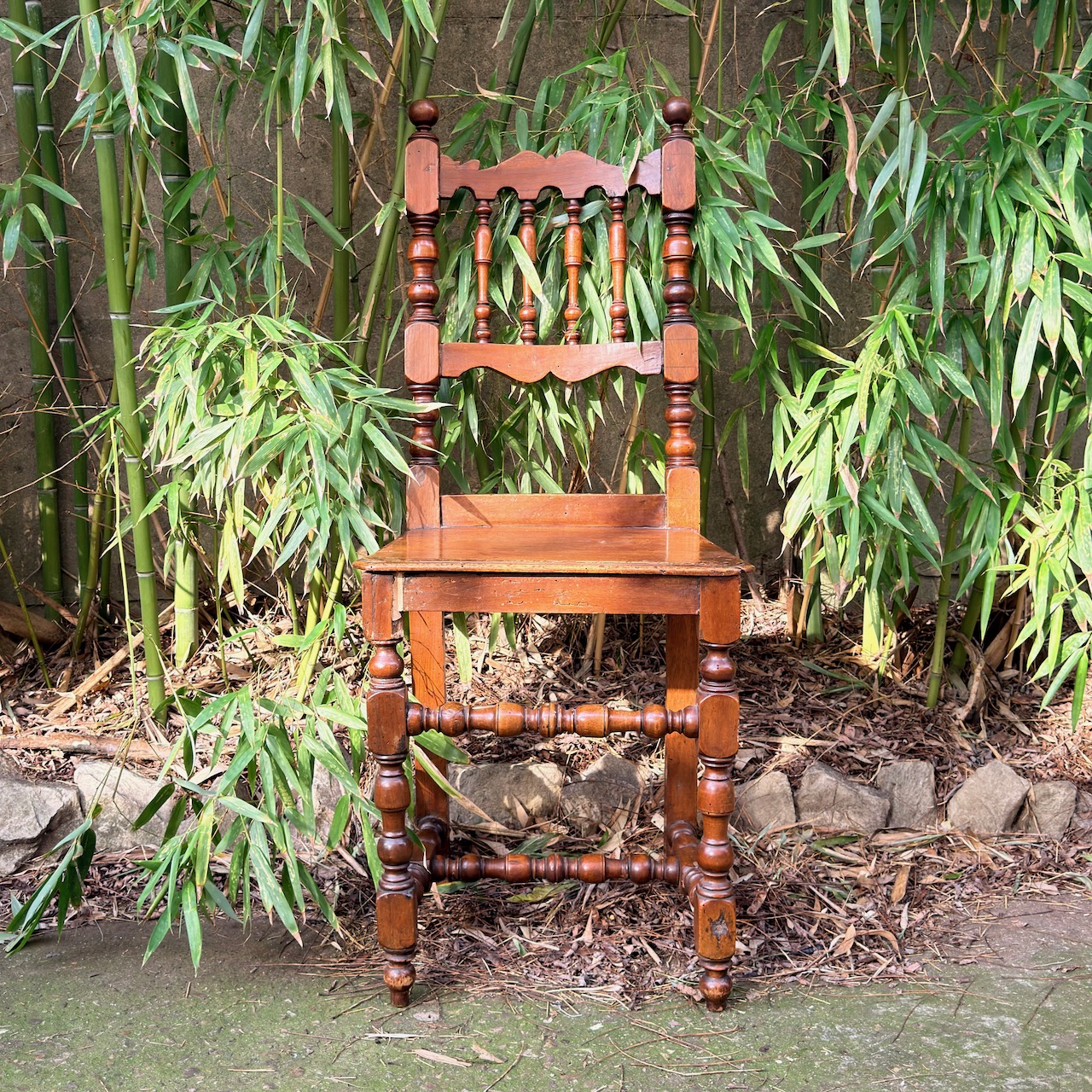 Quattro sedie senesi a rocchetto in noce, spalliera a birilli. Italia, sec. XVIII