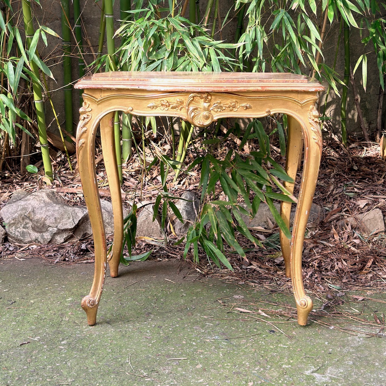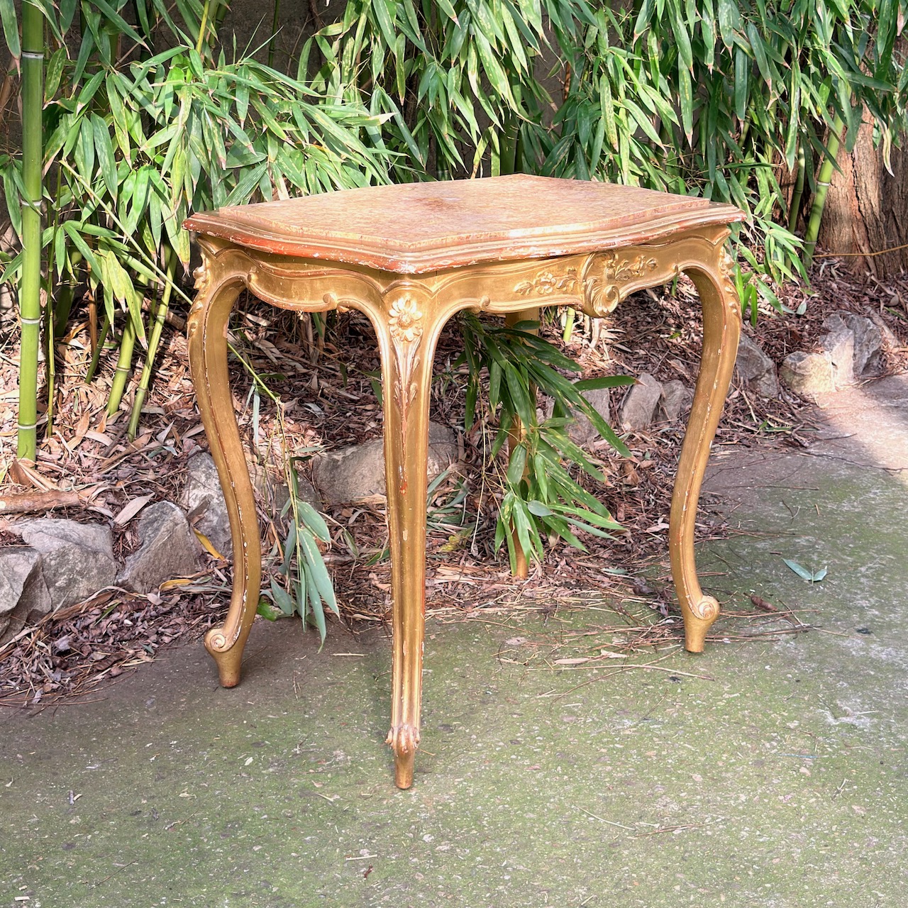 Tavolo da fumo in legno dorato, intagliato, piano in marmo. Italia, sec. XIX