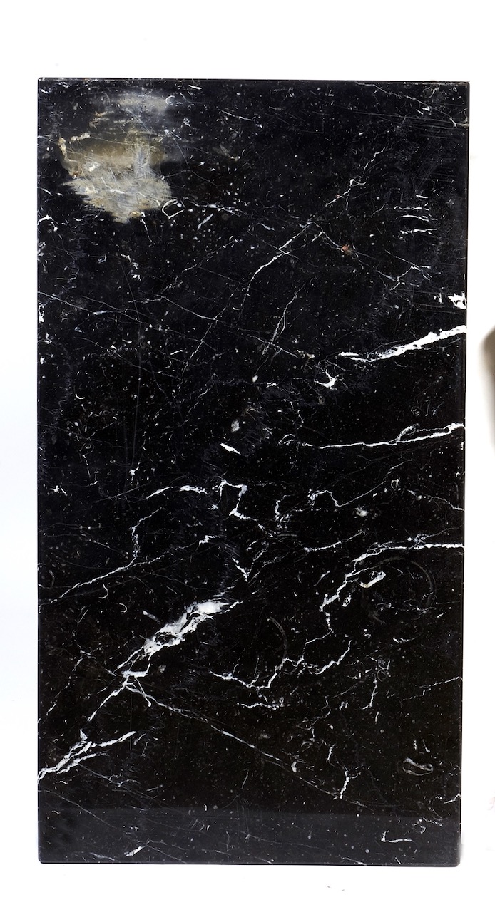 Piano in marmo da cassettone, fondo nero striato bianco. Spagna, sec. XX