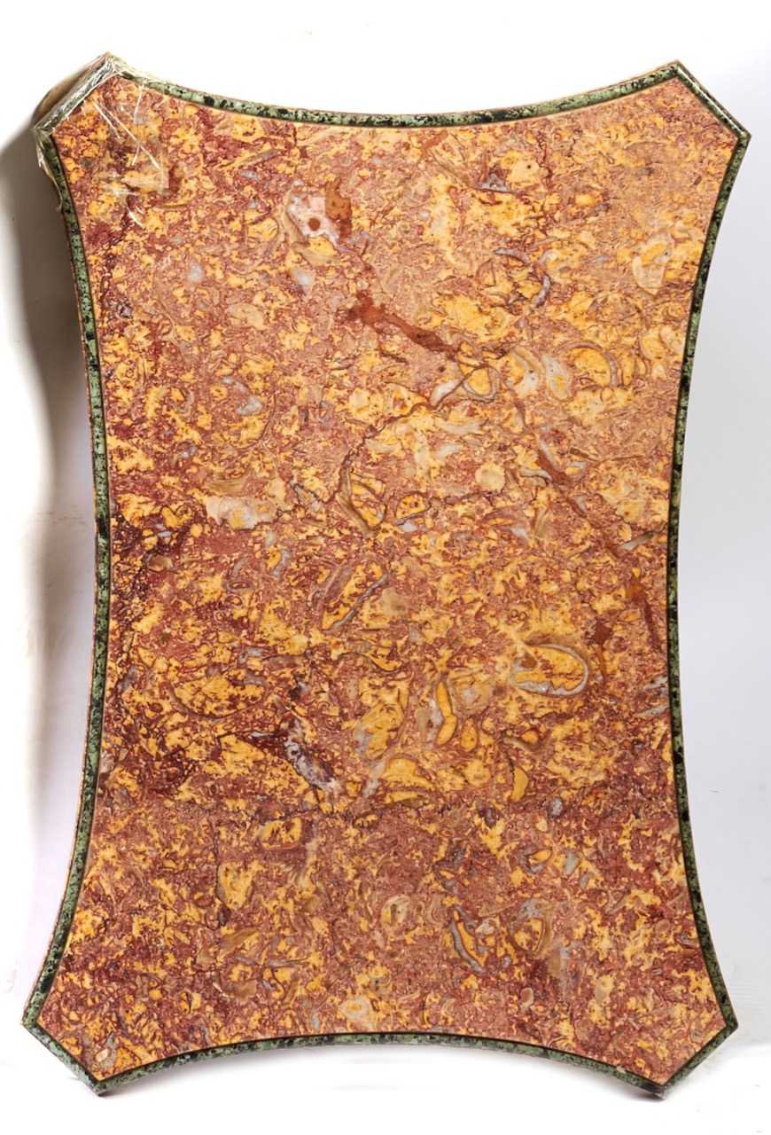 Marmo da tavolino in broccatello di Spagna, forma sagomata, bordo in marmo di Prato. Italia, sec. XX
