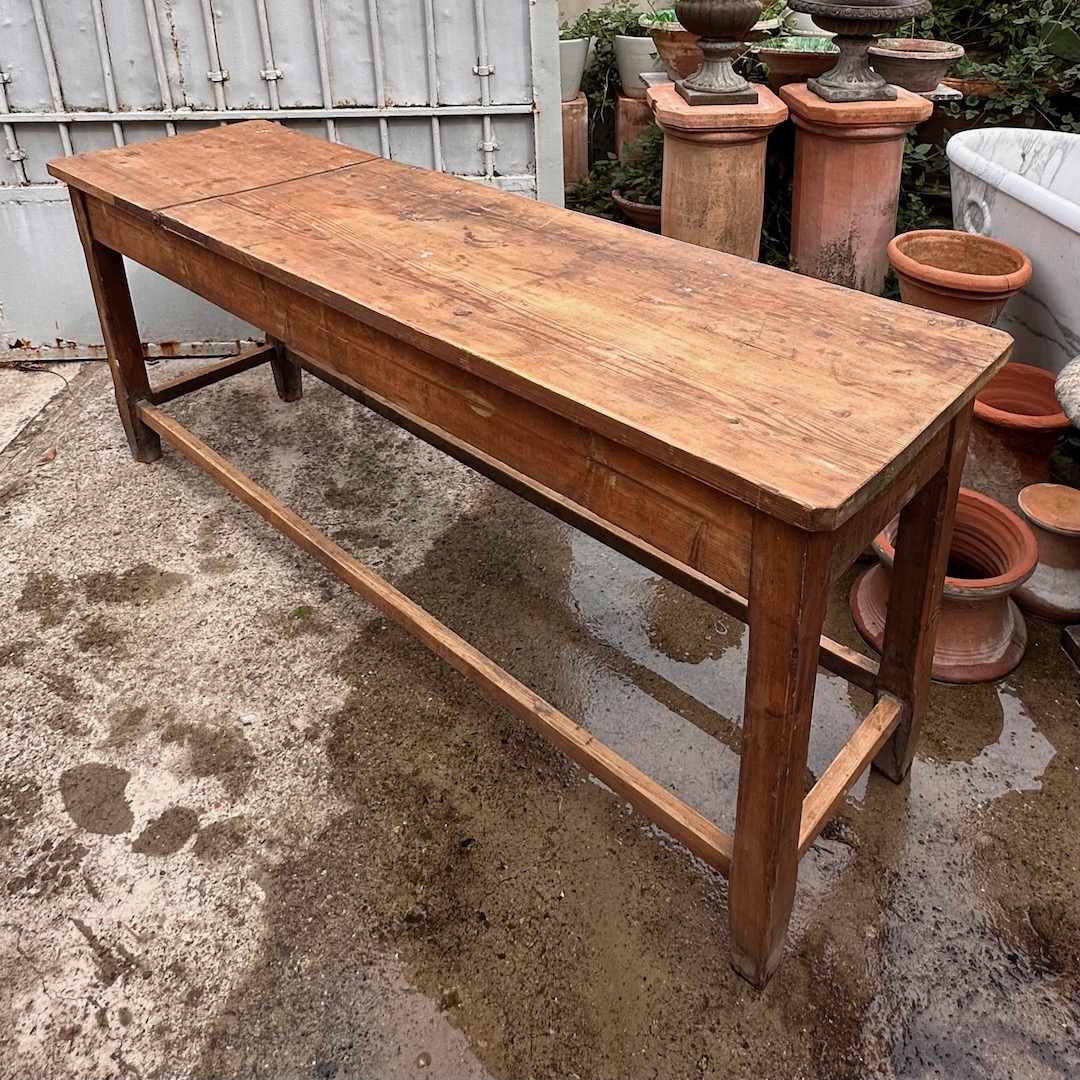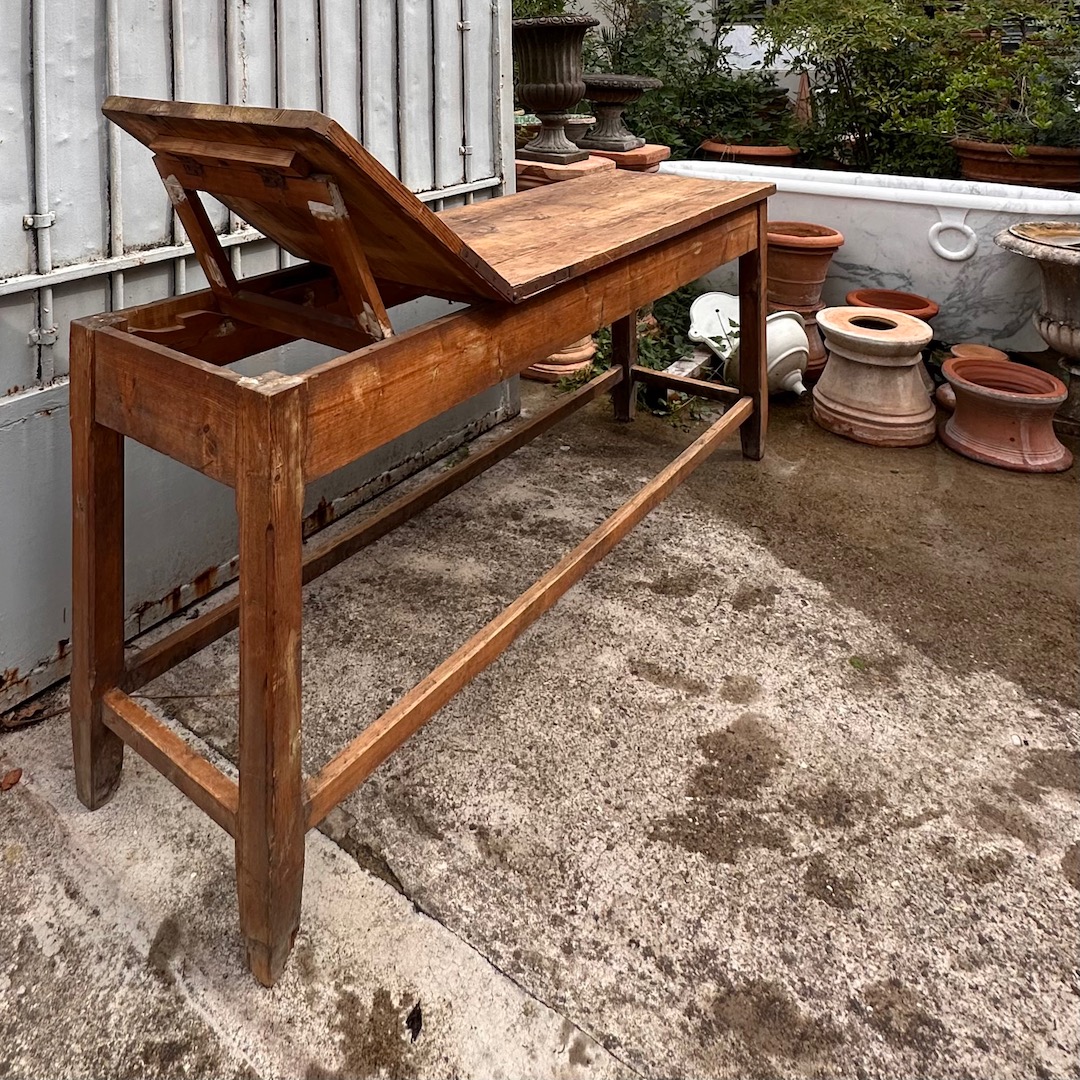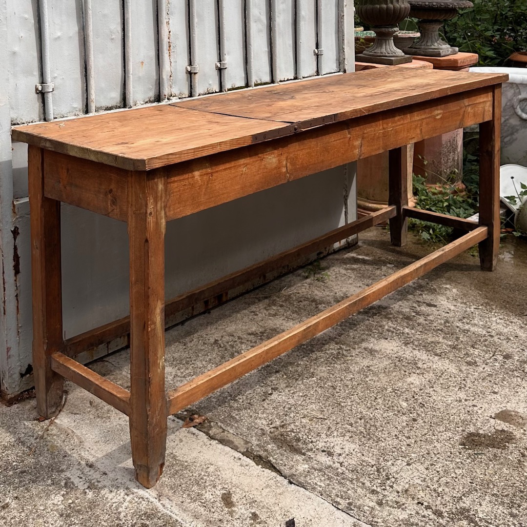 Tavolo Consolle lettino con parte reclinabile in legno naturale. Toscana fine sec. XIX