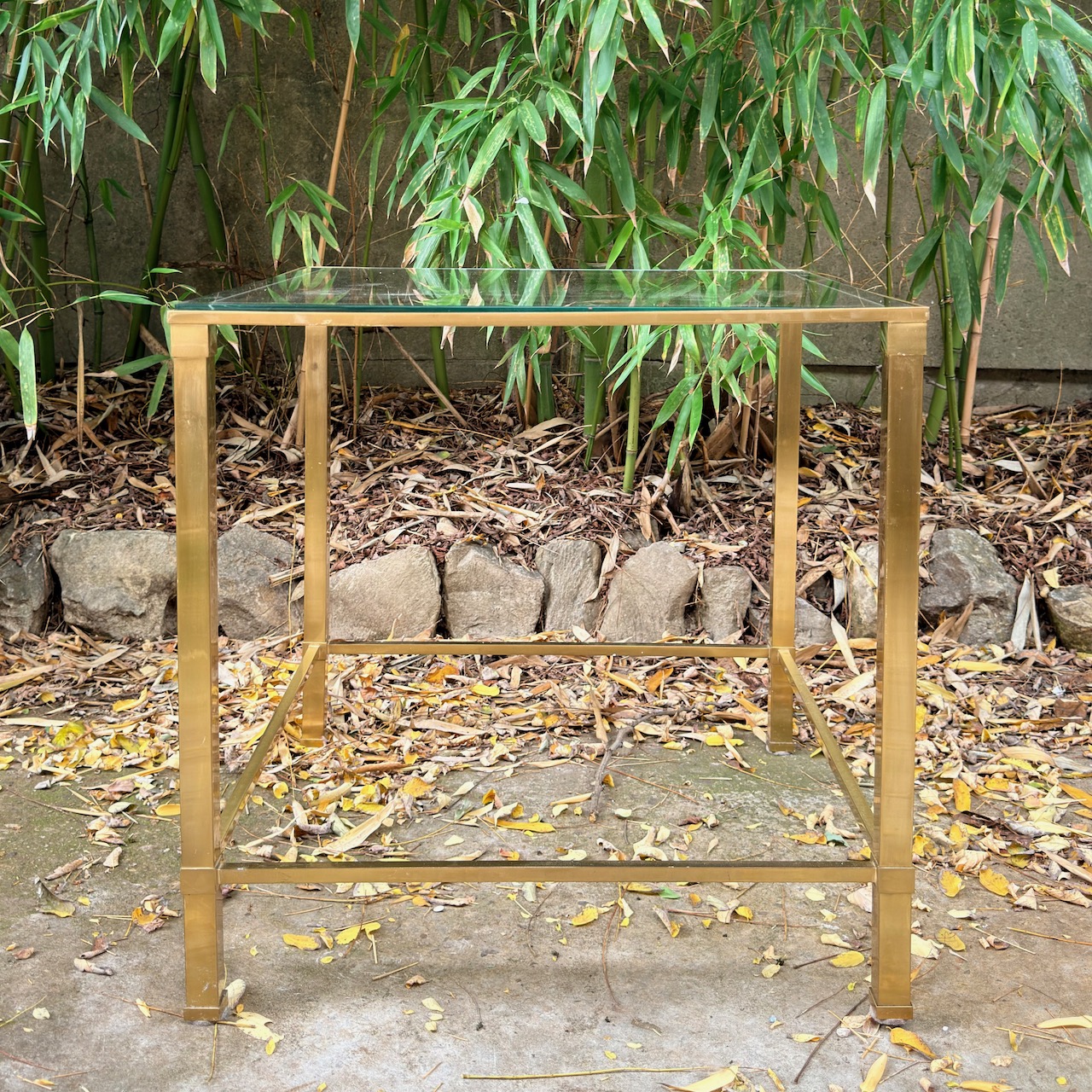 Tavolino da fumo in bronzo dorato e vetro. Italia, 1970 ca