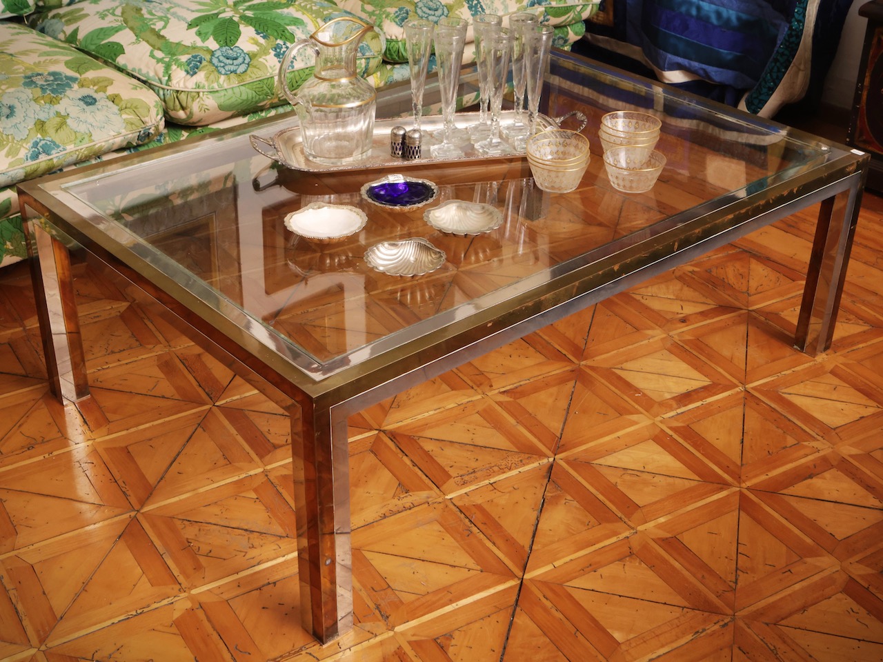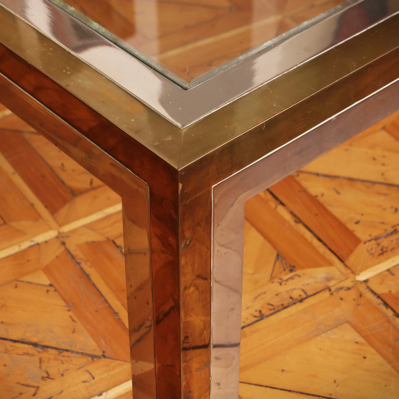 Tavolino rettangolare da fumo on bronzo, bronzo dorato e cristallo. Italia, 1970