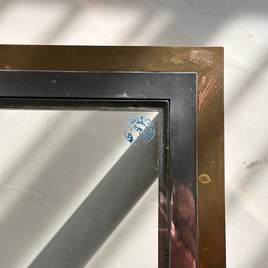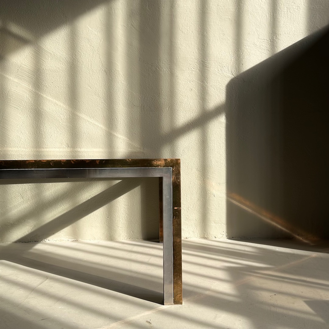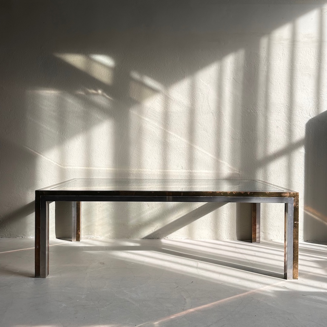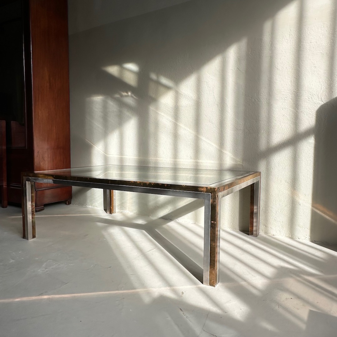 Tavolo caffè rettangolare in bronzo, bronzo dorato e cristallo. Remo Rega. Italia, 1970