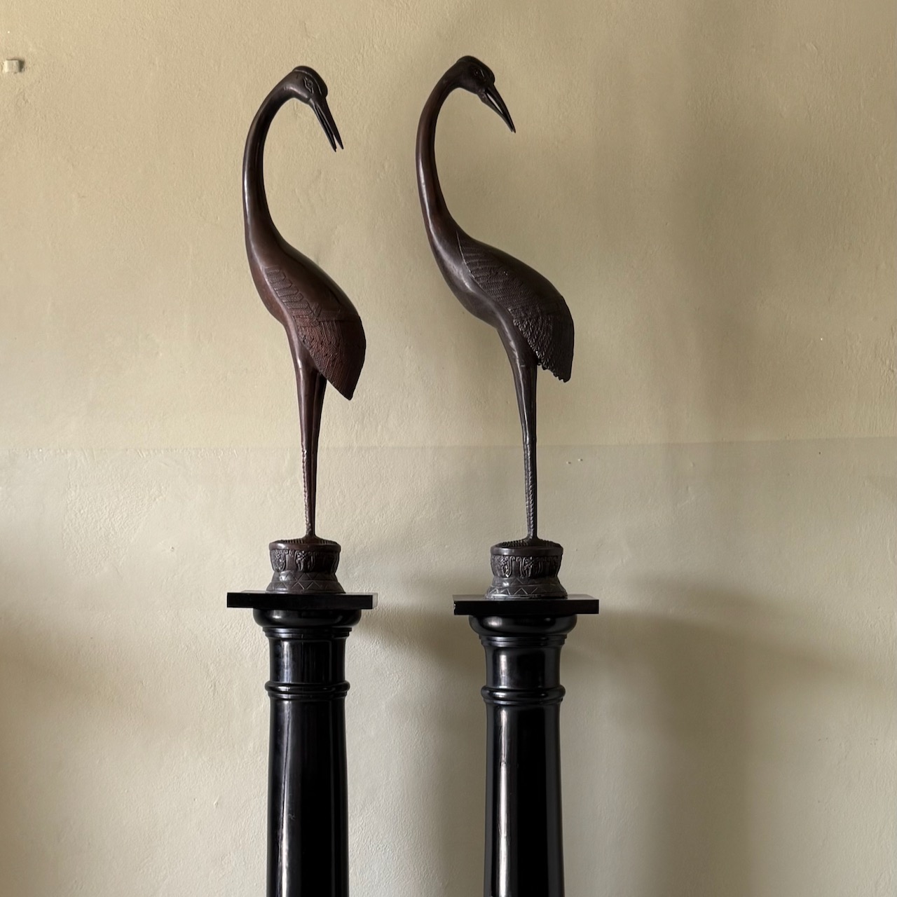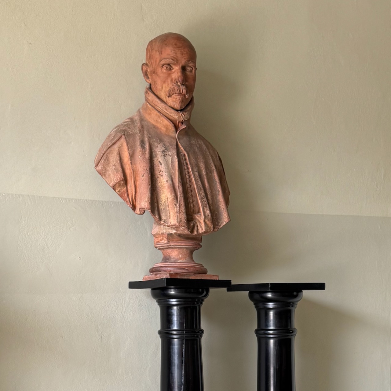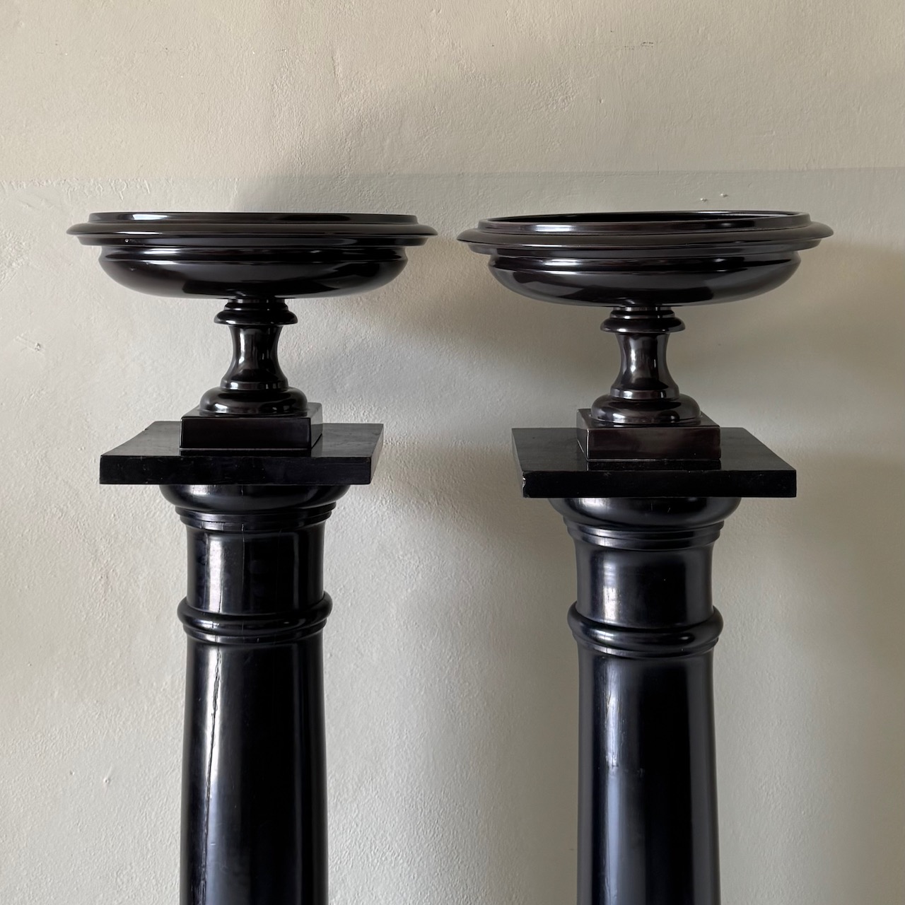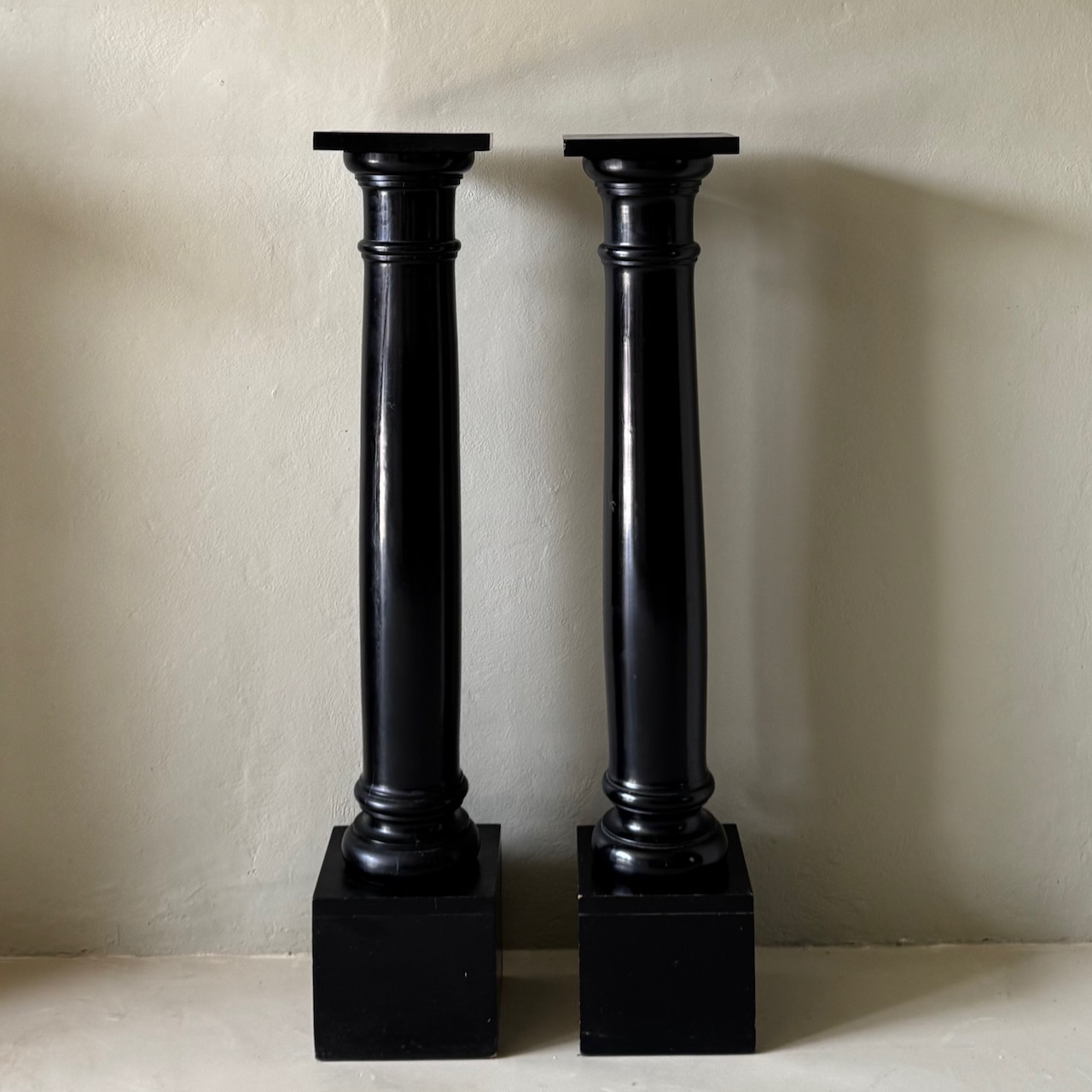 Coppia di colonne neoclassiche di ordine tuscanico in legno di noce tornito ed ebanizzato. Italia, sec. XIX