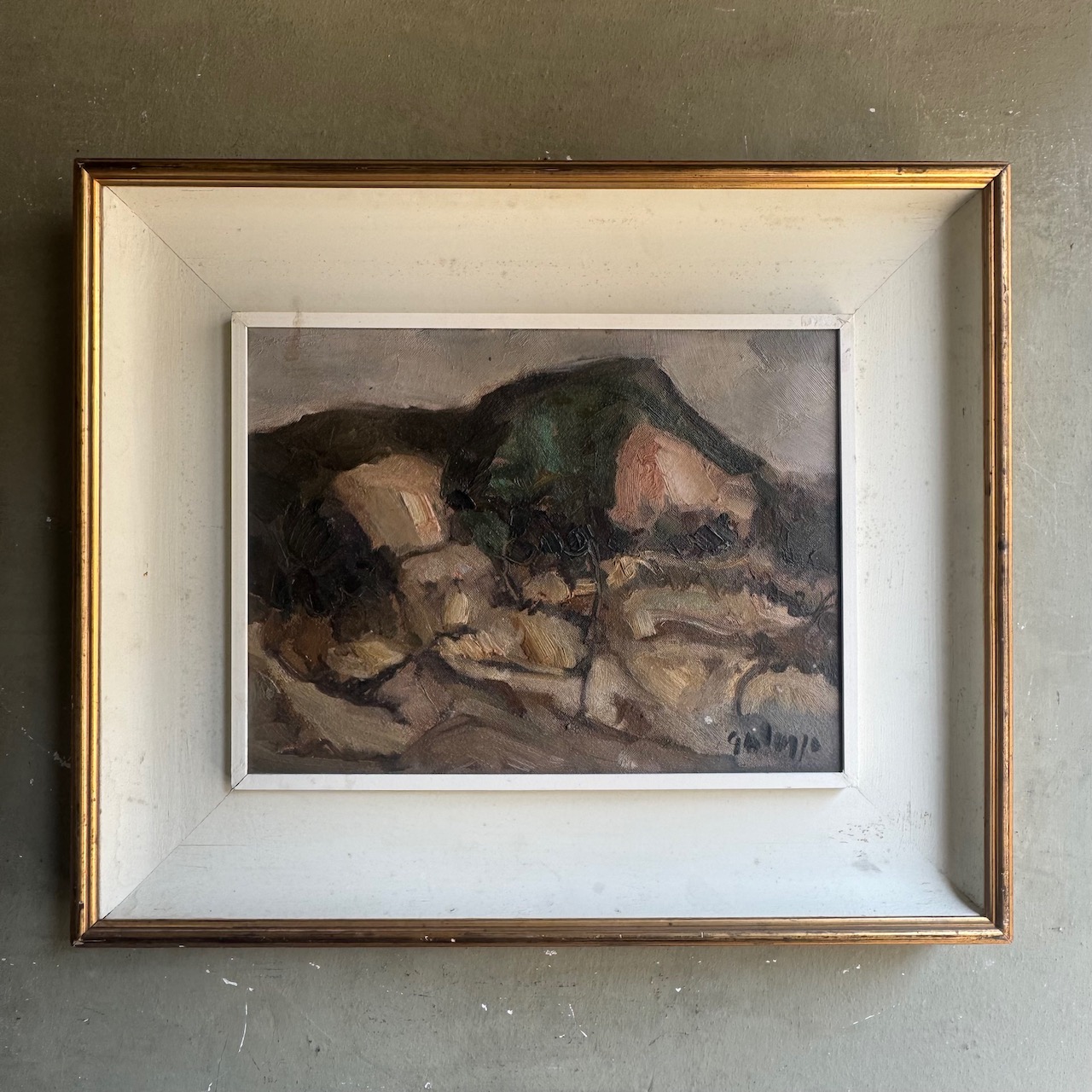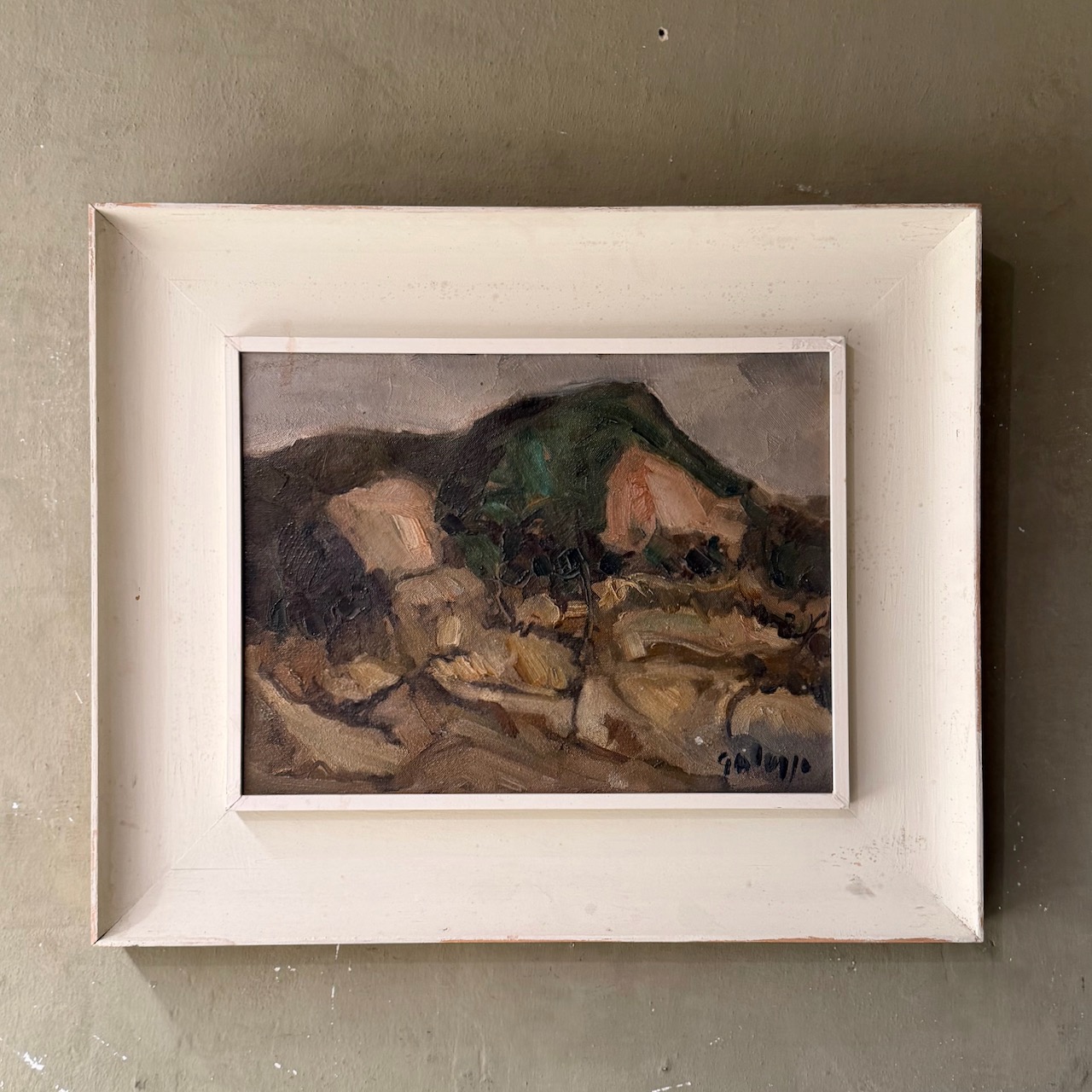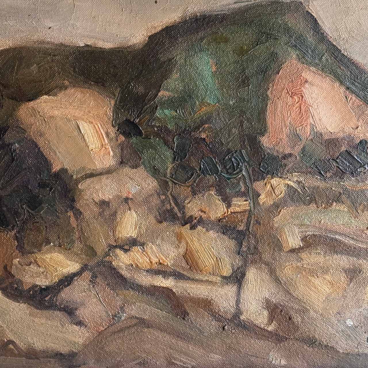 Paesaggio astratto, pennellate larghe, olio su cartoncino. Italia, sec. XX
