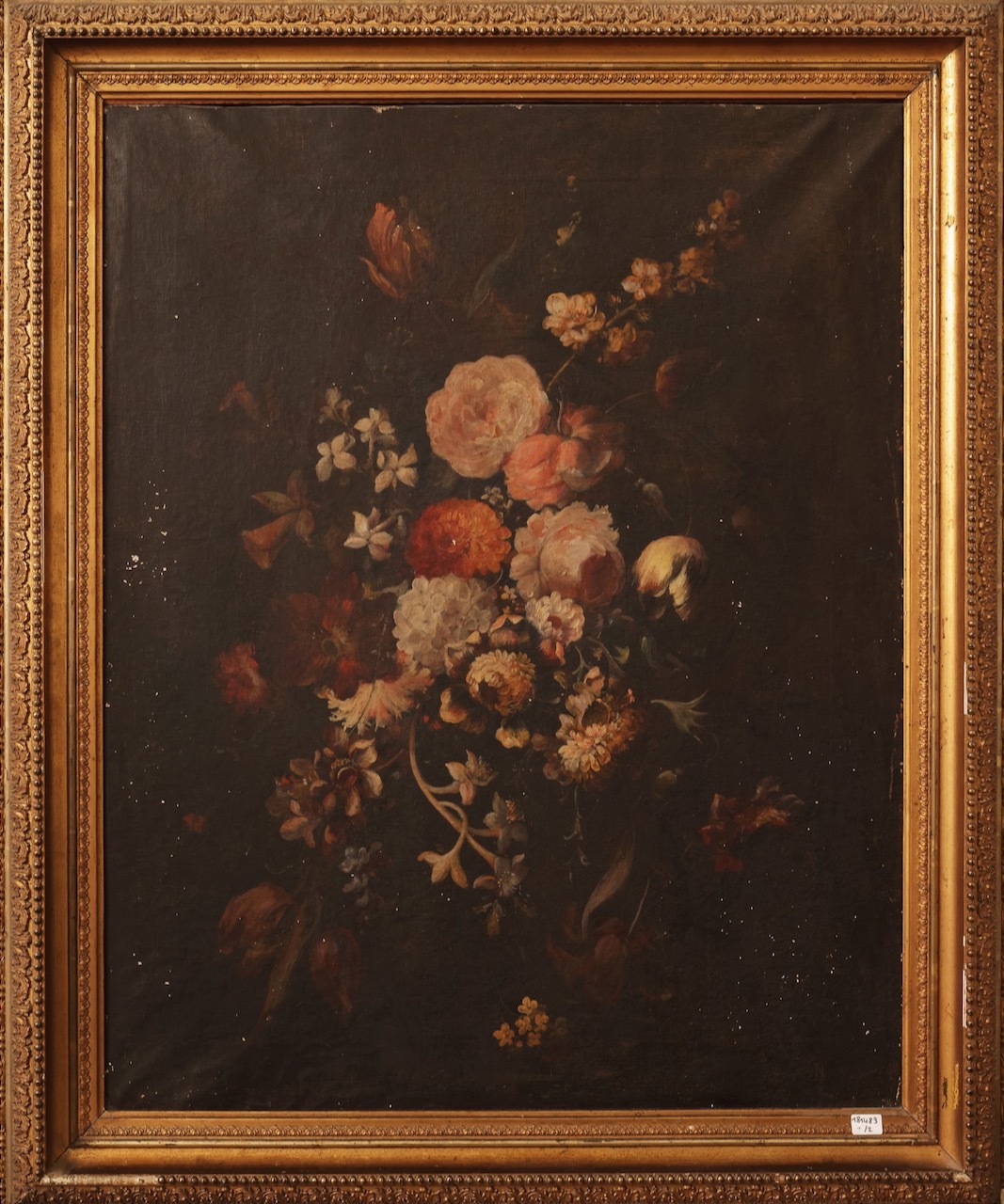Coppia di dipinti di natura morta con fiori, olio su tela, cornice dorata, Garibaldo Cepparelli. Italia, sec. XIX
