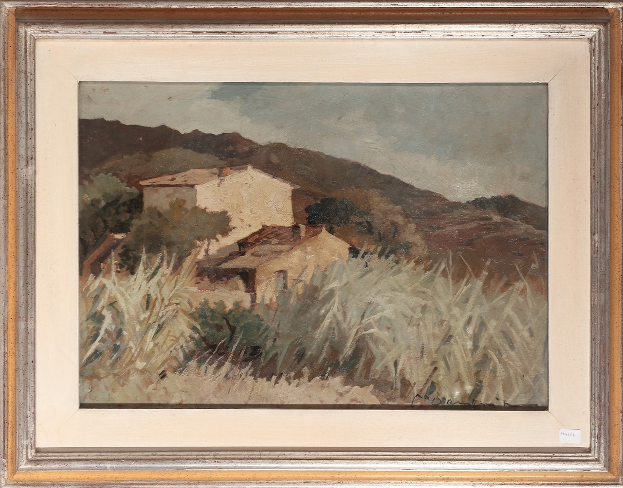 Paesaggio con veduta di casa, olio su tavoletta, in cornice, Carlo Domenici. Italia, sec. XIX