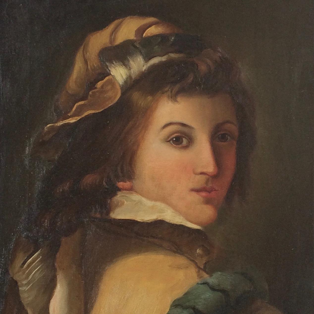 Ritratto di giovane guardia svizzera, olio su tela in cornice dorata coeva. Toscana, fine sec. XIX