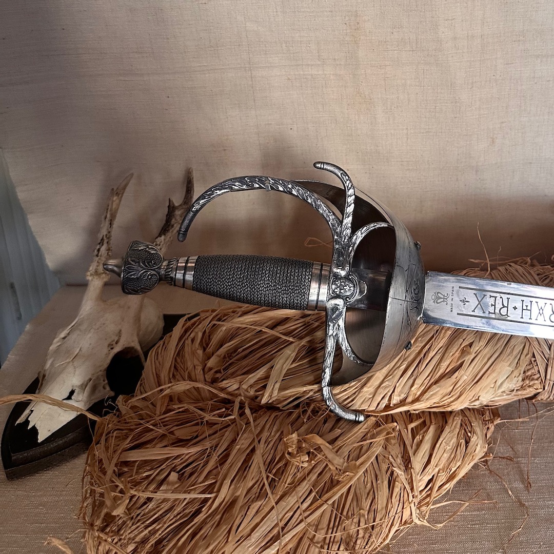 Spada boca de caballo da teatro in acciaio con inserzione sulla lama. Italia, sec. XIX